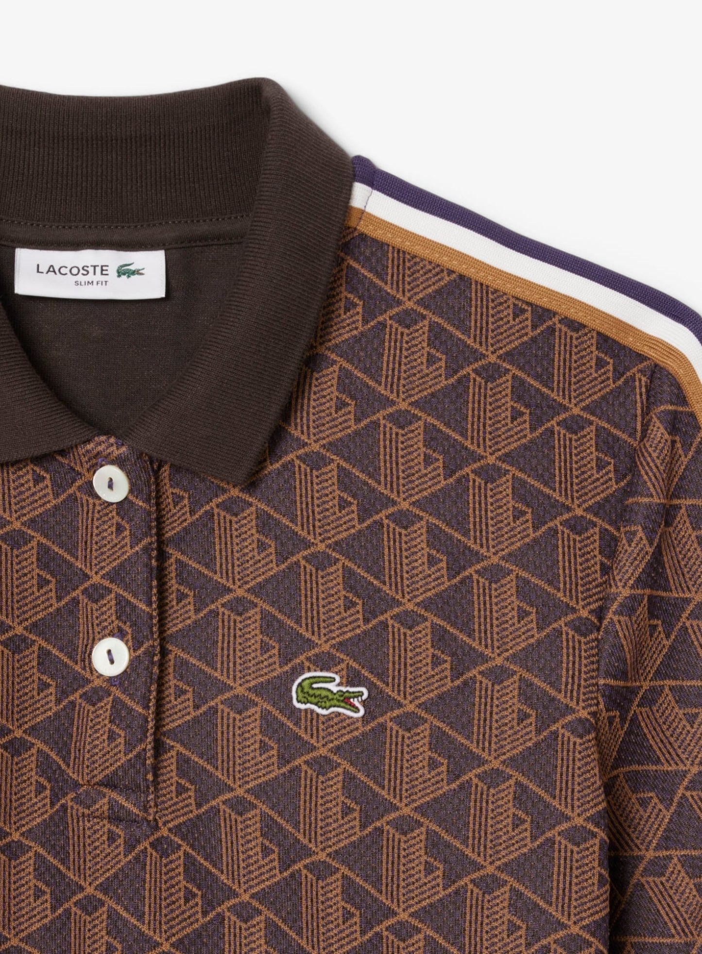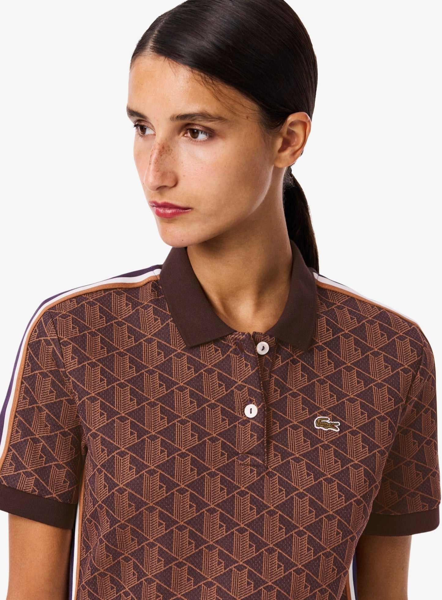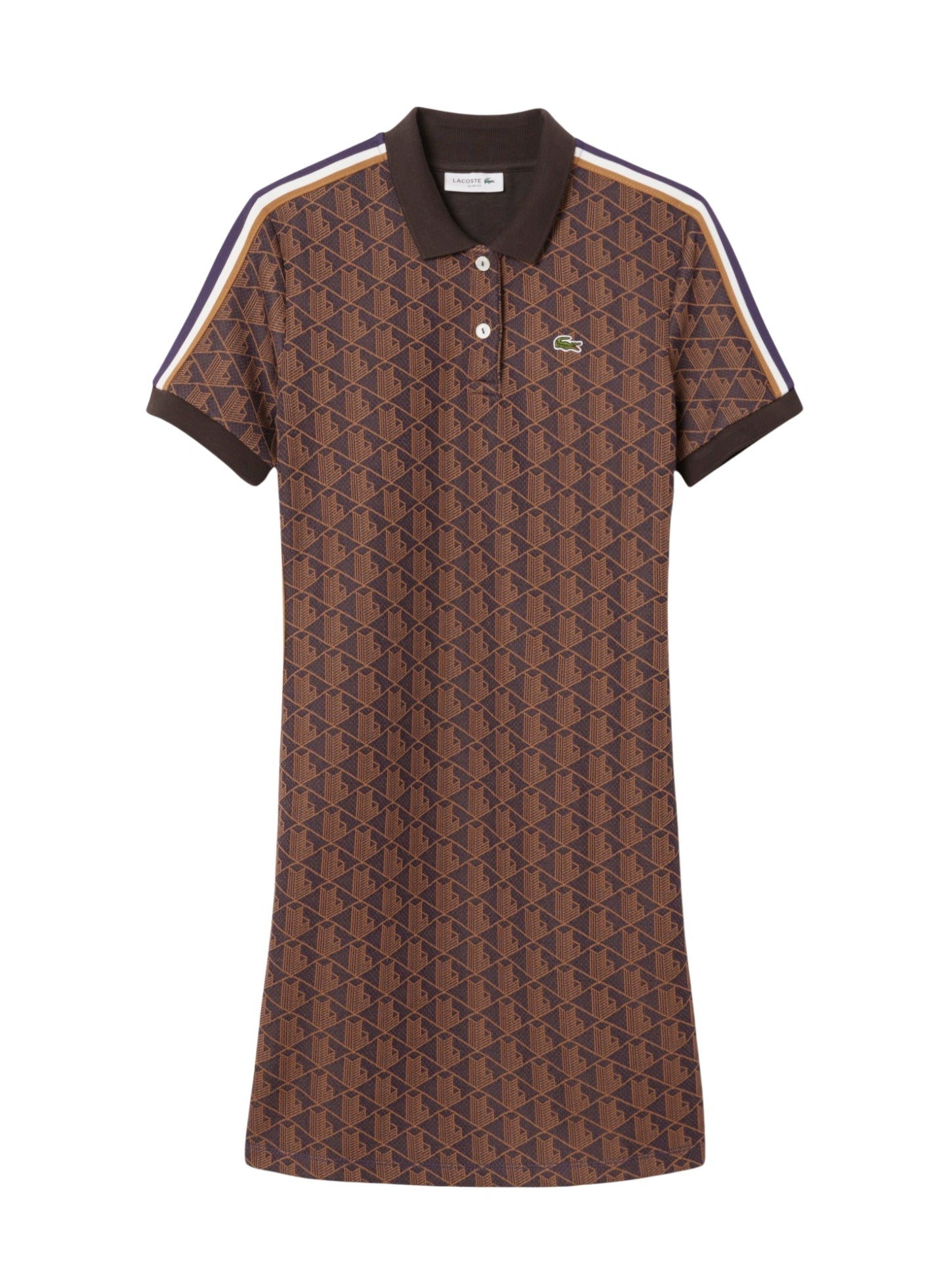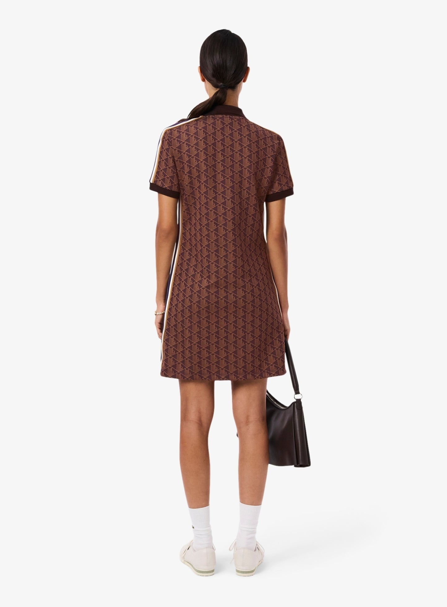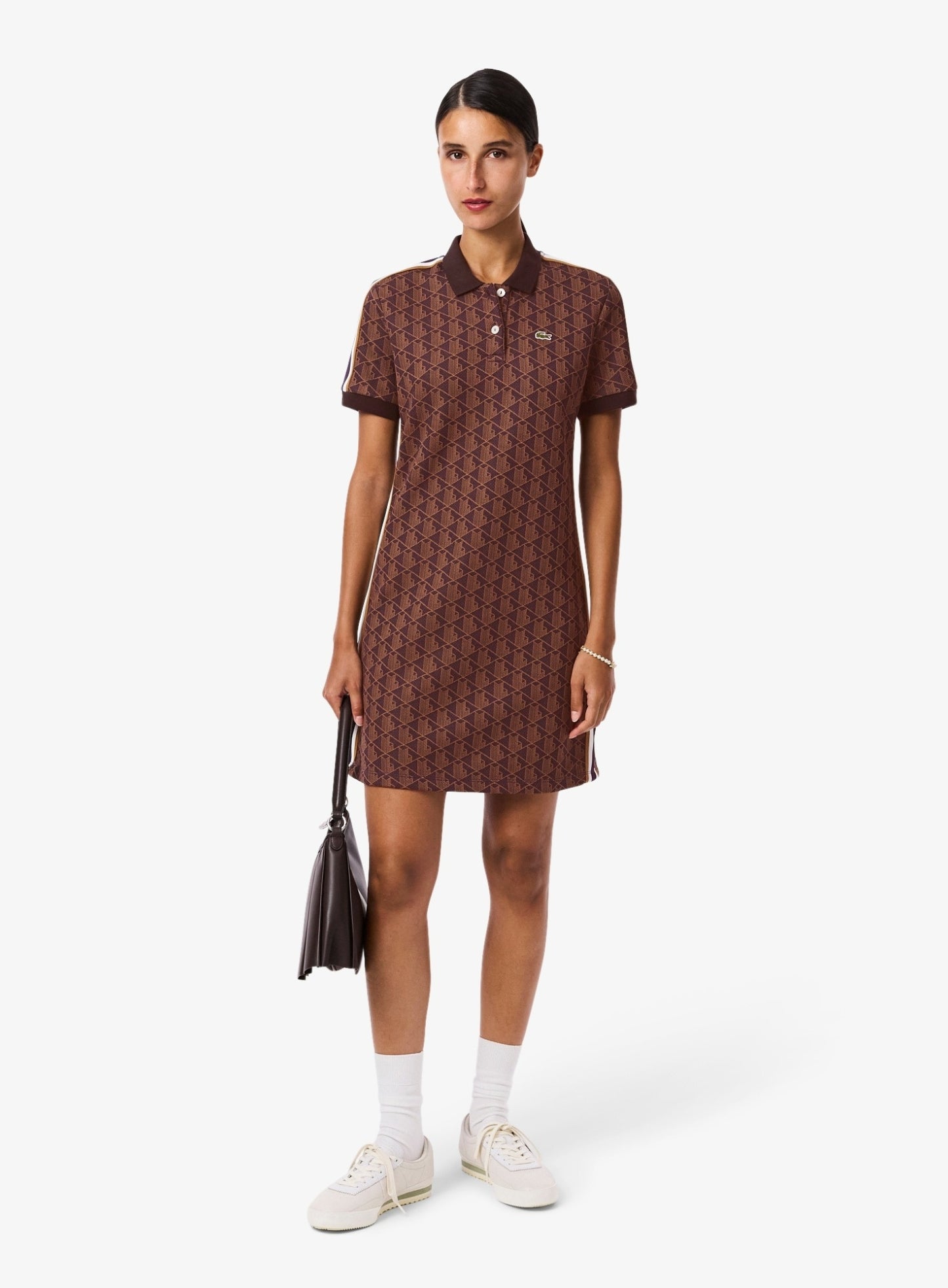 LACOSTE WOMEN Slim Fit Monogram Jacquard Polo Dress Brown
