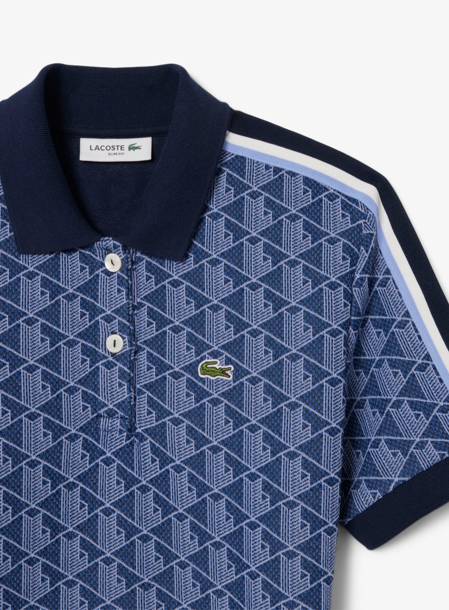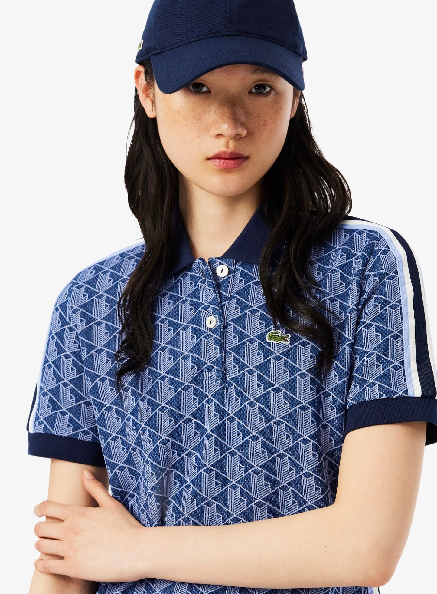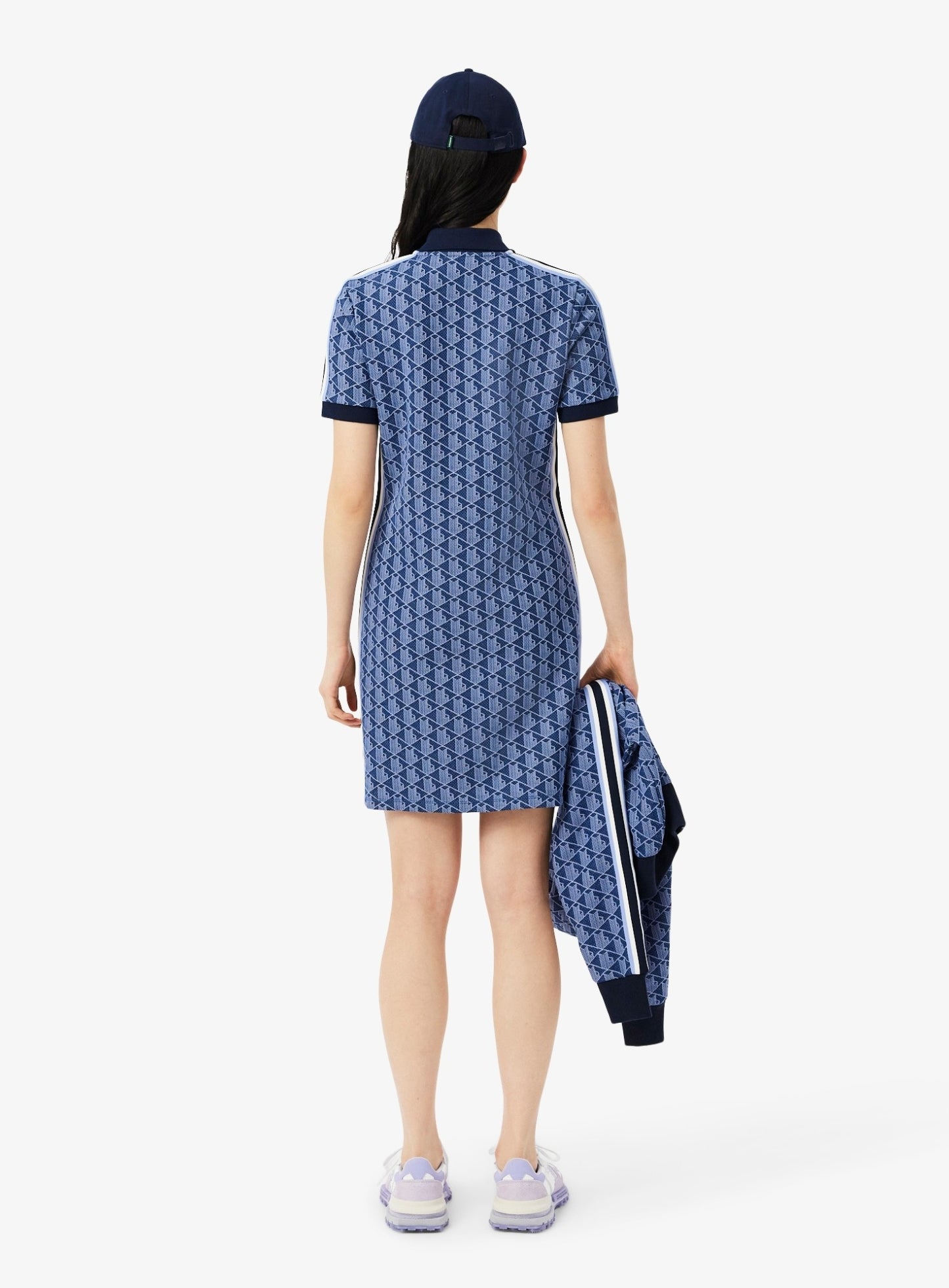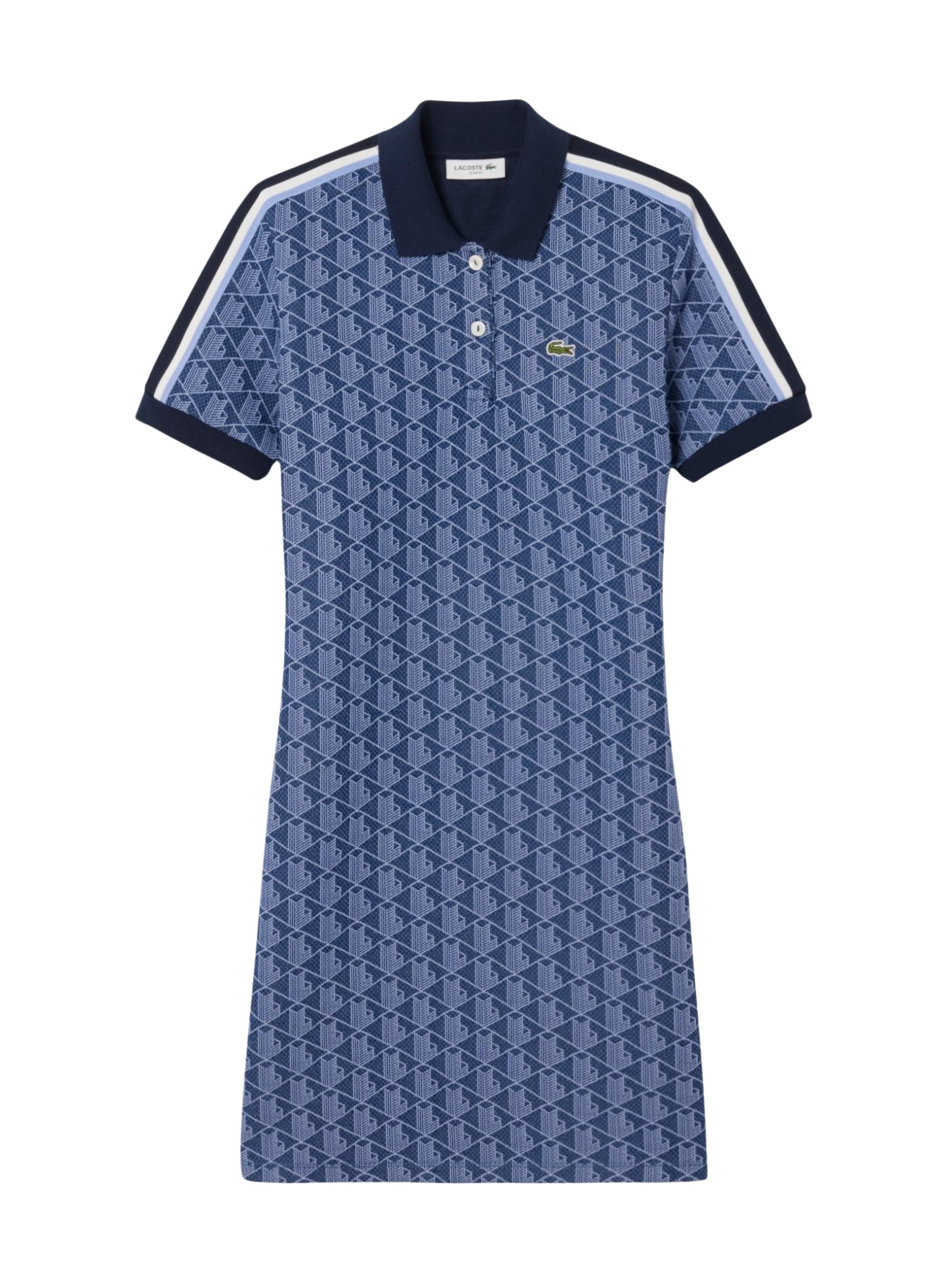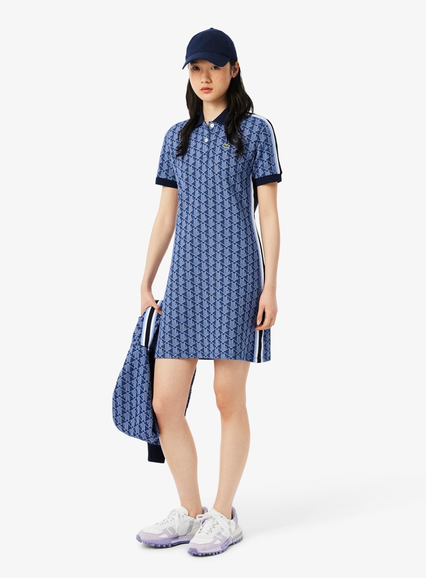 LACOSTE WOMEN Slim Fit Monogram Jacquard Polo Dress Navy Blue