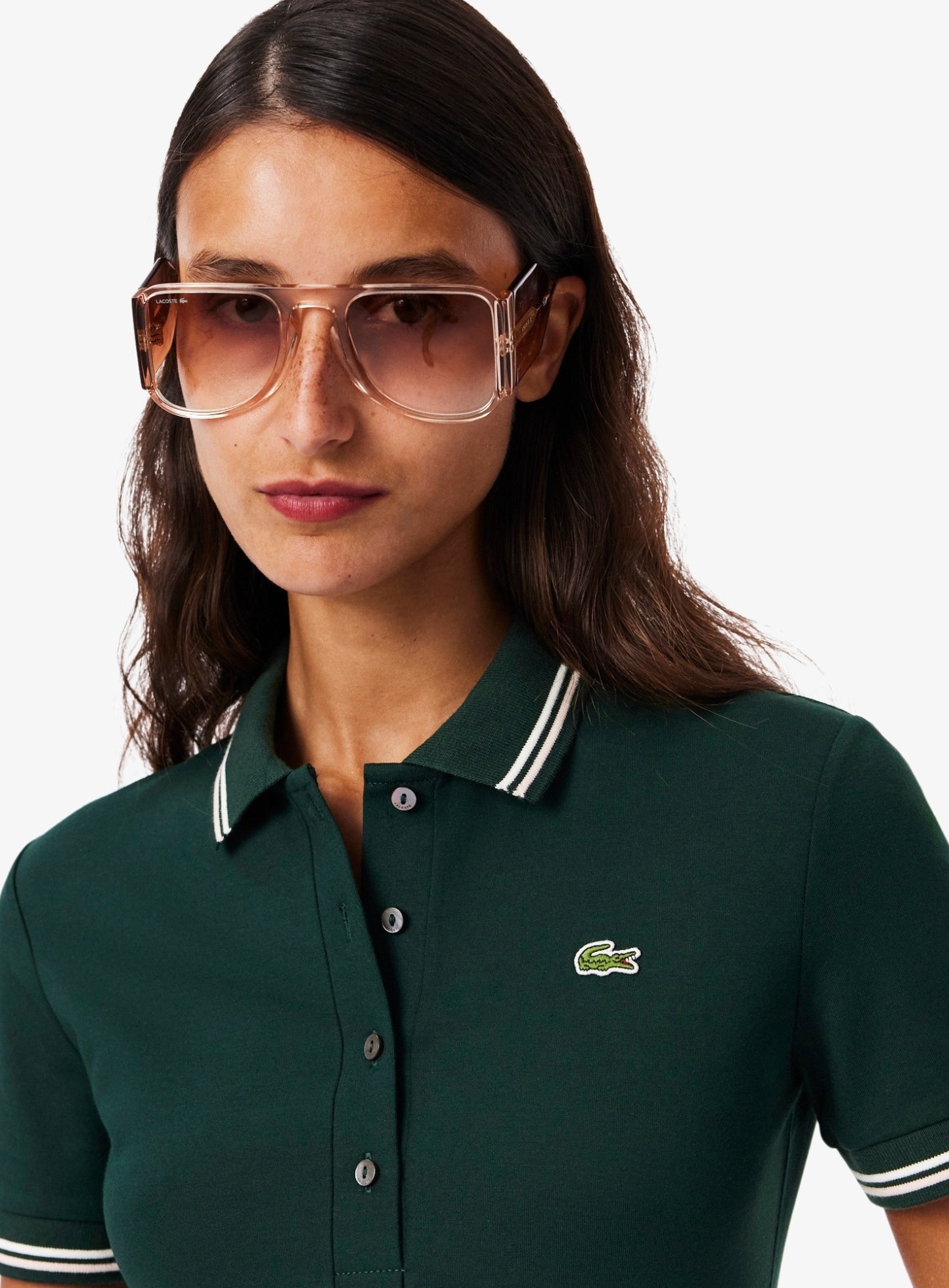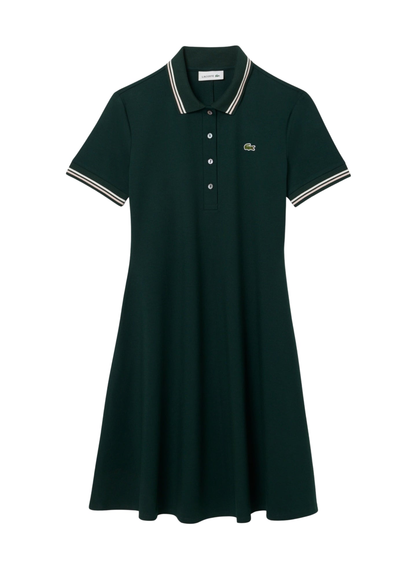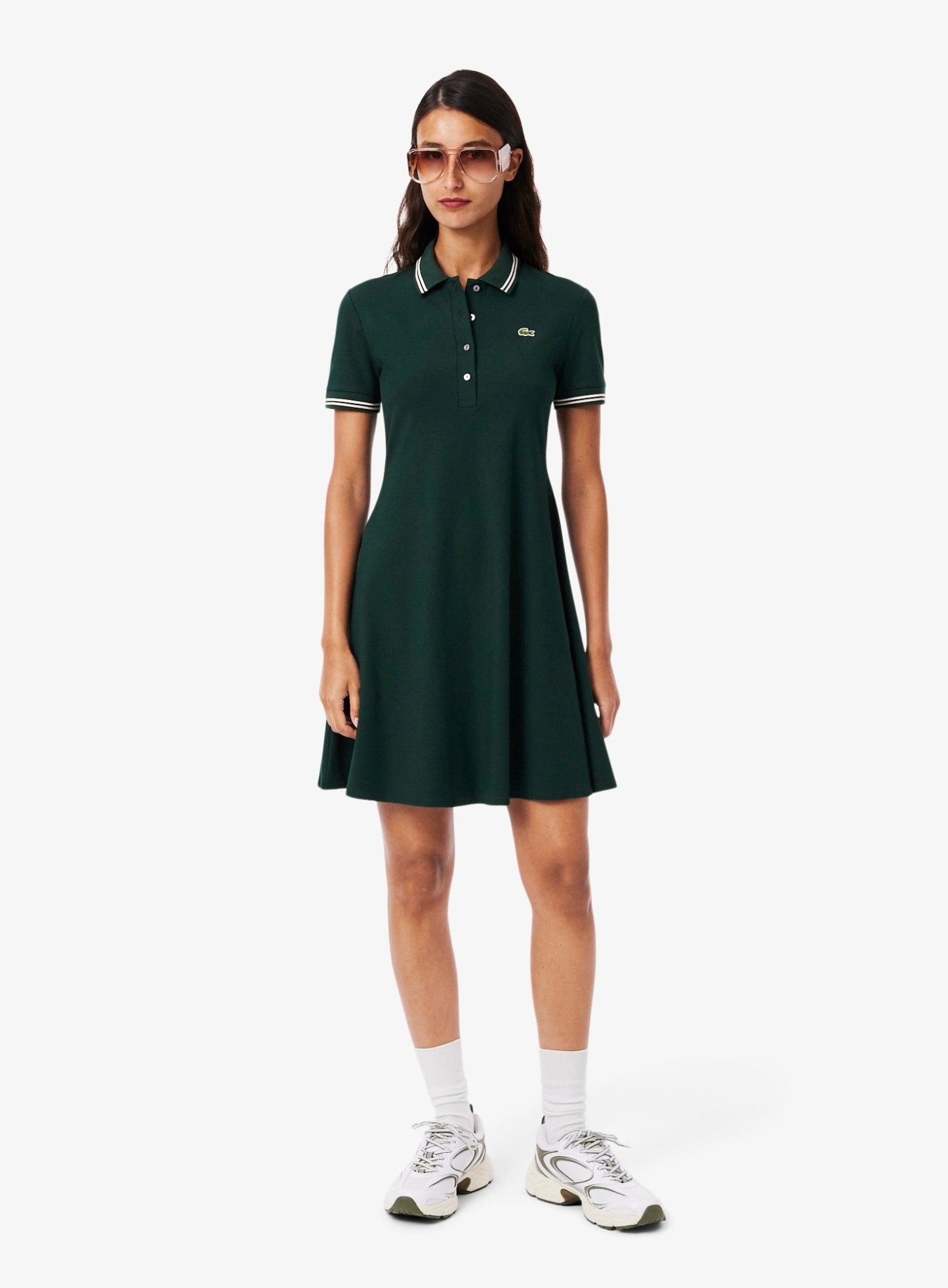 LACOSTE WOMEN Stretch Polo Collar Skater Dress Green