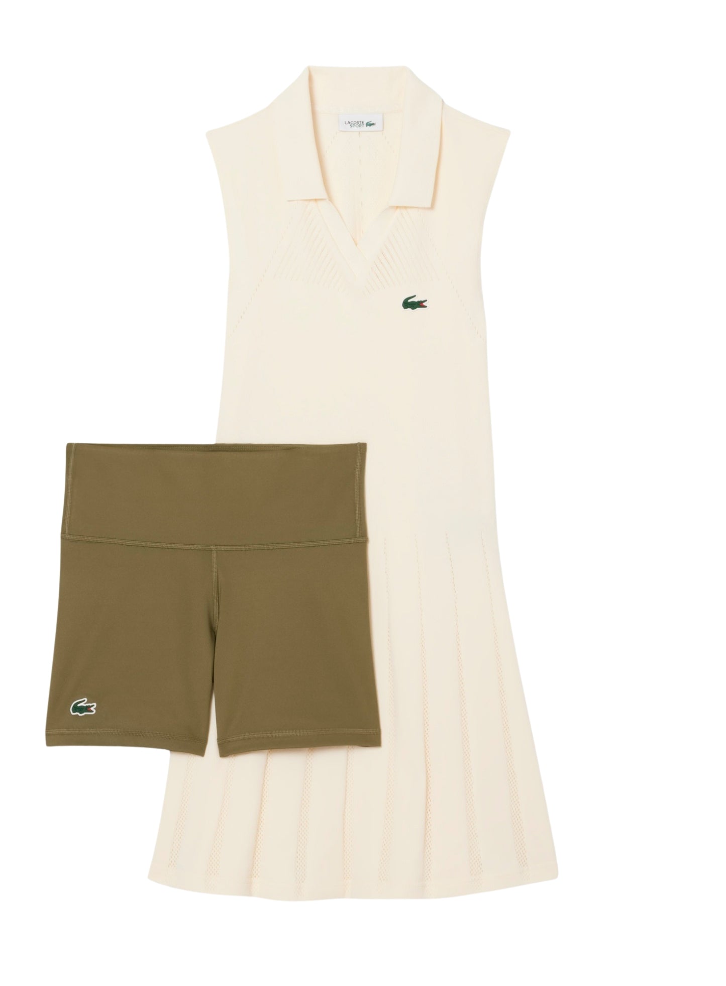 Regular price Rs. 11,300.00LACOSTE WOMEN Stretch Tennis Dress and Shorts White Khaki Green