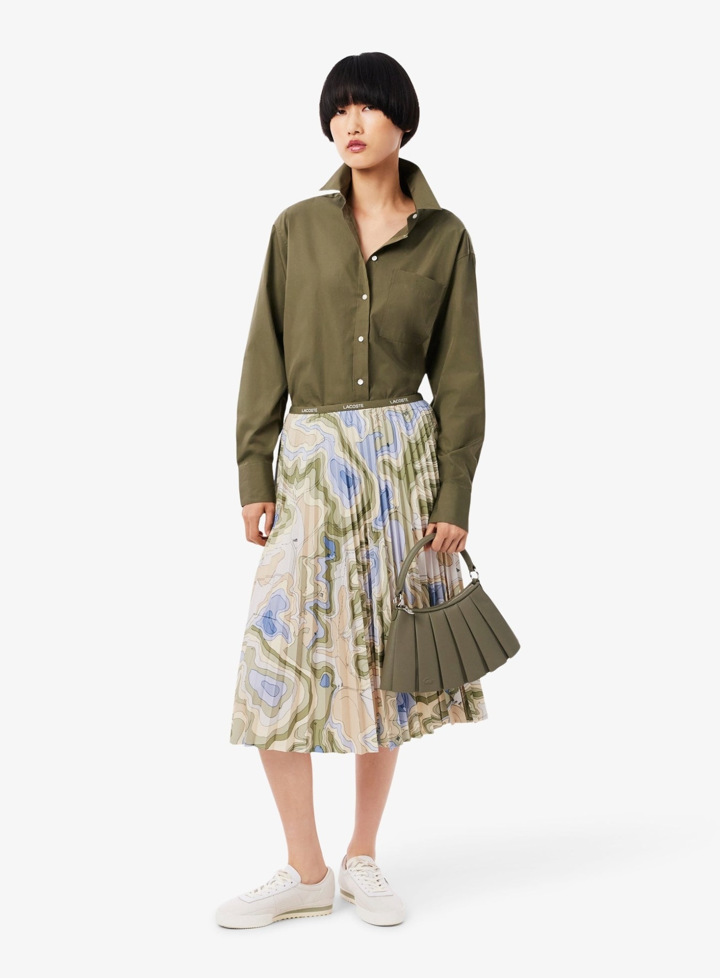 LACOSTE WOMEN Topography Print Pleated Skirt White Blue