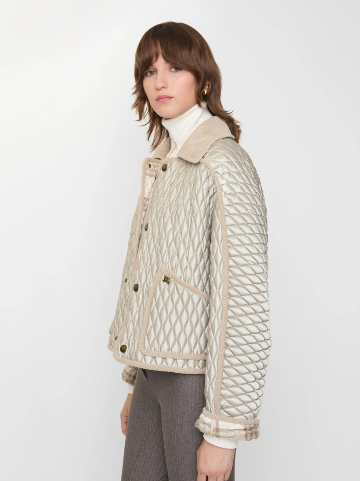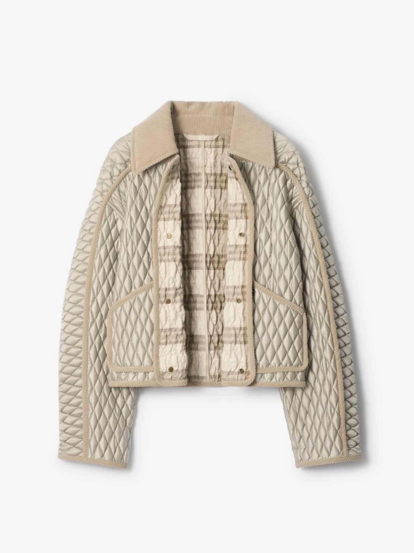 BURBERRY WOMEN Cropped Quilted Nylon Floriston Jacket Wisp Grey