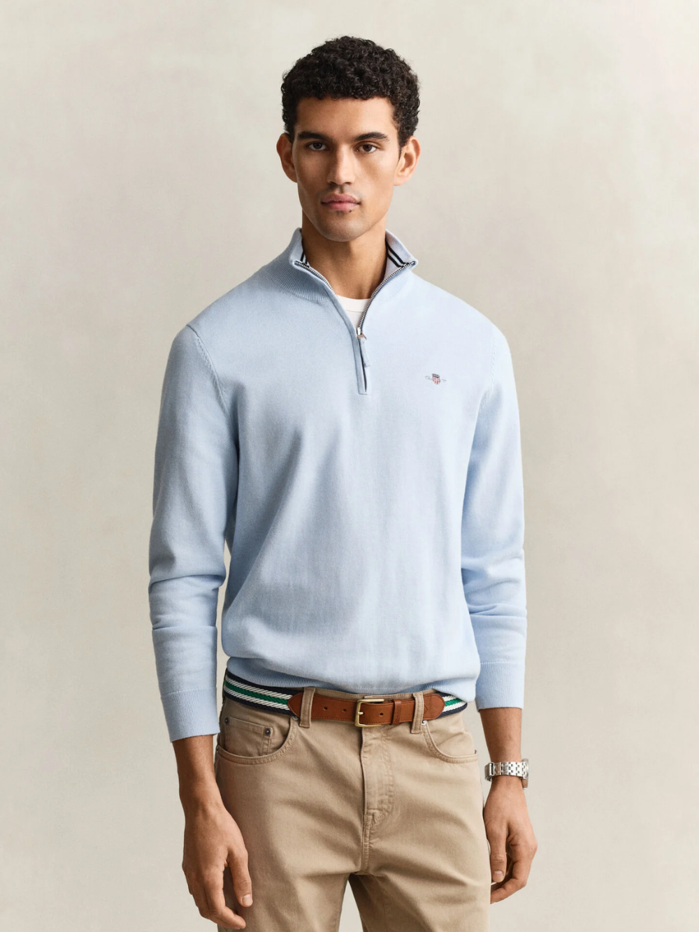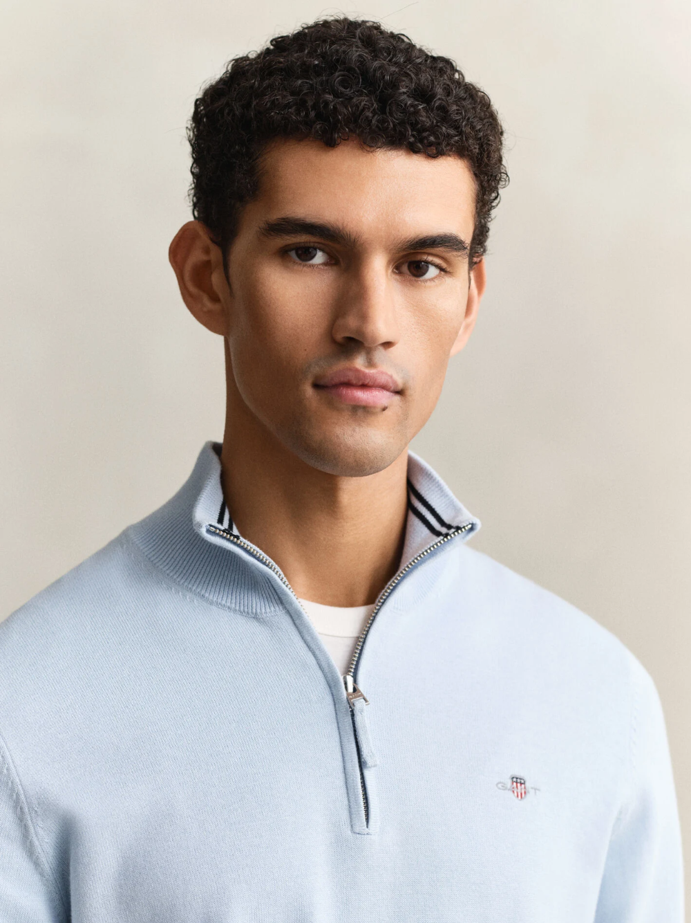 Crafted in cotton and cut in a regular fit, this sweater features a half-zip collar, ribbed detailing and our shield graphic embroidered at the chest.