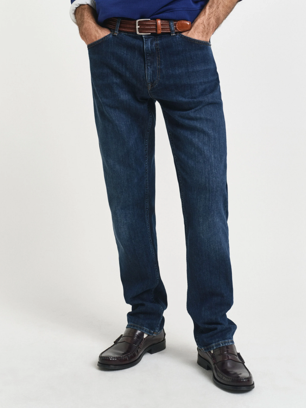 Regular price $ 2,599.00 MXNCrafted in cotton with a hint of stretch, these jeans feature a regular fit for a comfortable, classic style. A versatile wardrobe staple, these jeans are easily dressed up or down for almost any occasion.