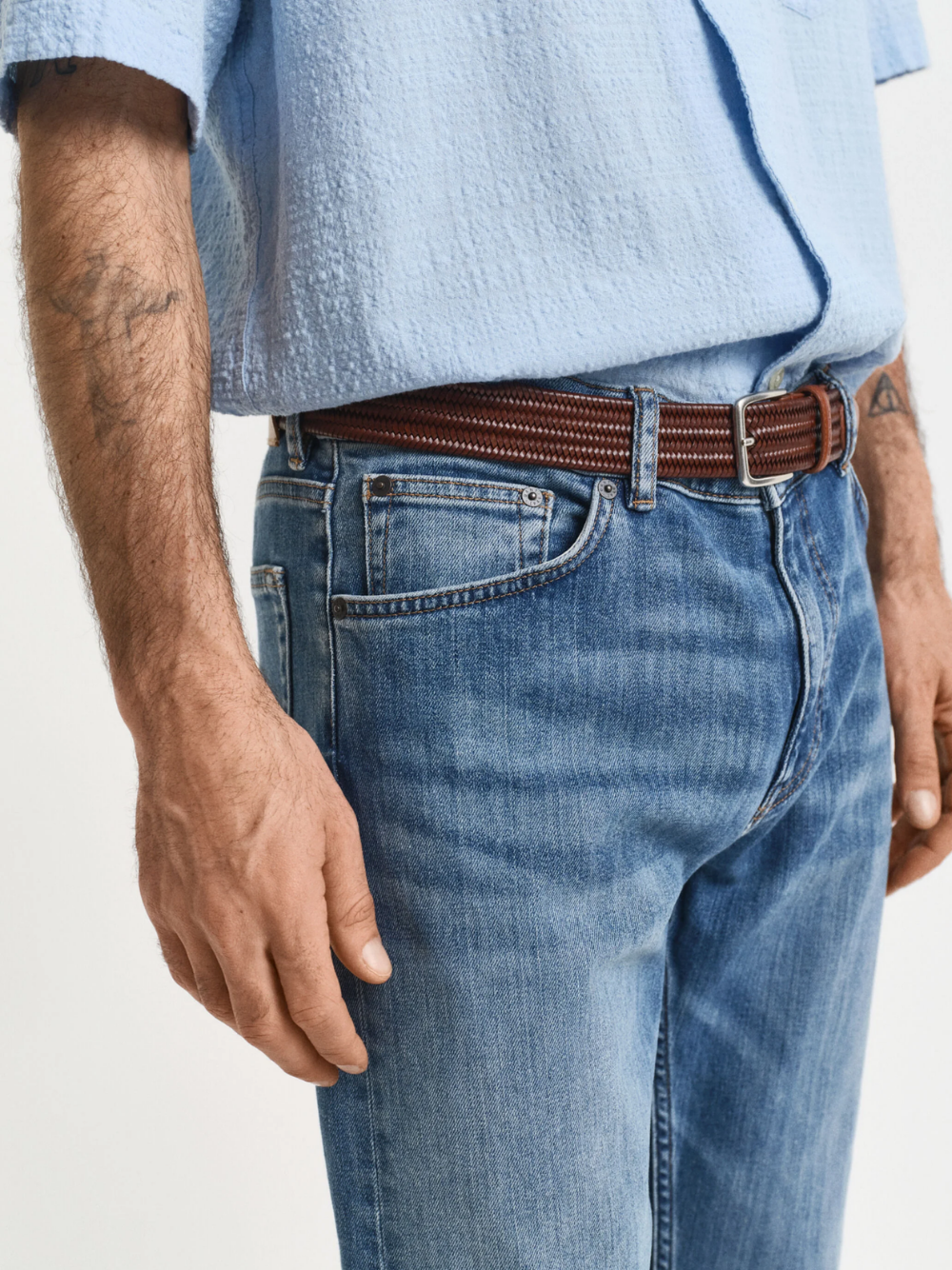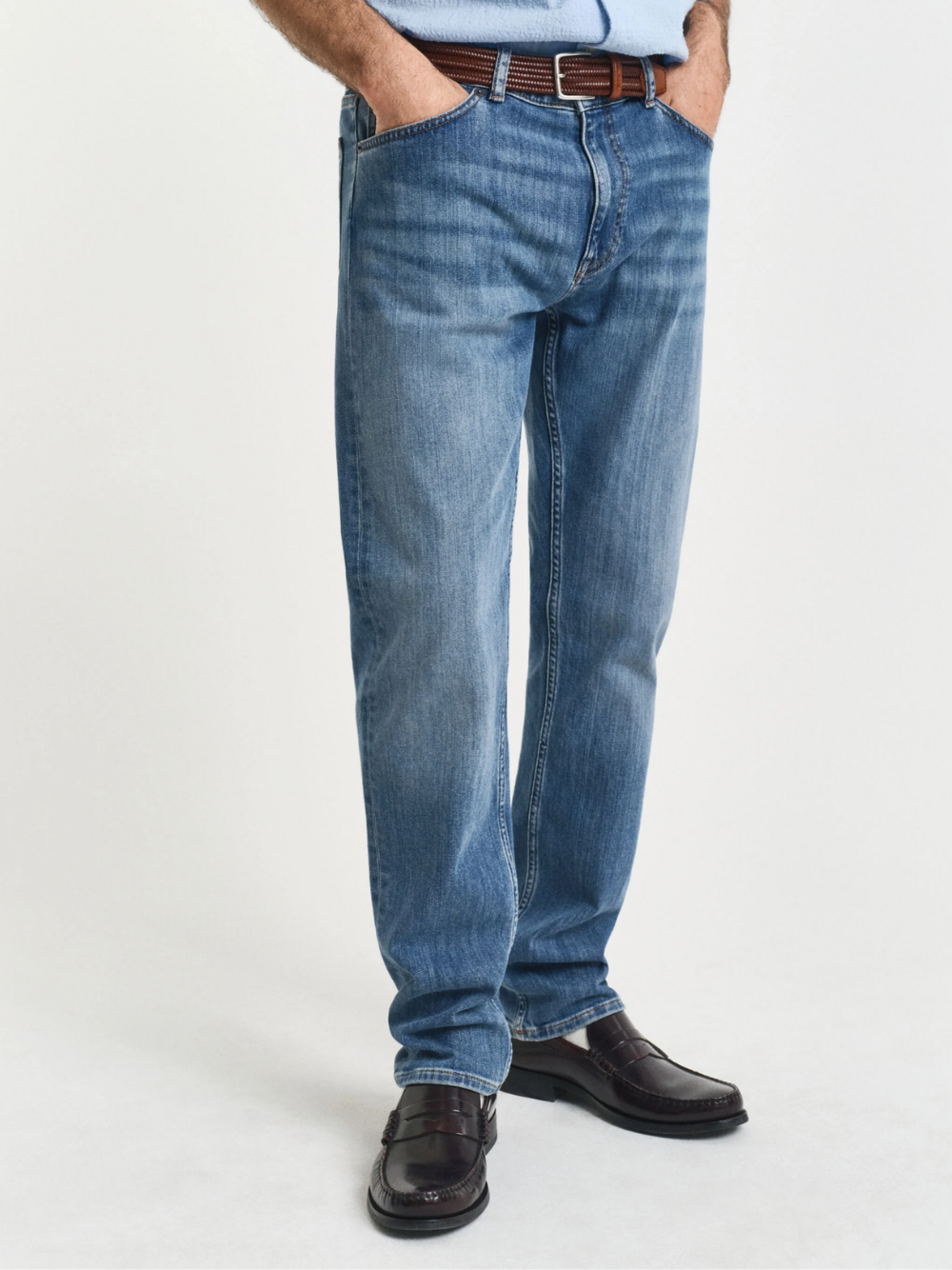 Regular price $ 2,599.00 MXNCrafted in cotton with a hint of stretch, these jeans feature a regular fit for a comfortable, classic style. A versatile wardrobe staple, these jeans are easily dressed up or down for almost any occasion.