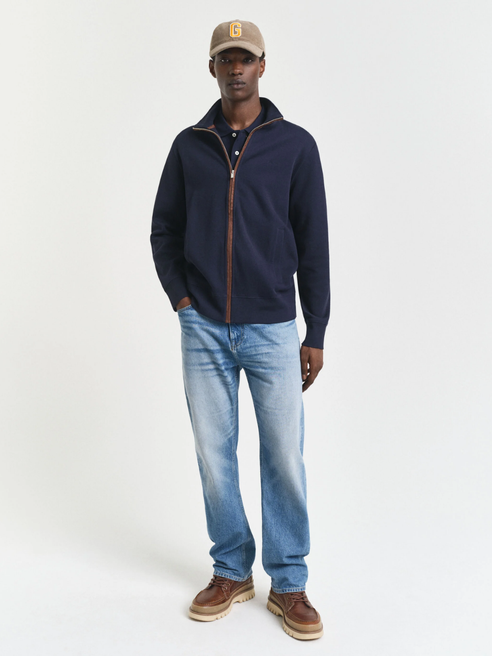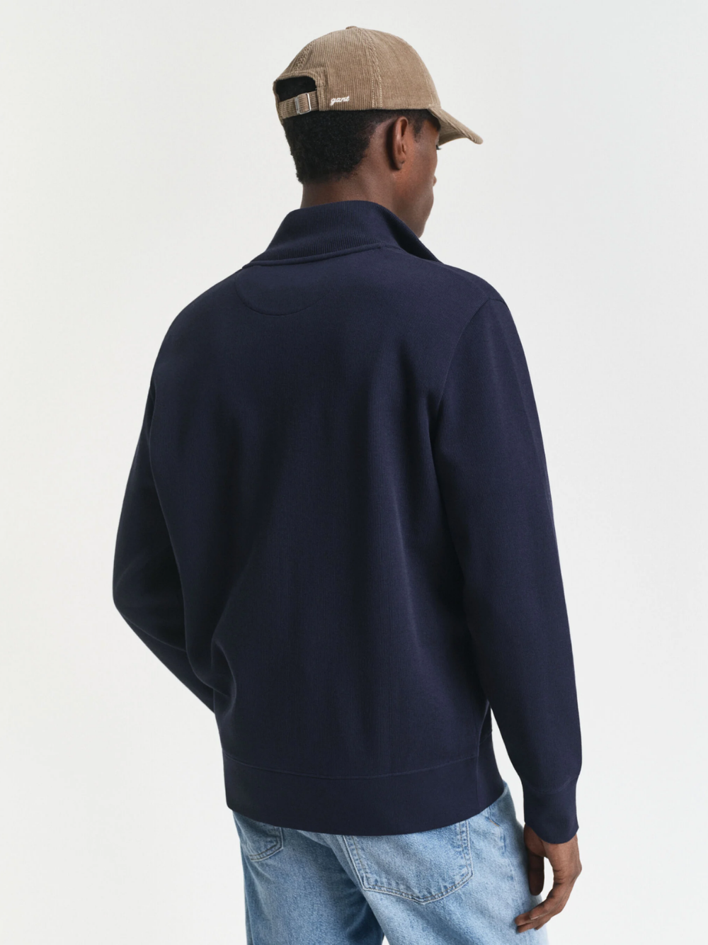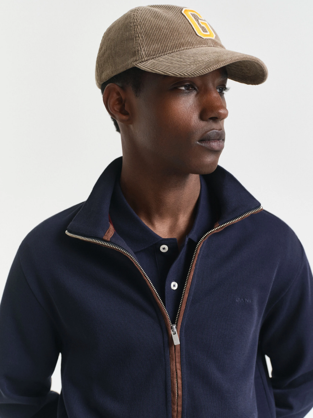 Crafted from 100% cotton with a soft hand-feel, this zip cardigan is cut for a regular fit and features a silver-toned metal zipper and imitation suede details on the placket and neck tape. The design is complete with a tonal GANT embroidered at the chest.