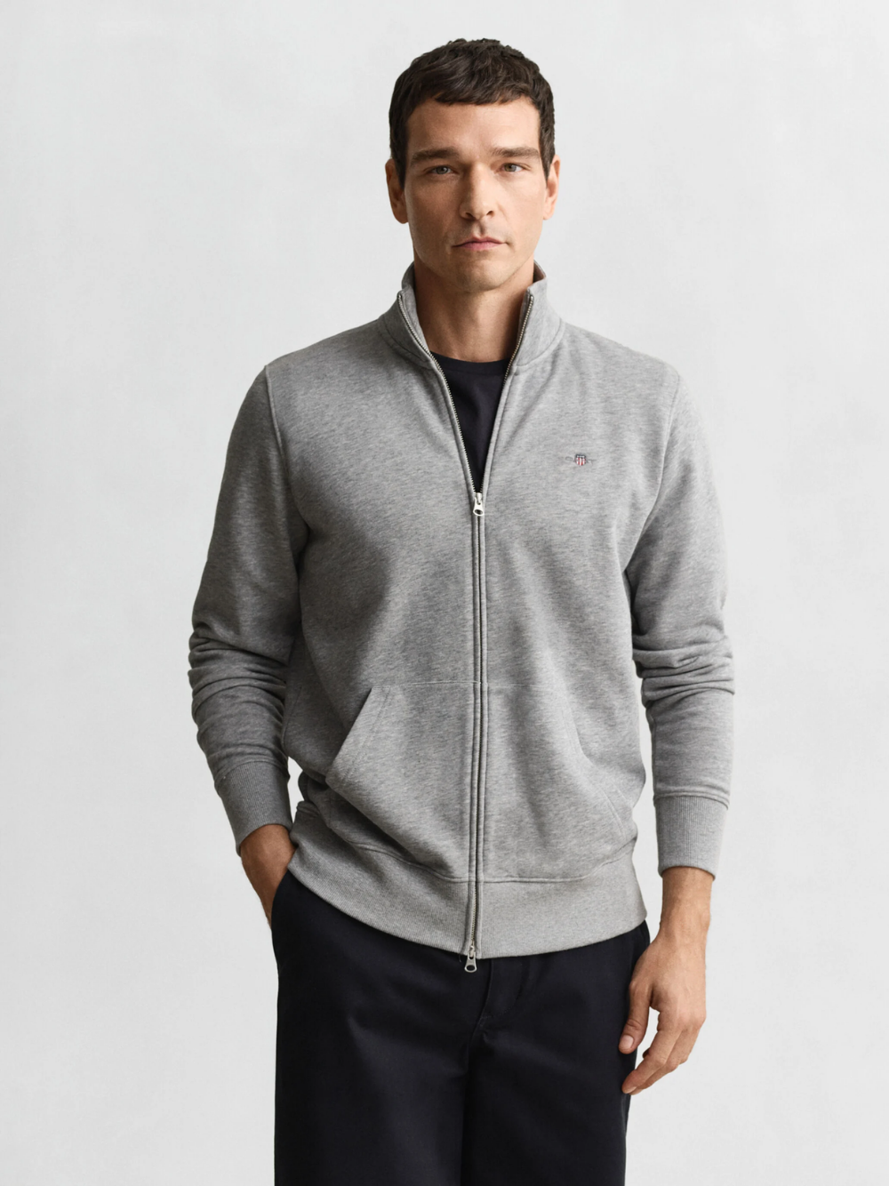 GANT Shield Zip Sweatshirt Grey Melange