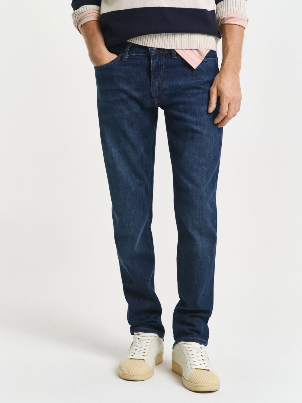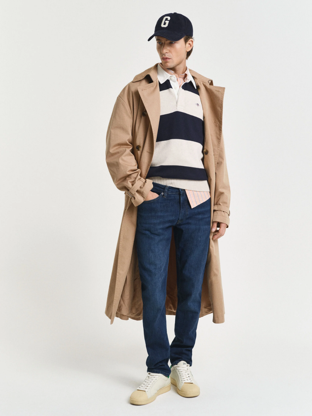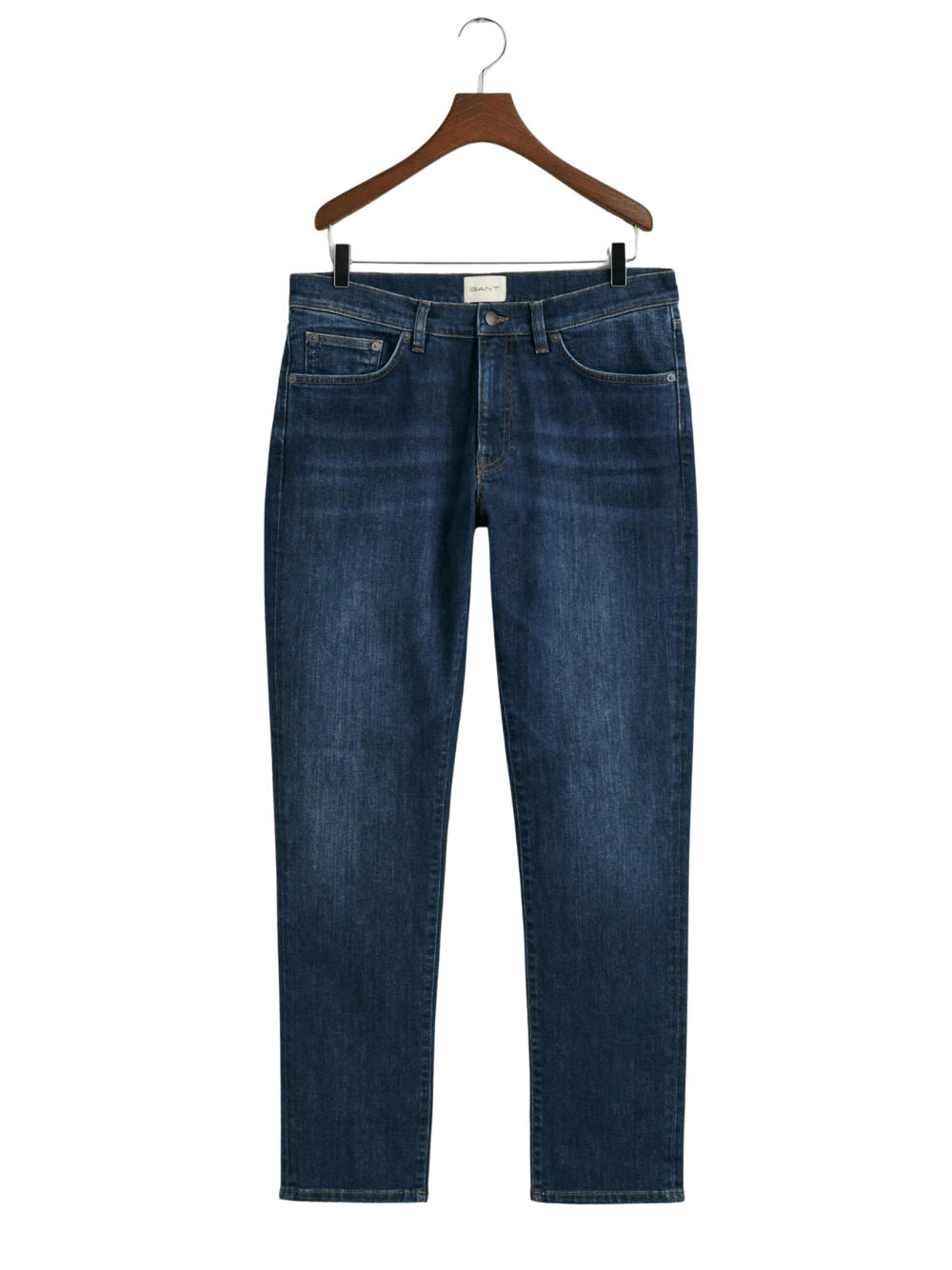 Crafted in a cotton blend with a hint of stretch, these mid-rise jeans are cut in a slim fit for a contemporary style. Pre-washed for a worn-in feel, they feature branded shank button and rivets, a zip fly and a leather logo patch at the back waistband.