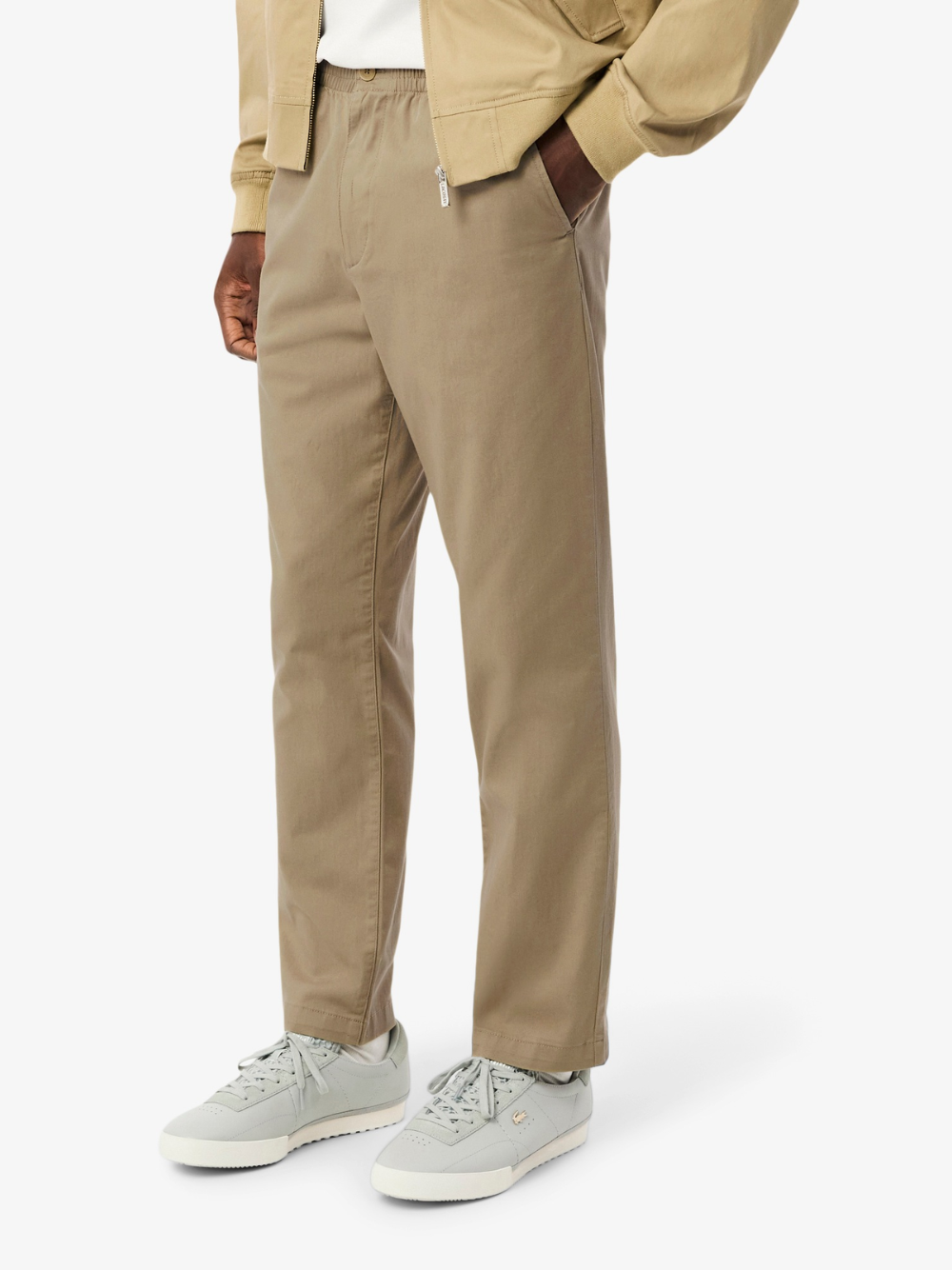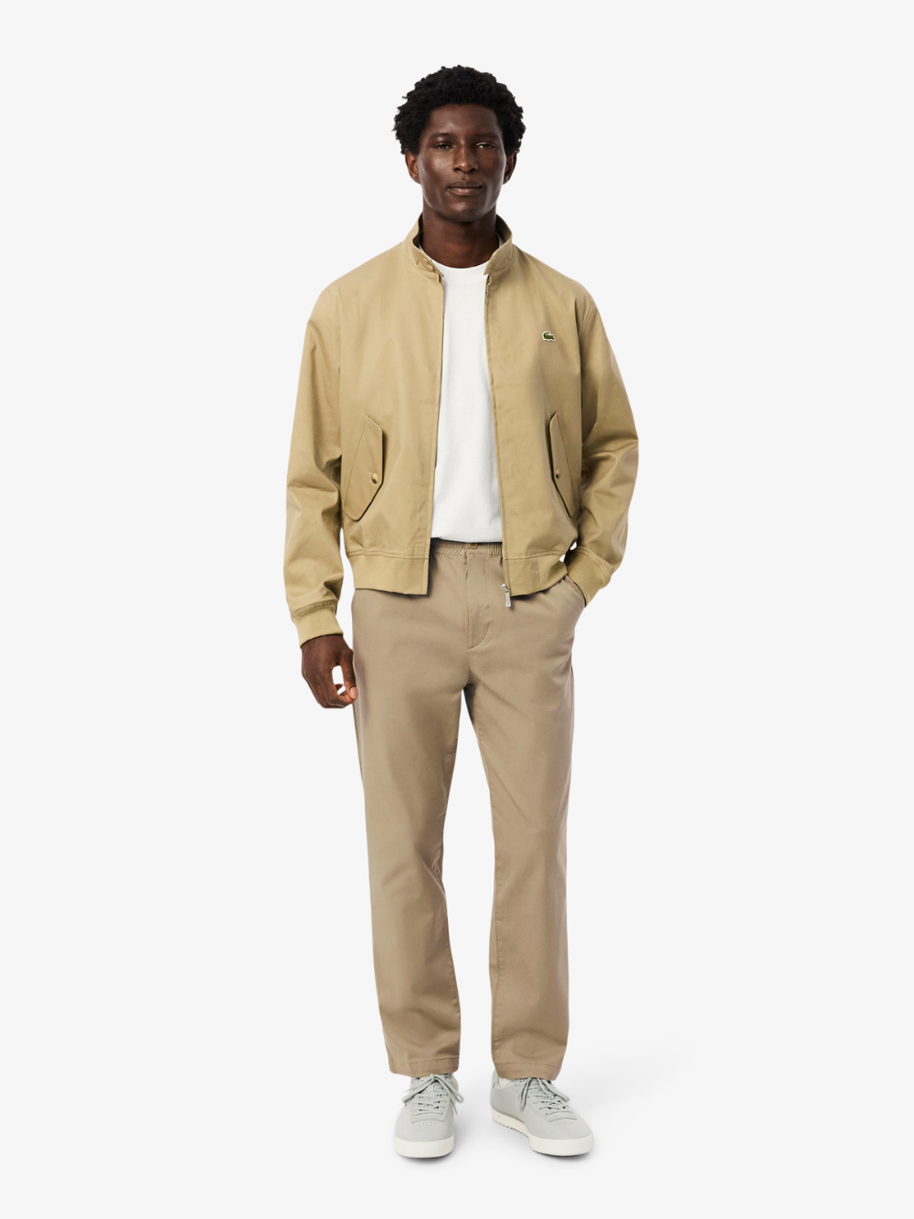 A cross between sweatpants and chinos, signed Lacoste, experts in French elegance since 1933. Made from stretch cotton gabardine with an elasticated waist for maximum comfort. A timeless essential with subtle finish details, including an embroidered crocodile.
