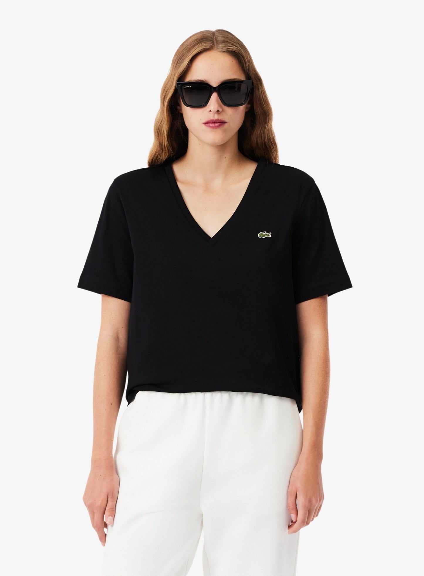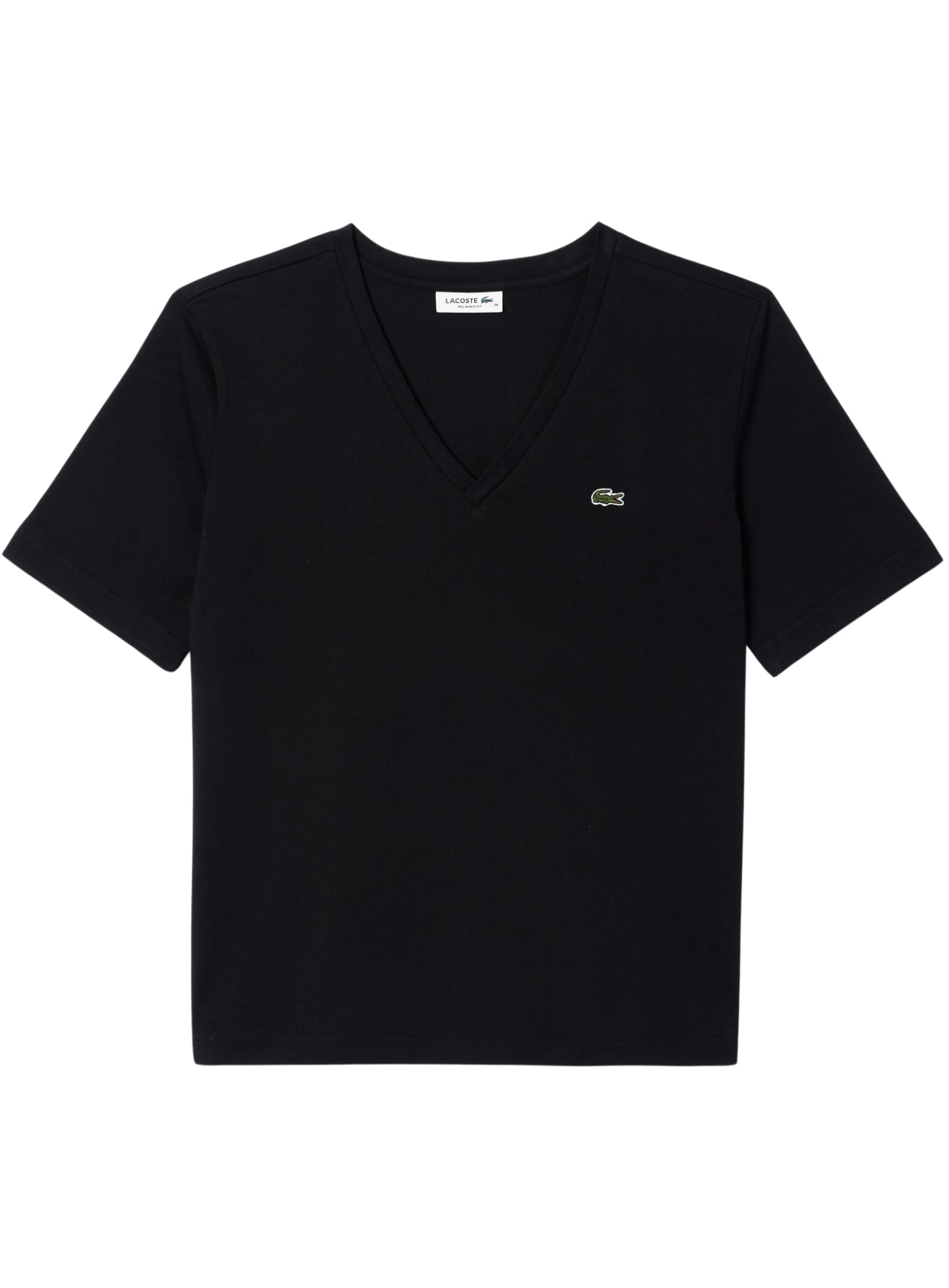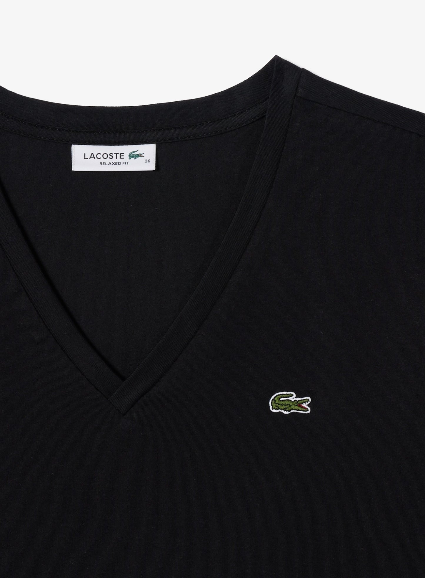 LACOSTE WOMEN Relaxed Fit Soft Cotton V Neck T-shirt Black