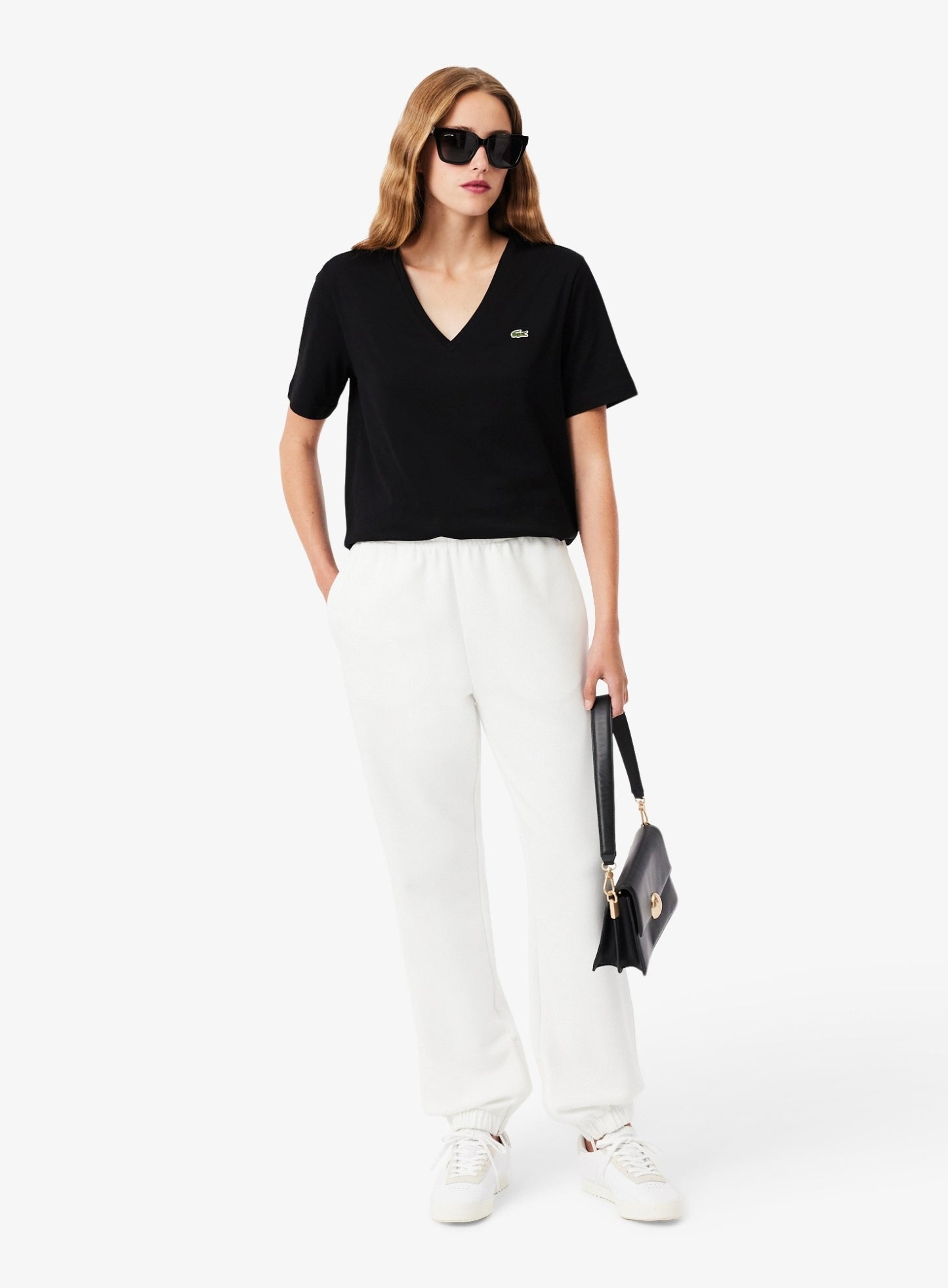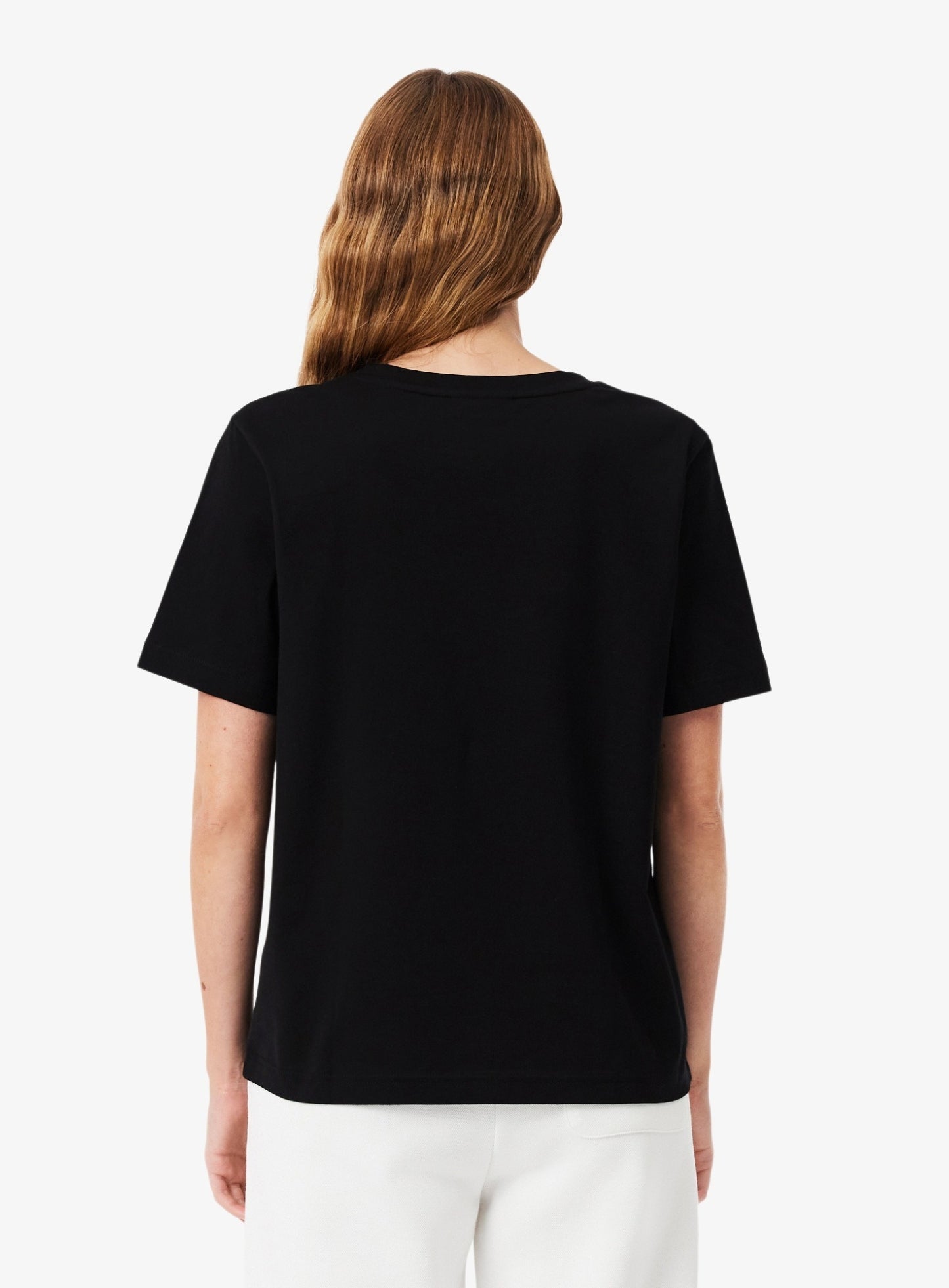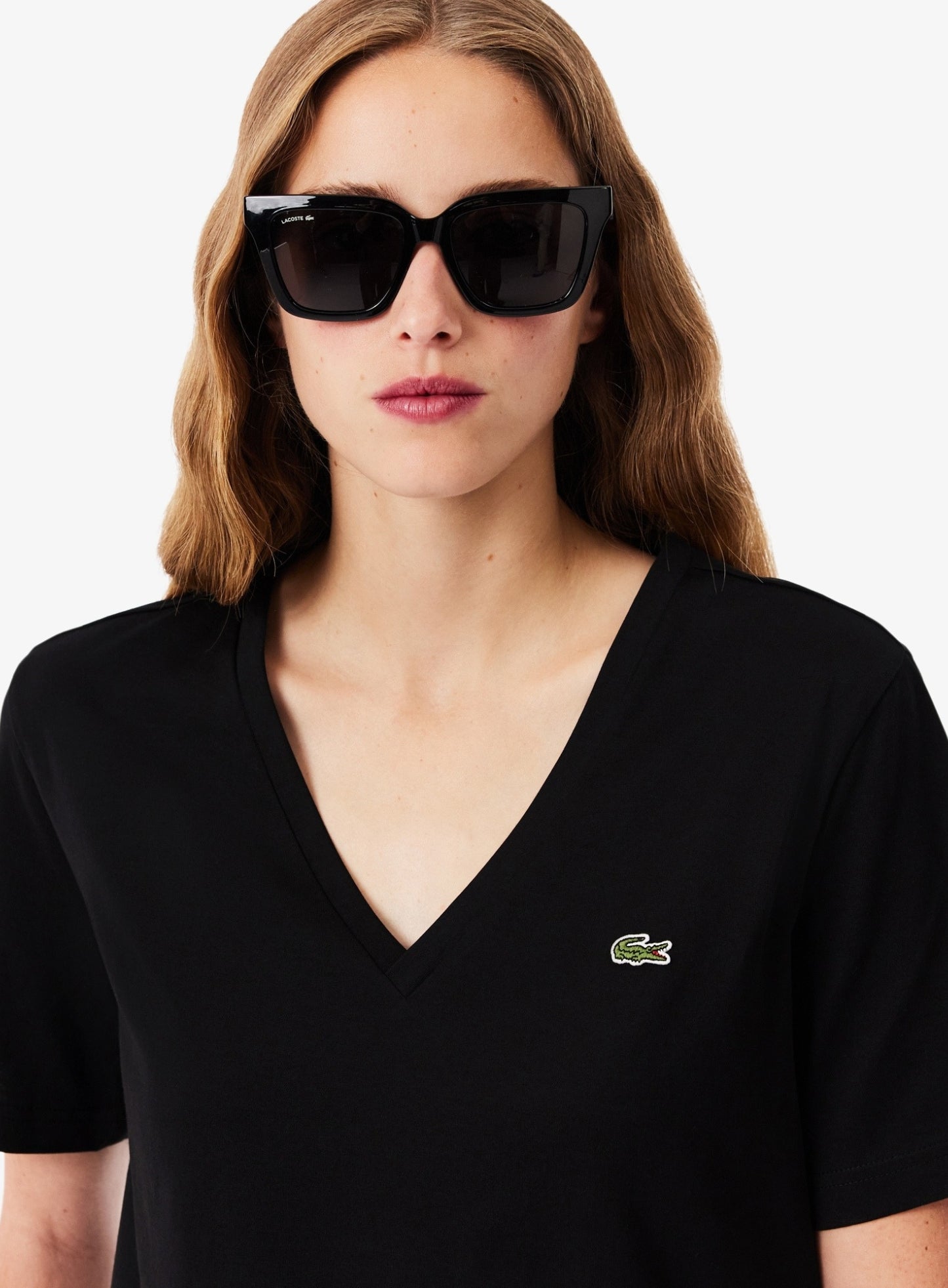 LACOSTE WOMEN Relaxed Fit Soft Cotton V Neck T-shirt Black