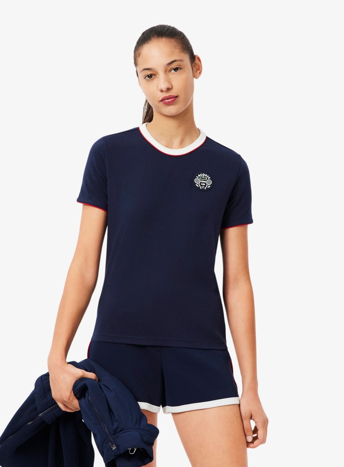 LACOSTE WOMEN Ultra Dry Tennis Heritage Badge T-shirt Navy Blue