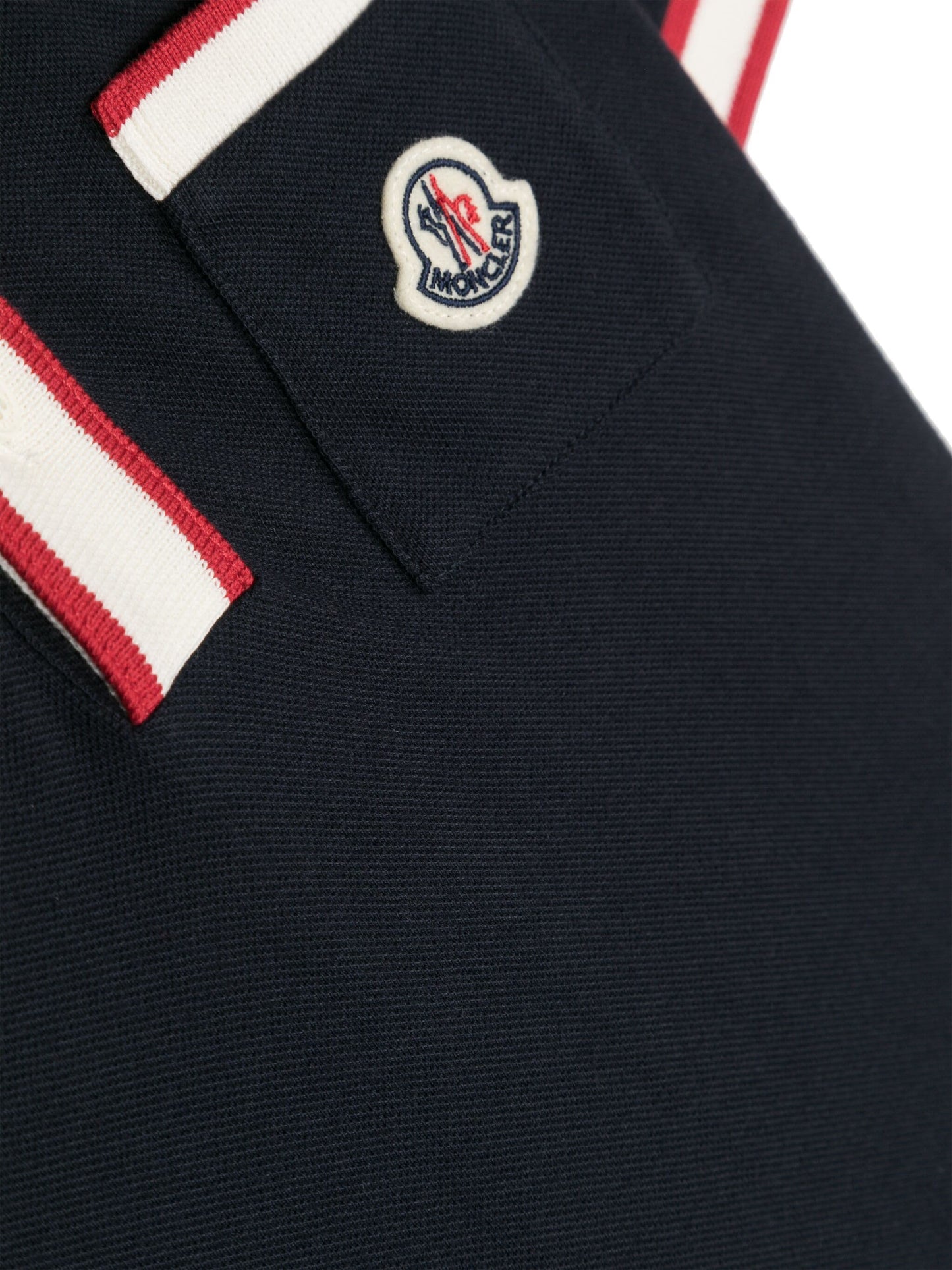 MONCLER KIDS Boys Logo Patch Polo Shirt With Stripe Detailing Navy