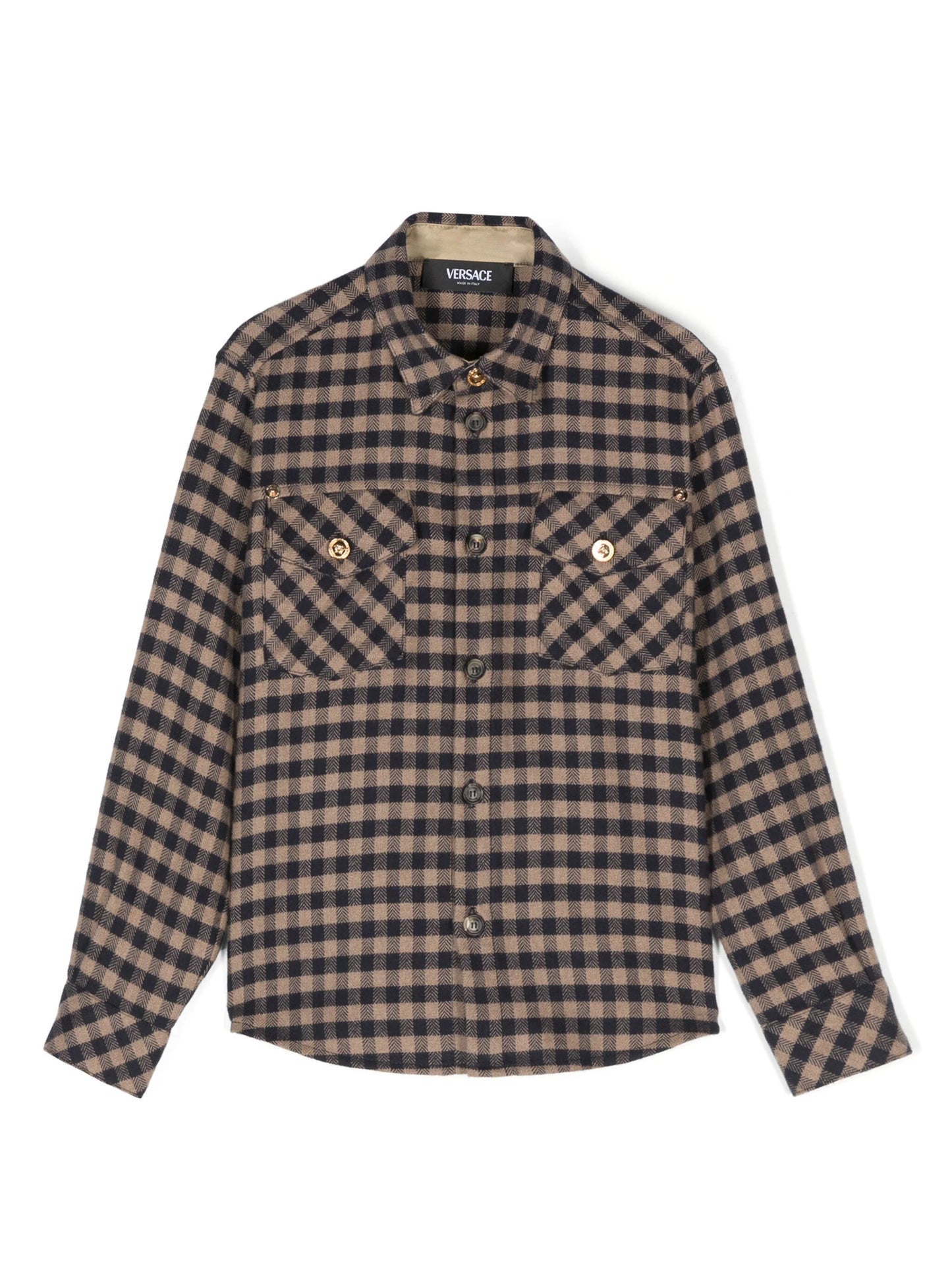 VERSACE KIDS Boys Checked Flannel Shirt Navy Blue/Beige
