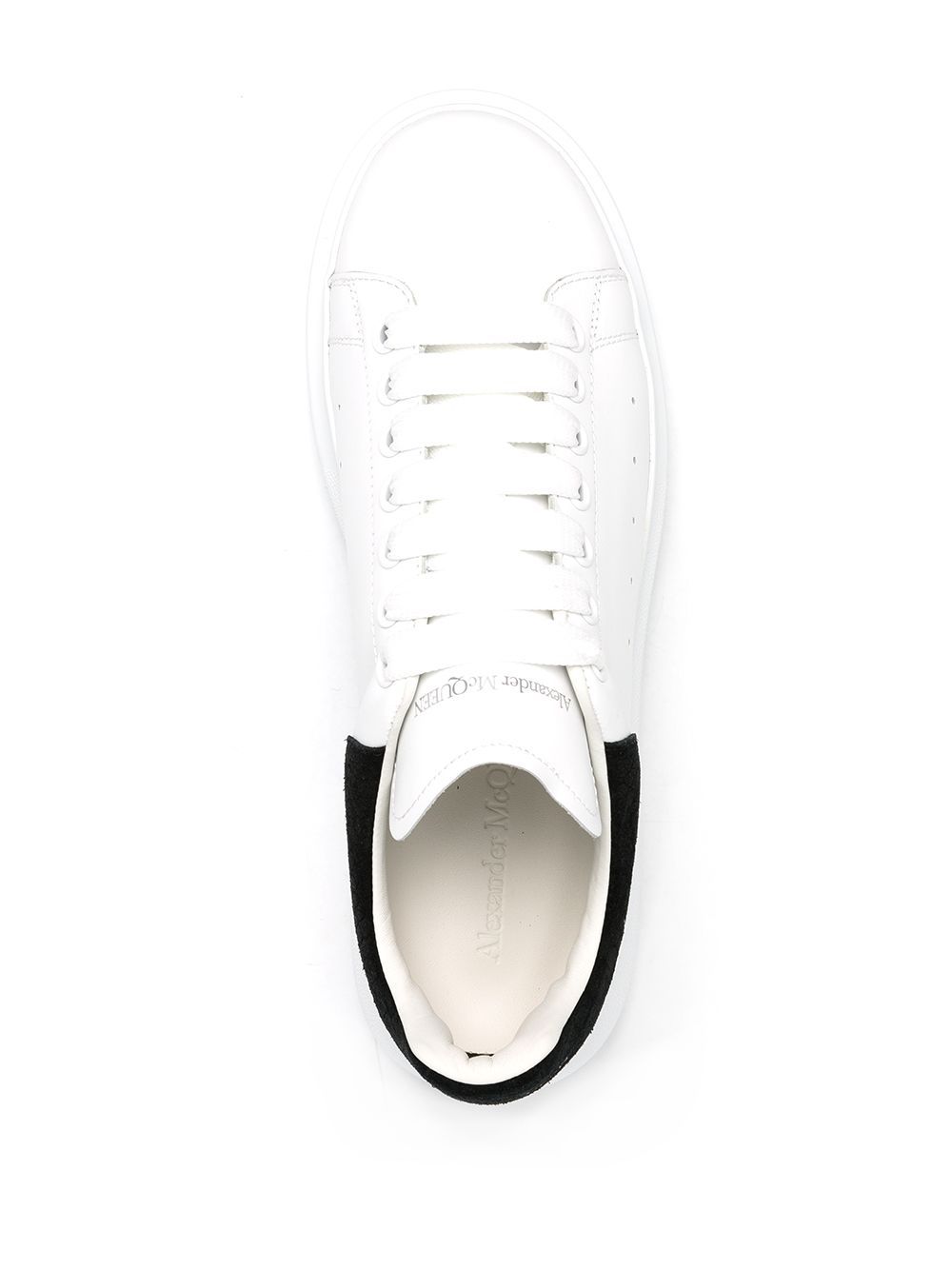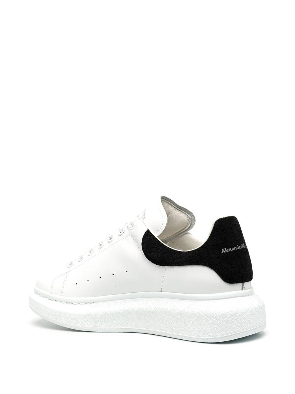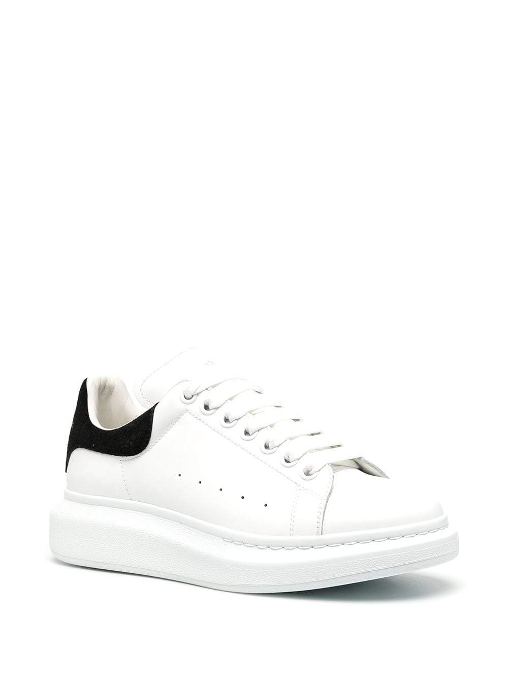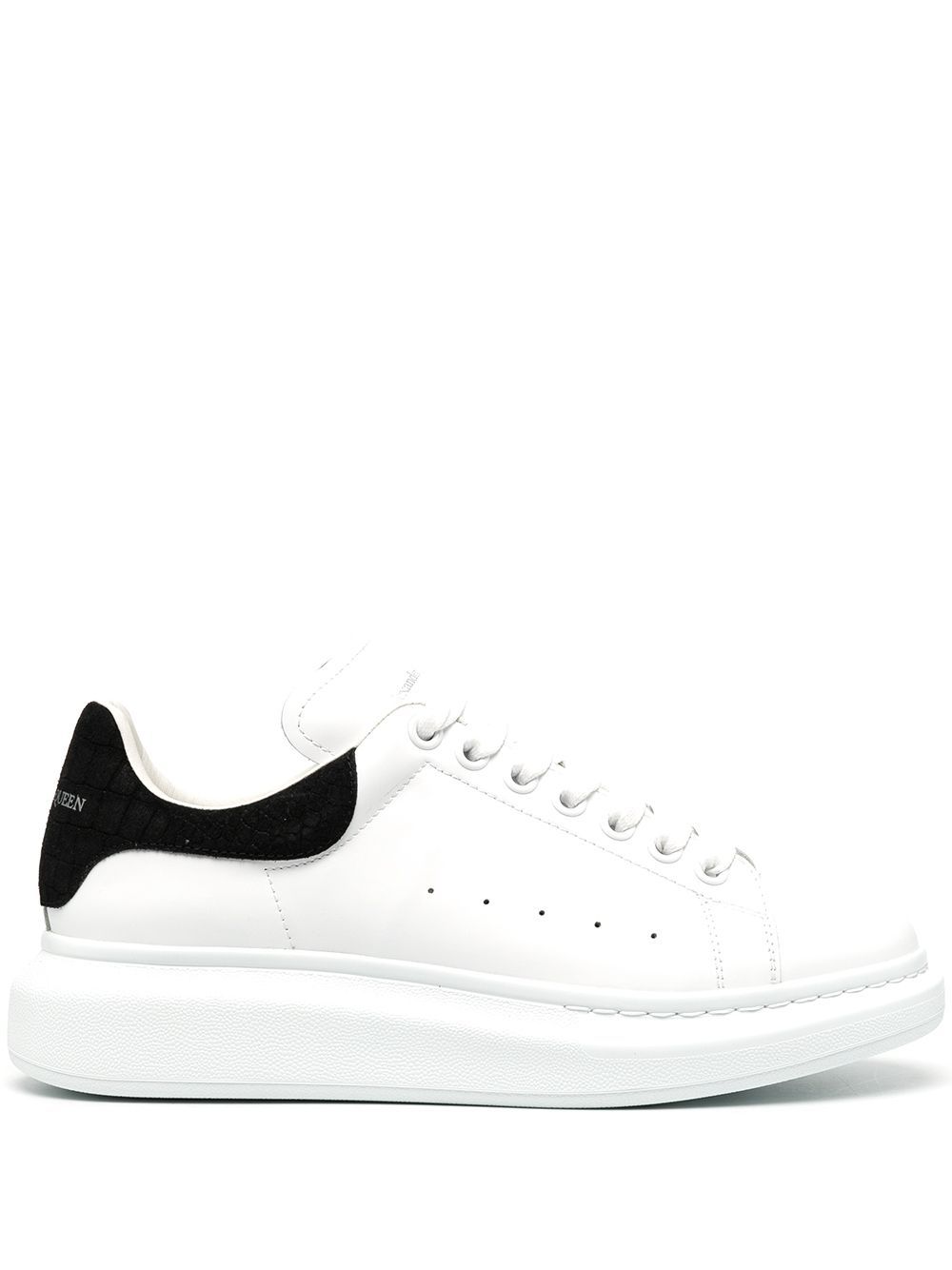 Chunky sneakers are here to stay and these extended sole oversized sneakers from Alexander McQueen are our latest go-to. In white leather, this oversized pair is accented with a contrasting black heel counter. Go big or go home.