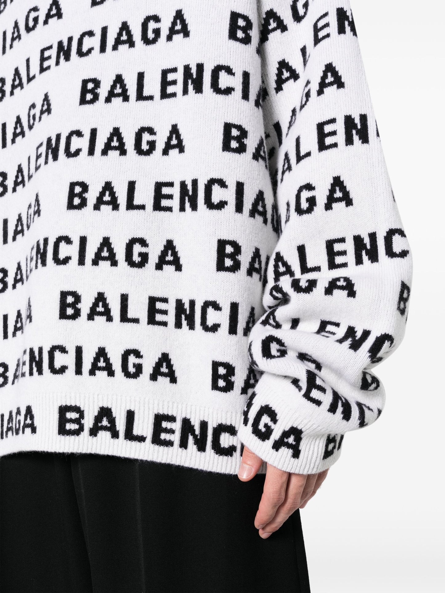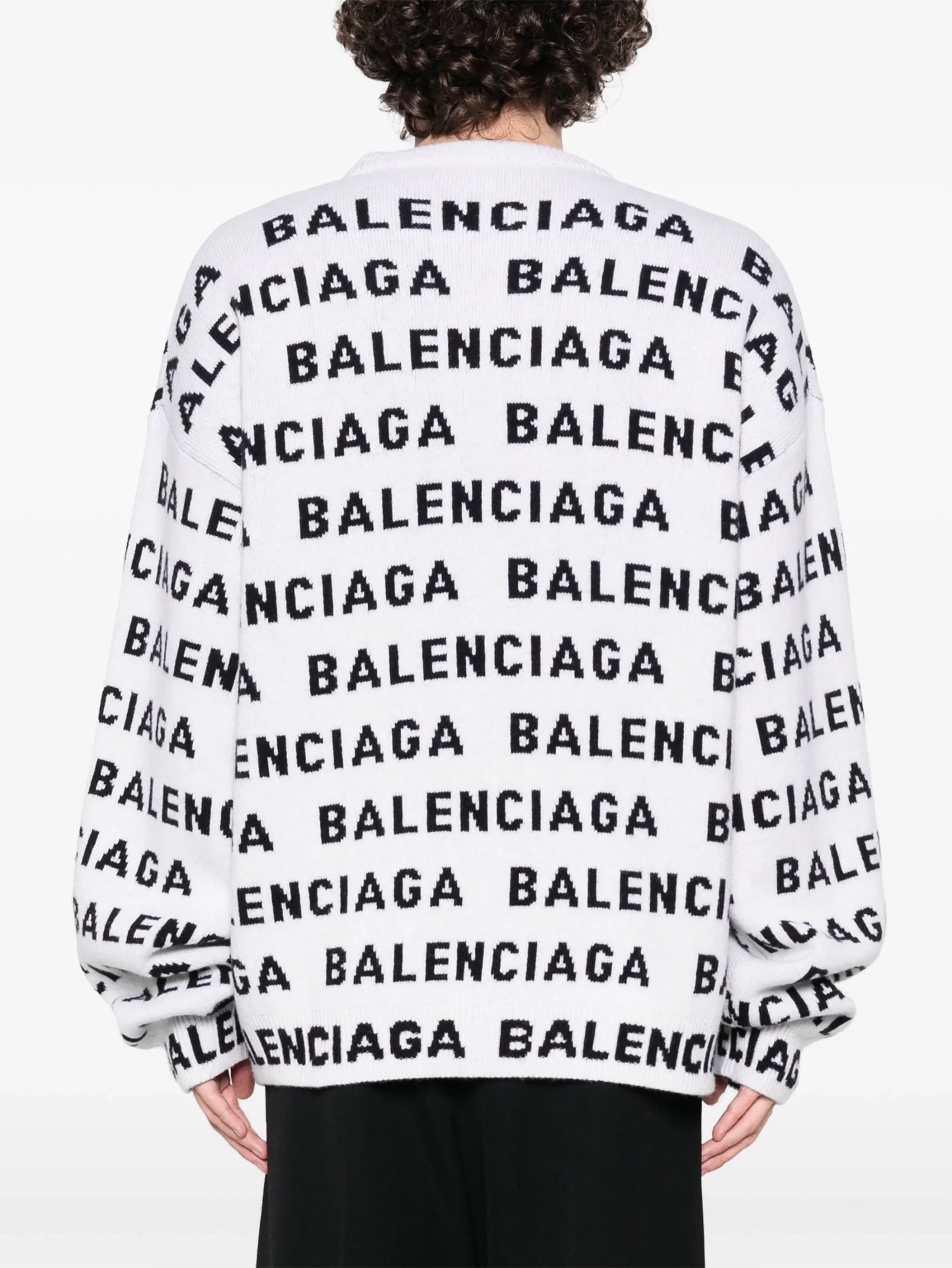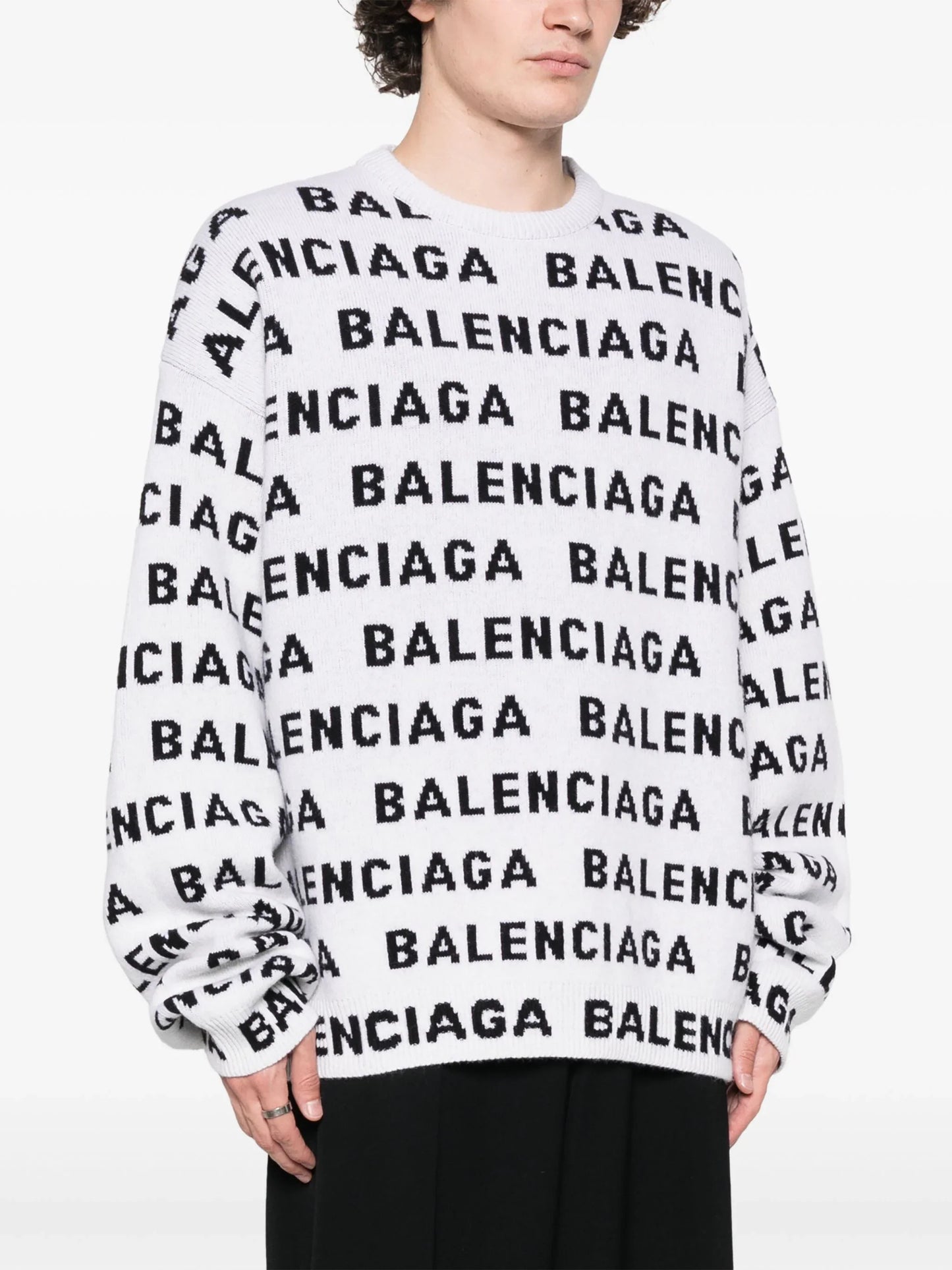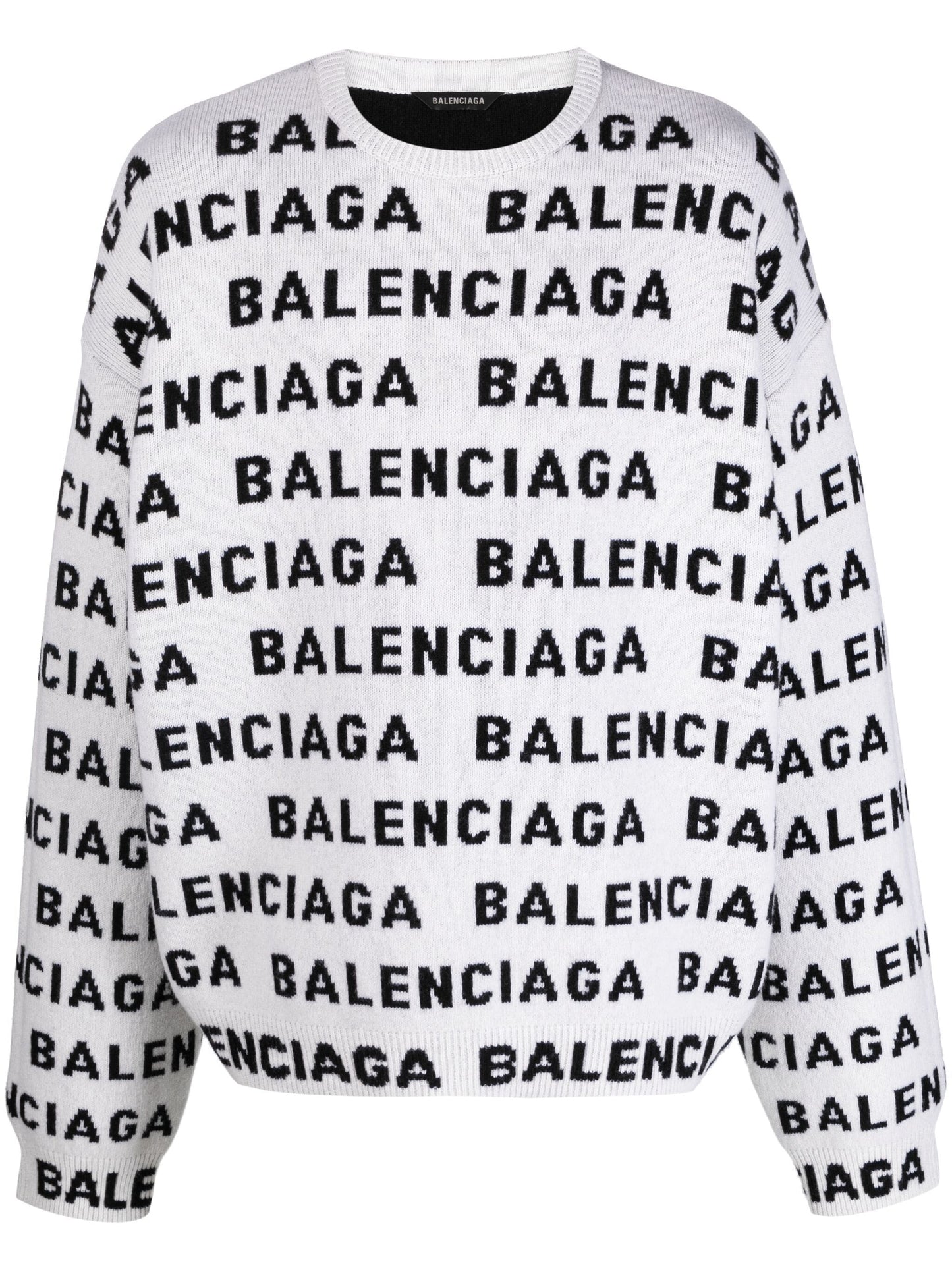 BALENCIAGA All Over Logo Intarsia Knit Jumper Crewneck White Black