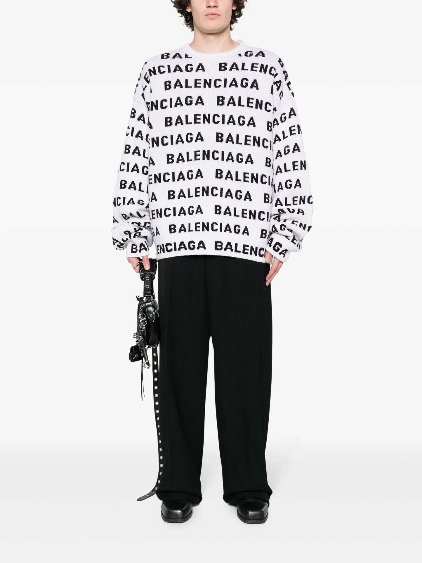 Embracing a logomania aesthetic, this Balenciaga jumper is adorned with an all-over intarsia-knit logo pattern. It's crafted in Italy from wool-blend yarns and boasts a classic crew-neck silhouette.