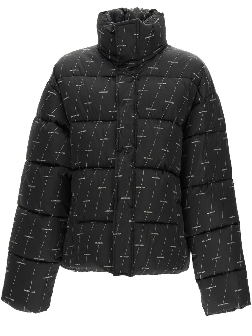 BALENCIAGA BB All Over Logo Puffer Jacket Black