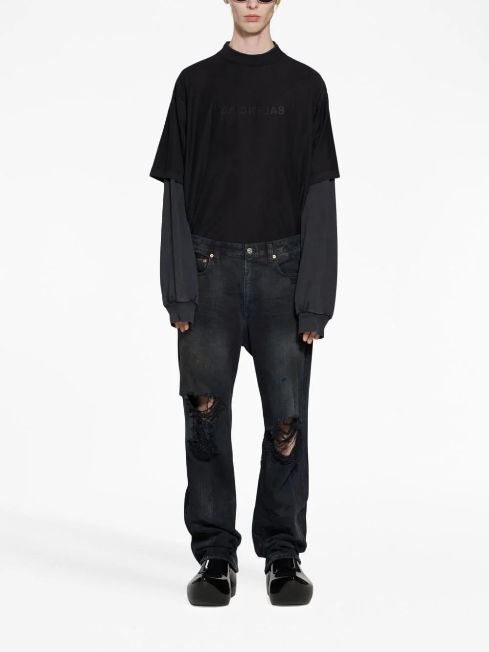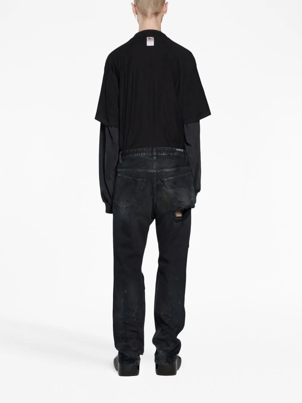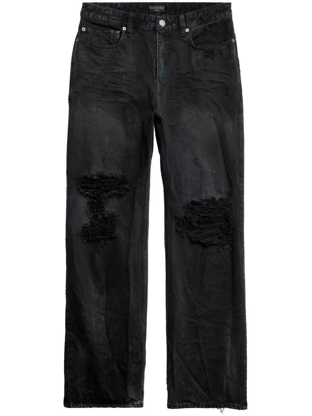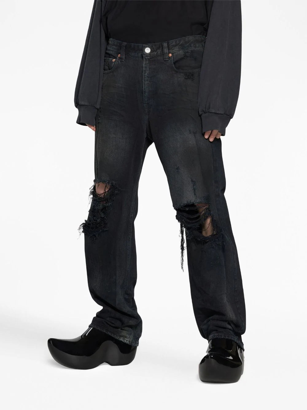 BALENCIAGA Ripped Straight Leg Jeans Flat Black
