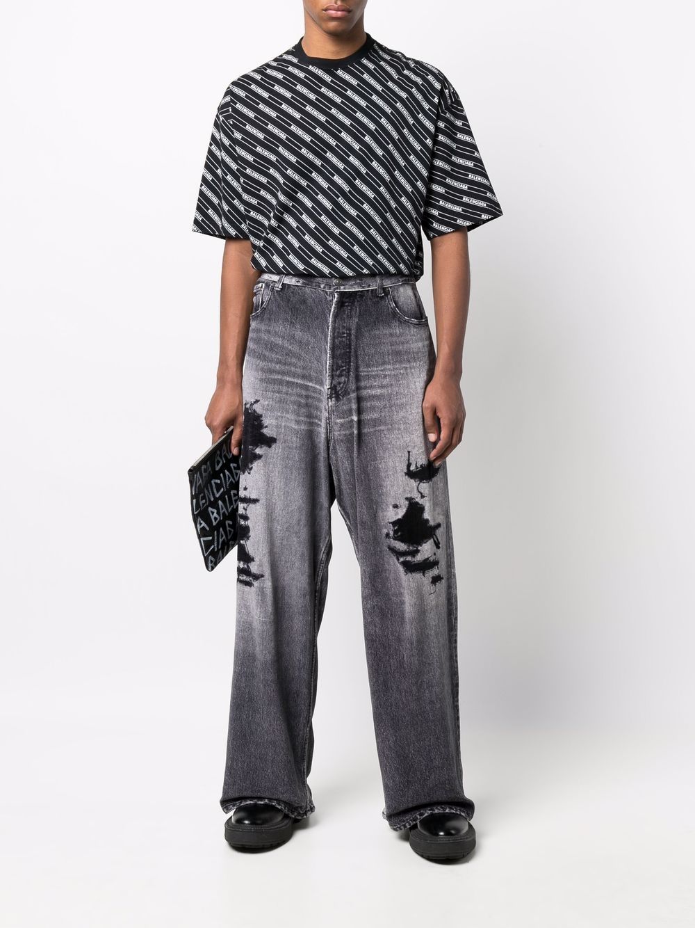 Balenciaga has always been celebrated for its play on proportion. These Baggy jeans have a wide-leg fit and are finished with scribble detailing and whiskering for a love-worn look.