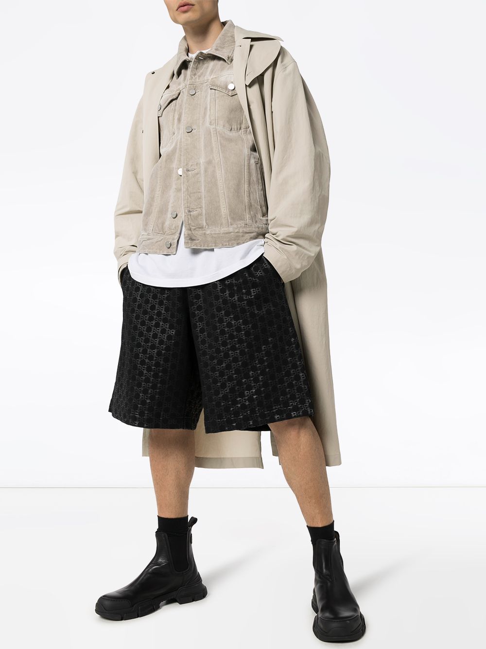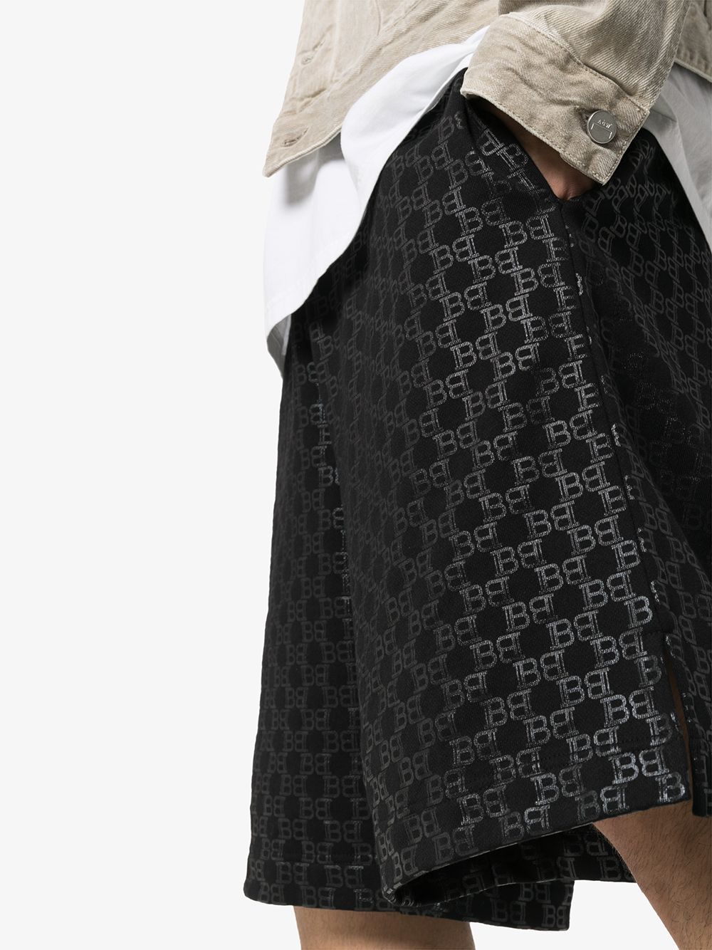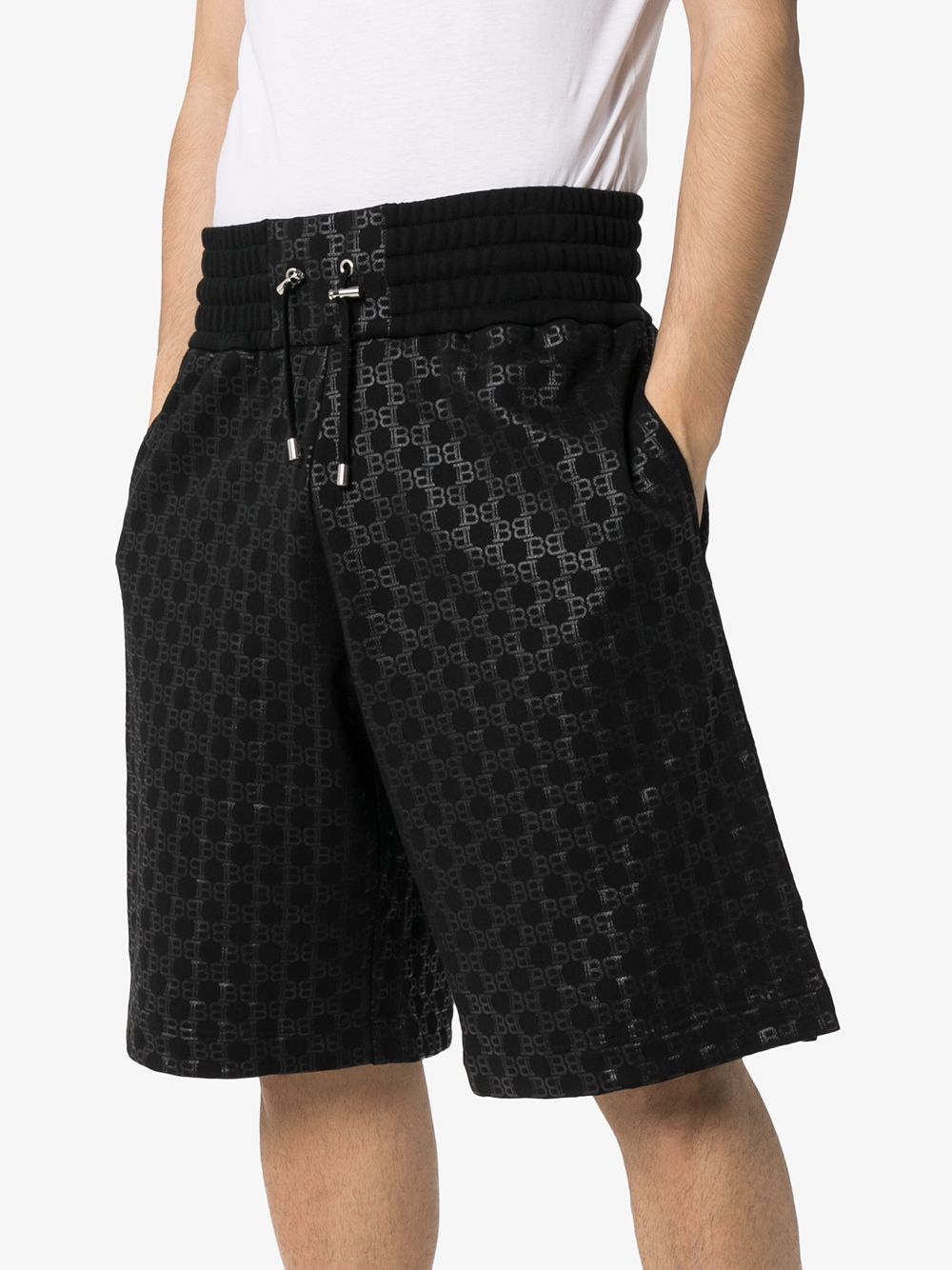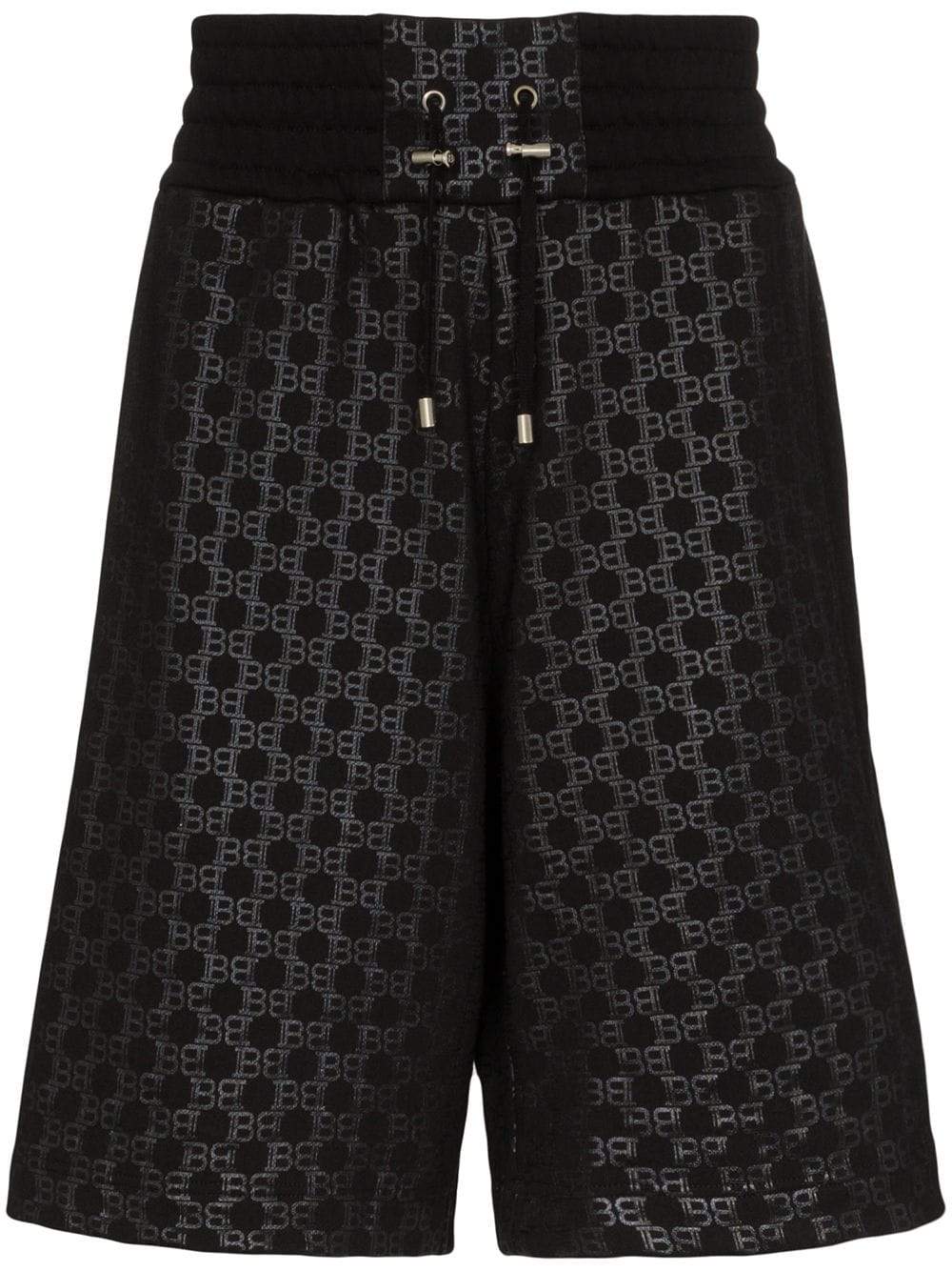 BALMAIN monogram jacquard track shorts black/black