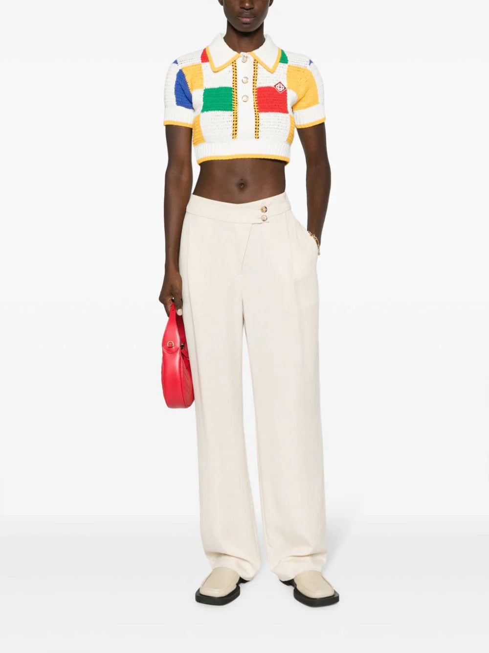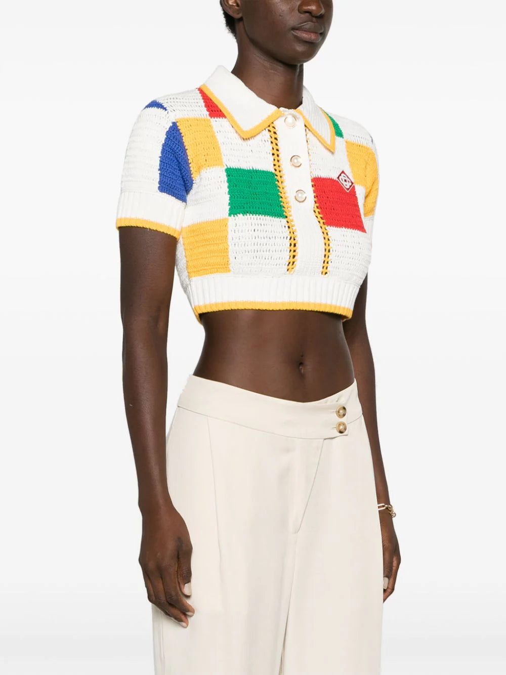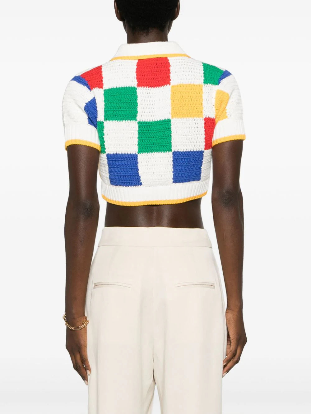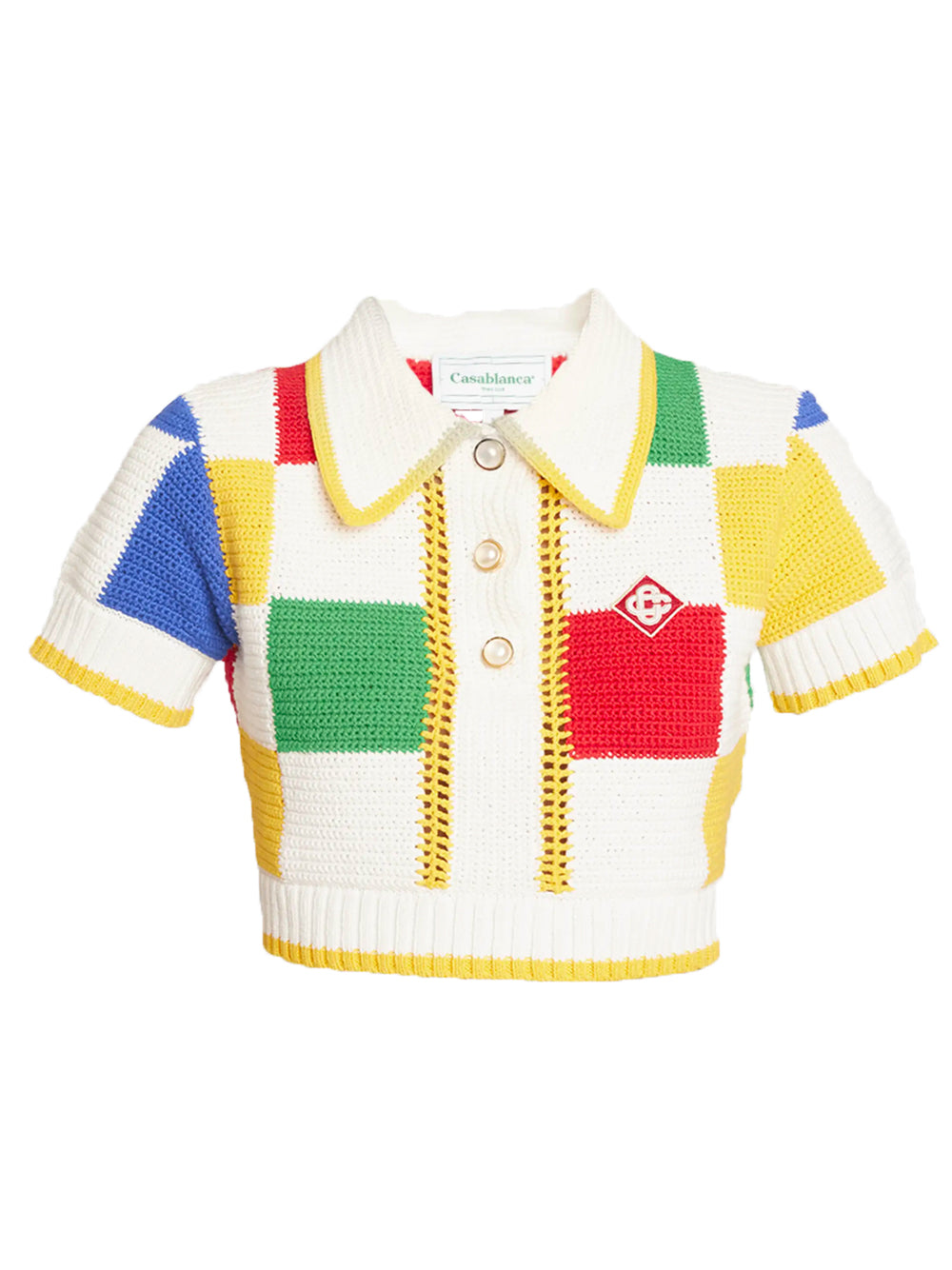 Casablanca spotlights its affinity for bold palettes with this cropped top. It's expertly crochet-knit from white cotton and decorated with a checkerboard pattern which is intensified by red, blue, green and yellow hues.
