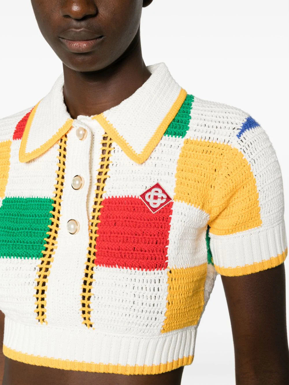 CASABLANCA WOMEN Scuba Square Crochet Polo White/Multicolour