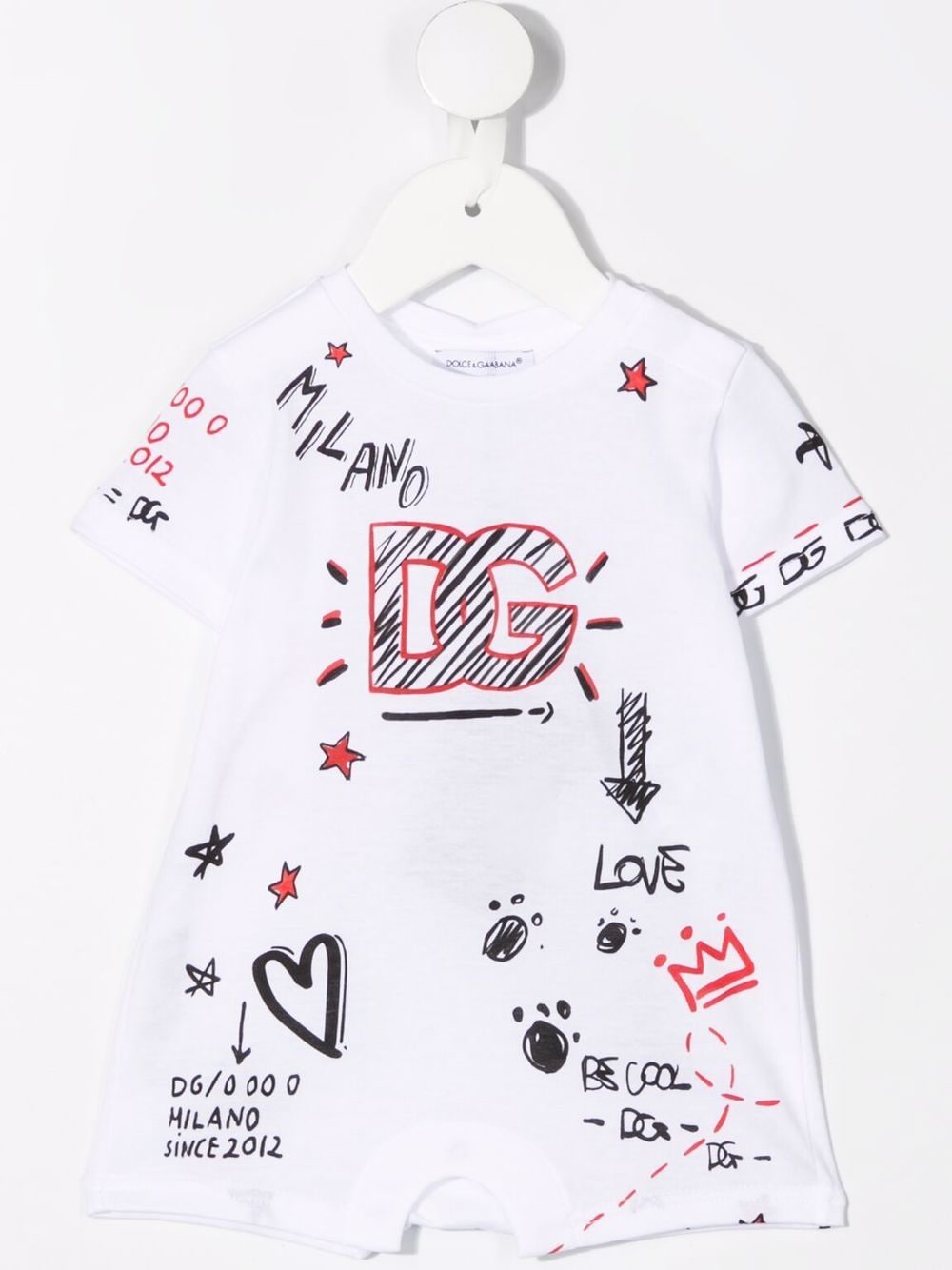 DOLCE & GABBANA BABY Graffiti Print Romper White
