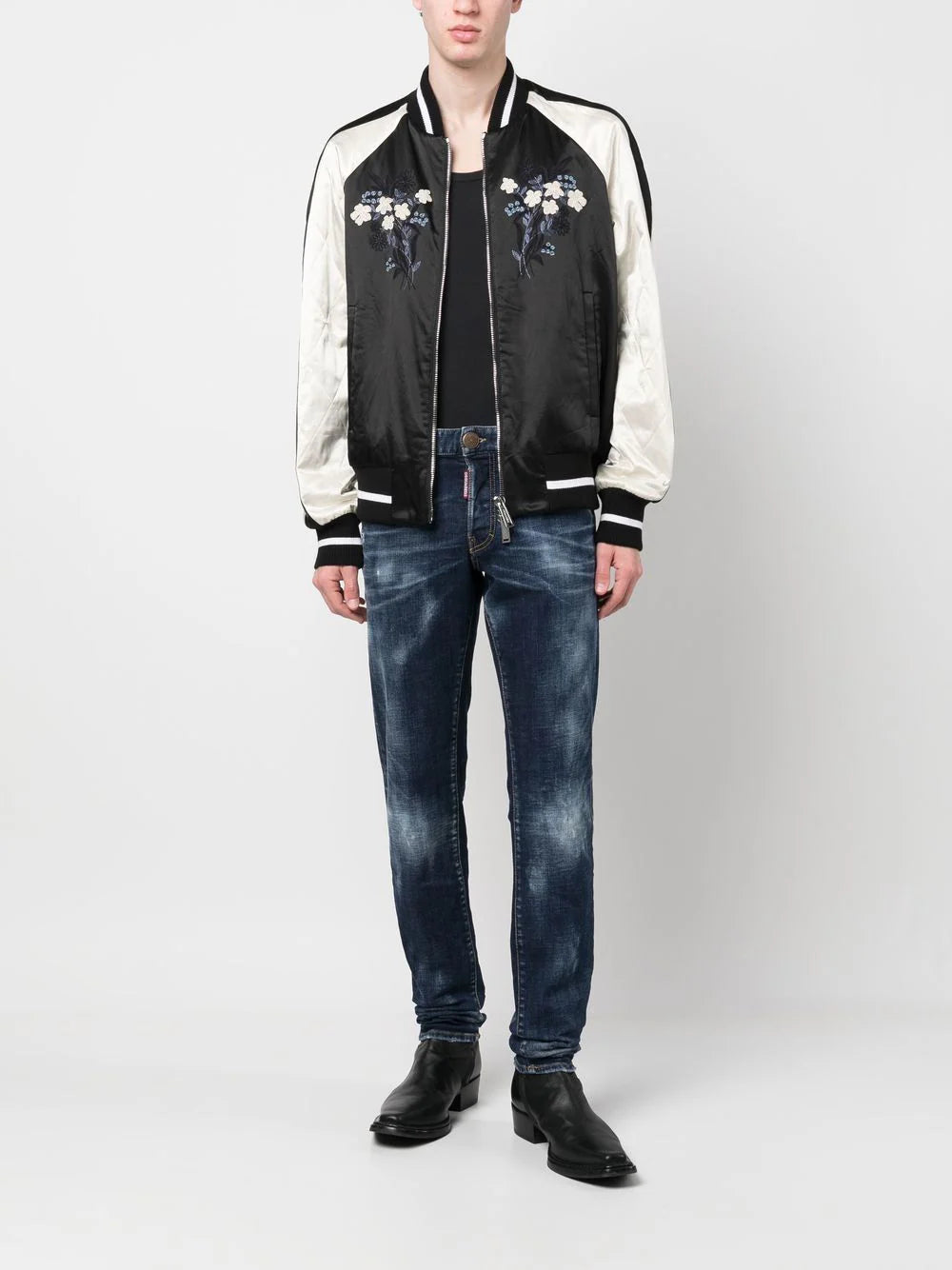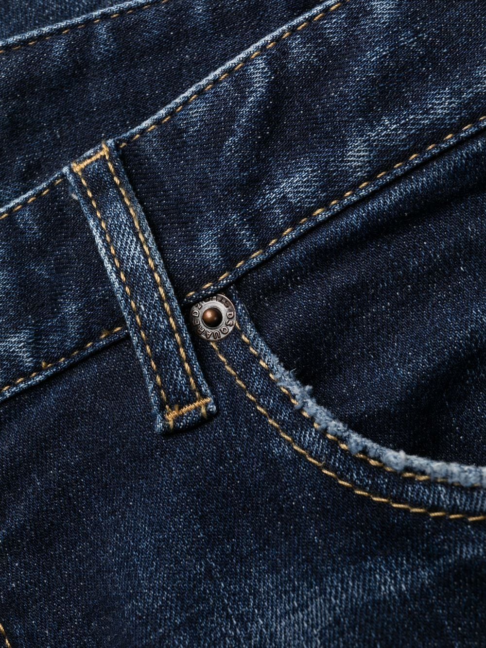 Punctuated with distressed accents throughout for a worn-in look, these indigo-hue jeans from Dsquared2 are cut for a slim cut and decorated with a flag patch at the rear - a nod to the brand's Canadian roots.