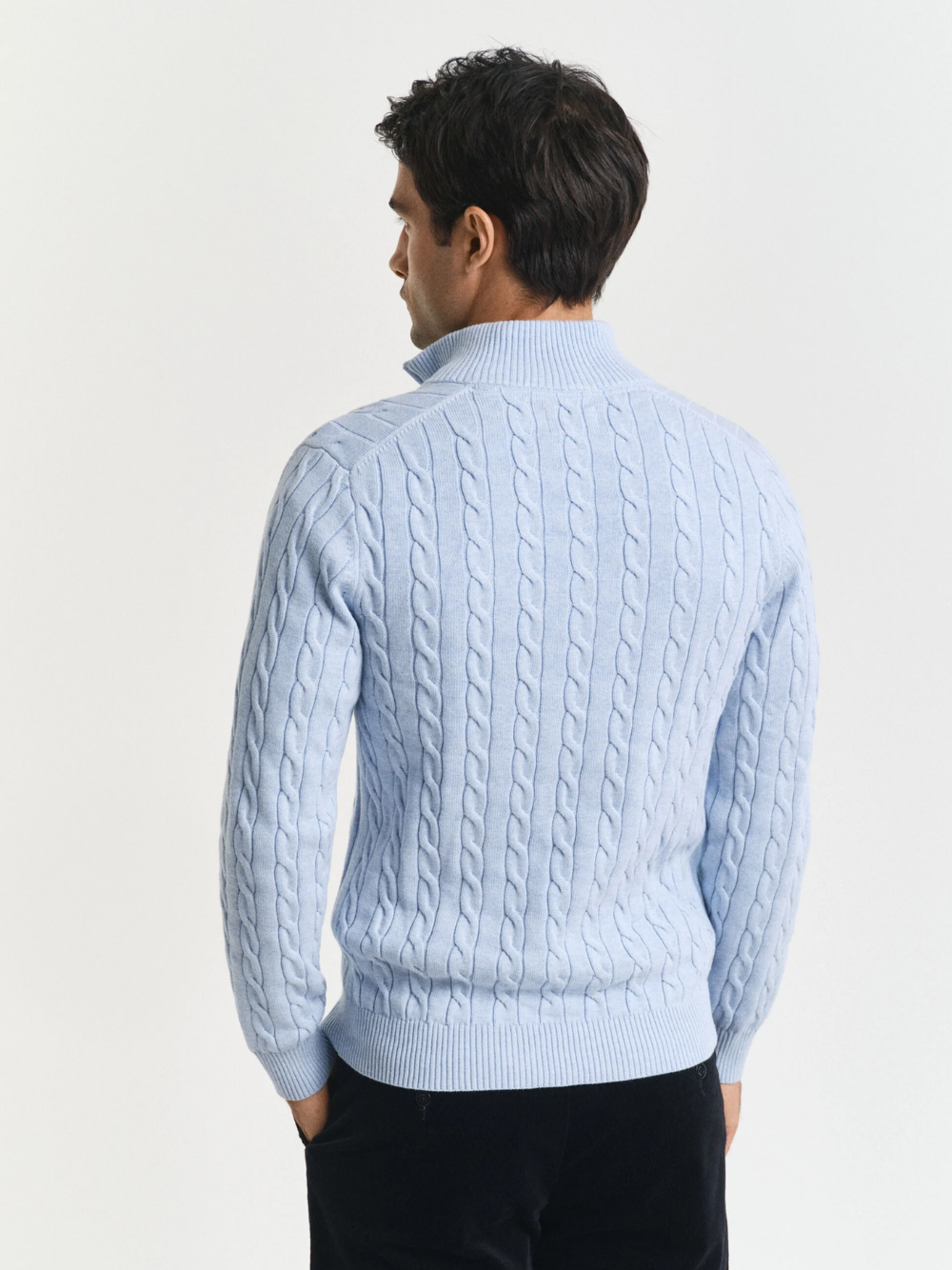 GANT Cotton Cable Knit Half-Zip Sweater Ice Blue Melange
