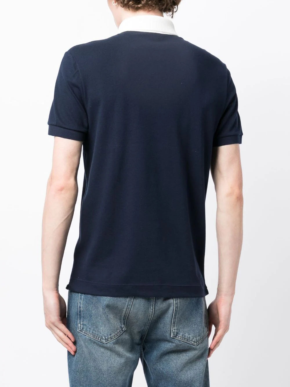 Smart Paris Organic Cotton Piqué Logo Patch Polo Shirt Navy Blue Flour