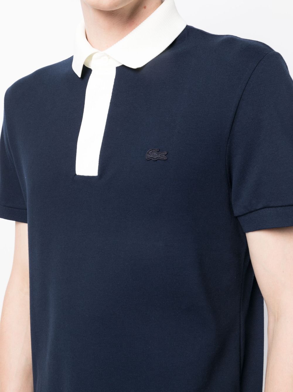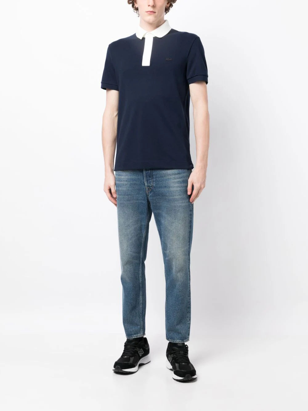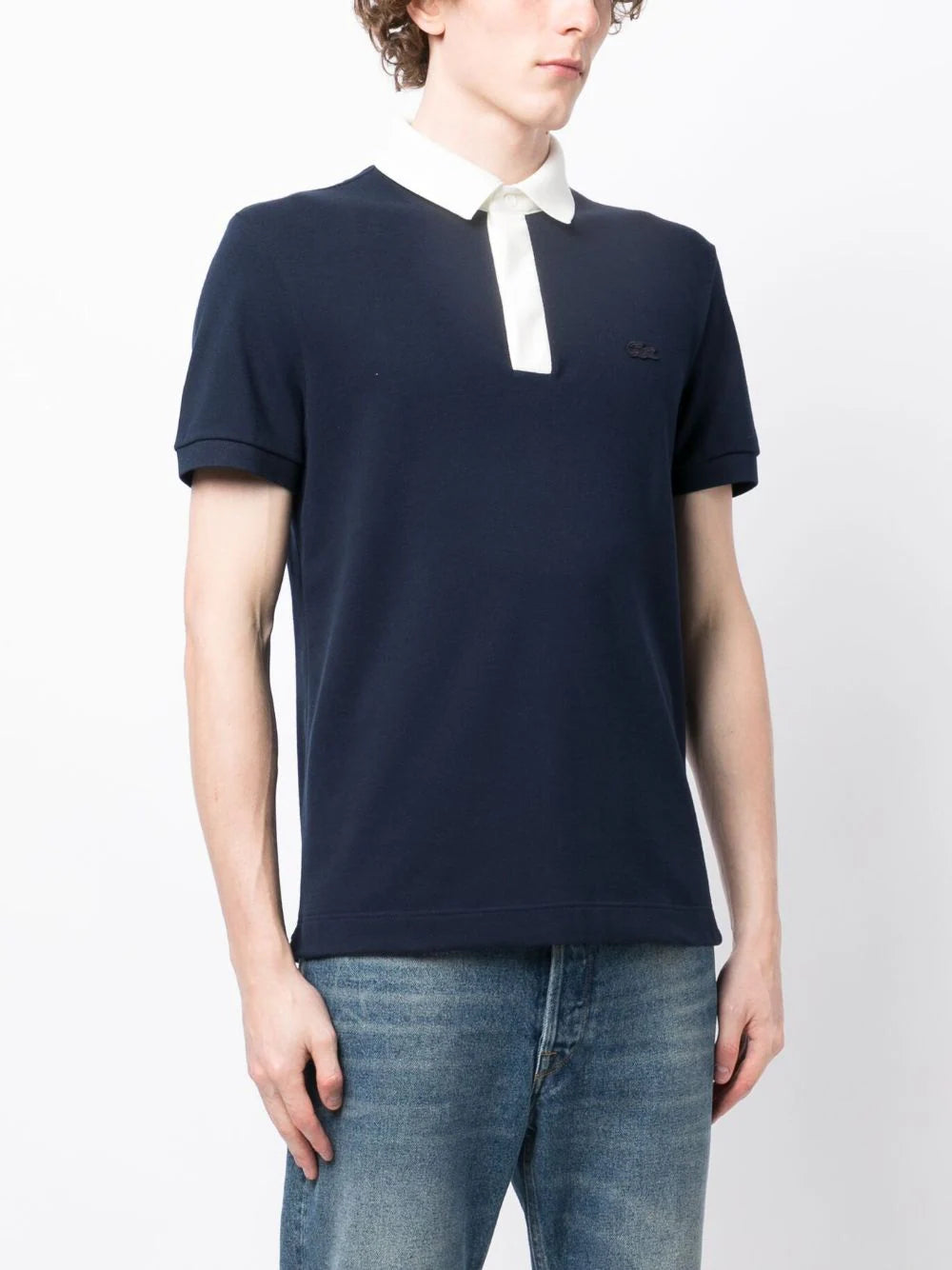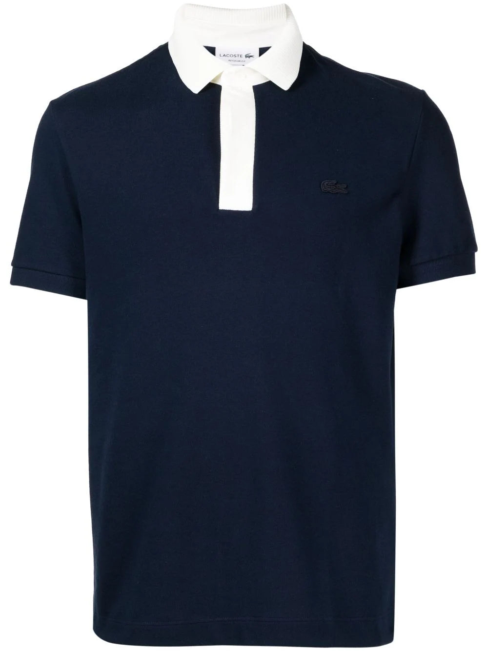 LACOSTE Smart Paris Organic Cotton Piqué Logo Patch Polo Shirt Navy Blue Flour