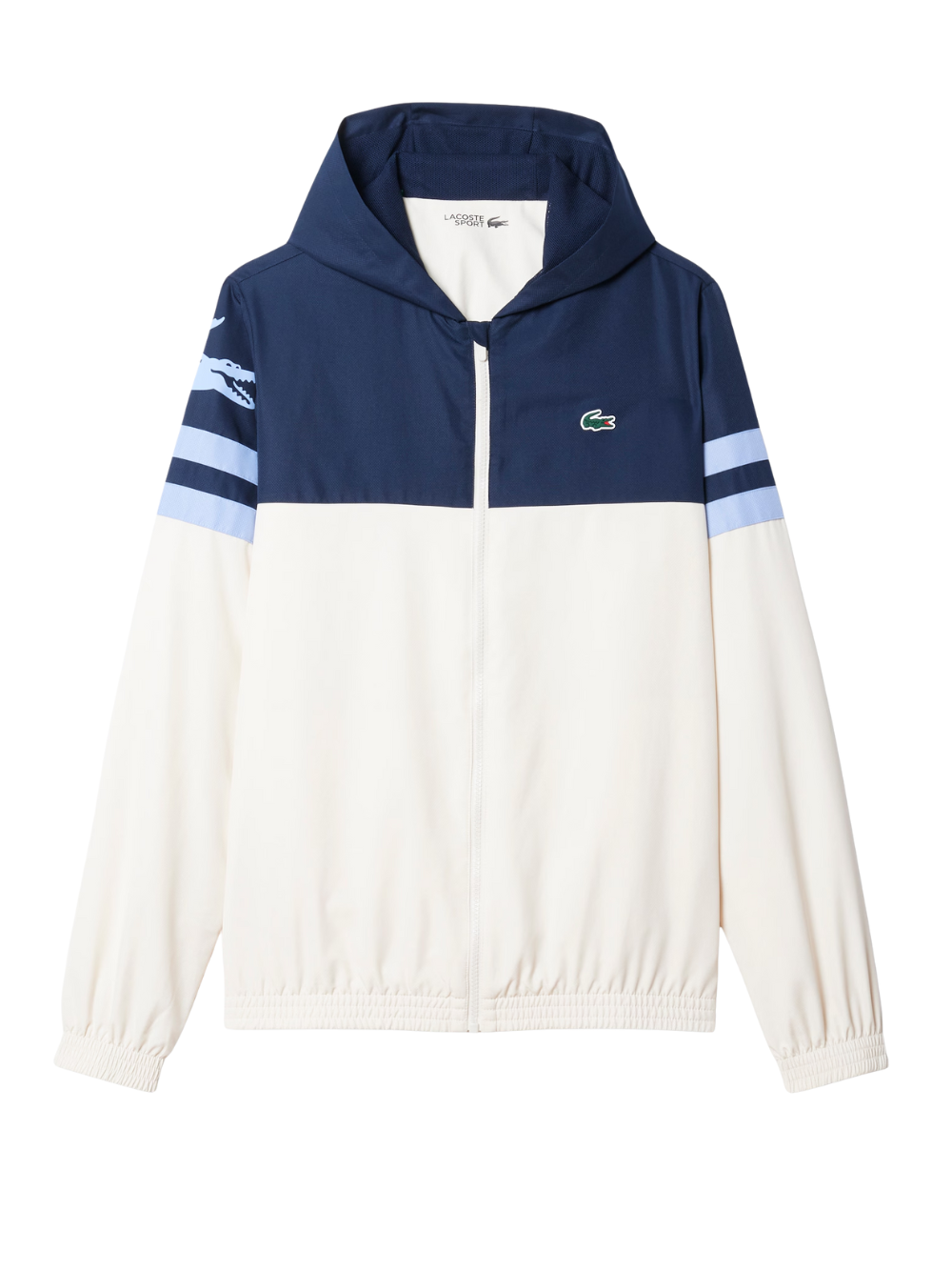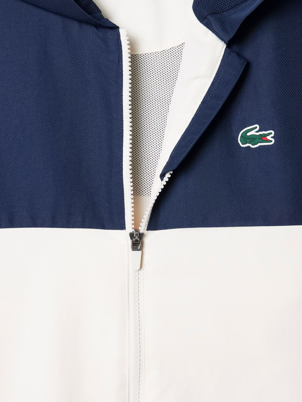 LACOSTE Tennis Water-Repellent Hooded Jacket White/Purple/Navy