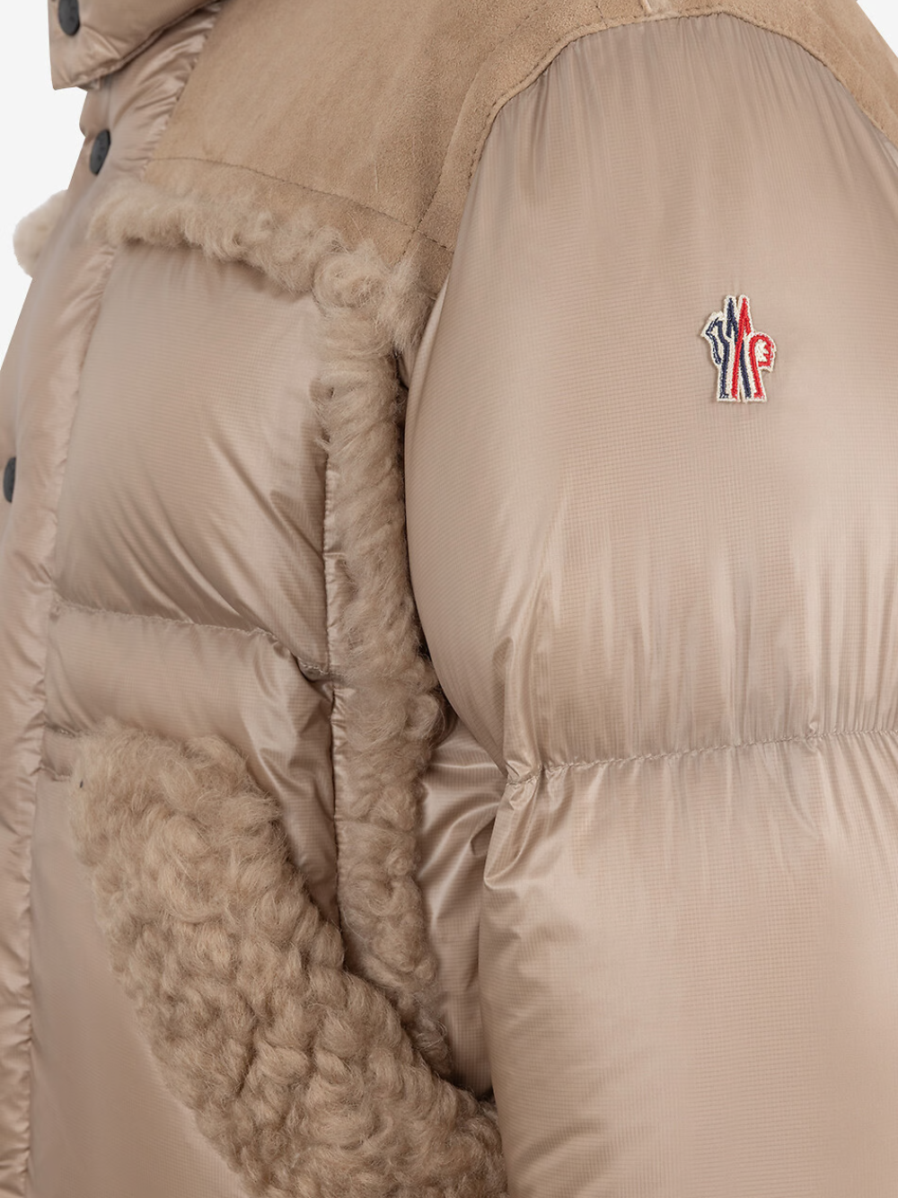 Why choose between function and style on the slopes and beyond, when you can have both? Treat yourself to this down jacket by MONCLER GRENOBLE from the Après-Ski collection. Made from nylon ripstop, it is elevated by parts in suede and curly shearling. The quilted jacket is padded with down.