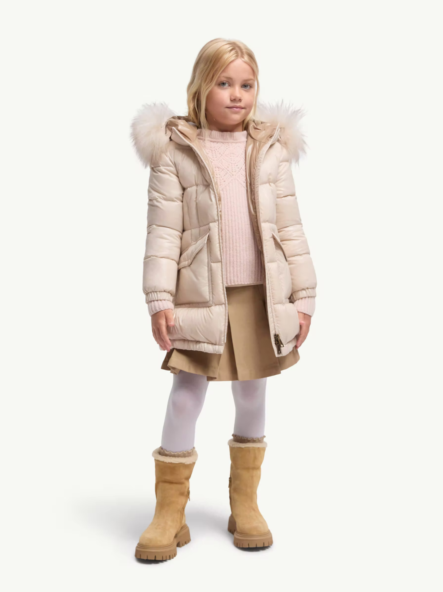 MONCLER KIDS Girls Aruna Shearling-Trimmed Hooded Down Jacket Light Beige