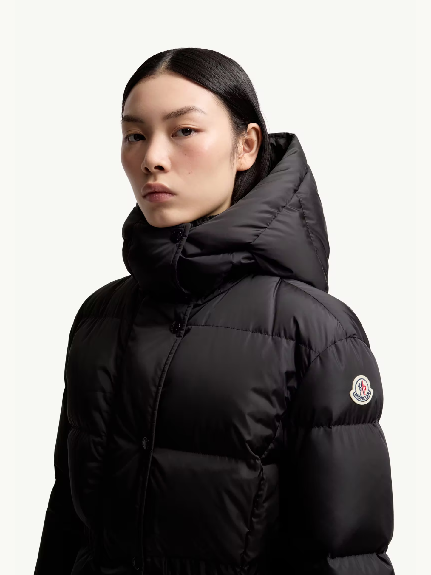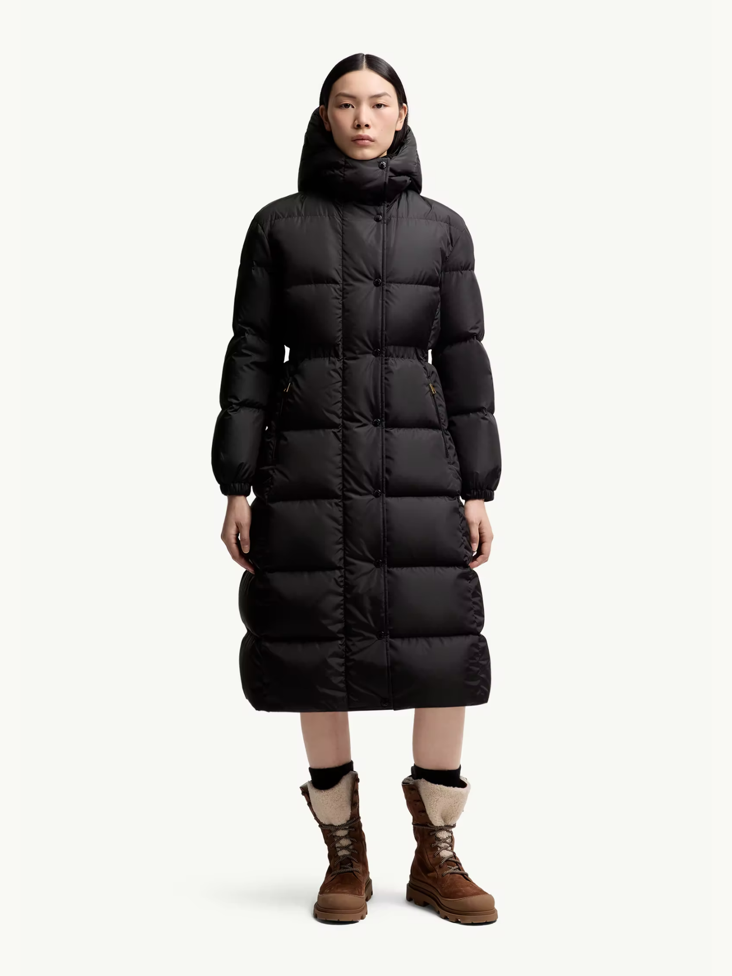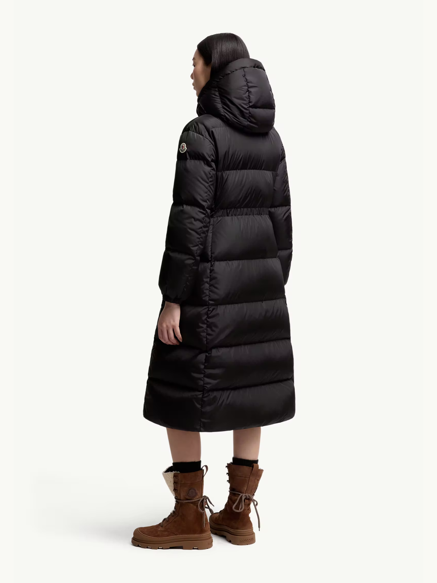 MONCLER WOMEN Chamer Wool-Trimmed Hooded Long Down Jacket Black