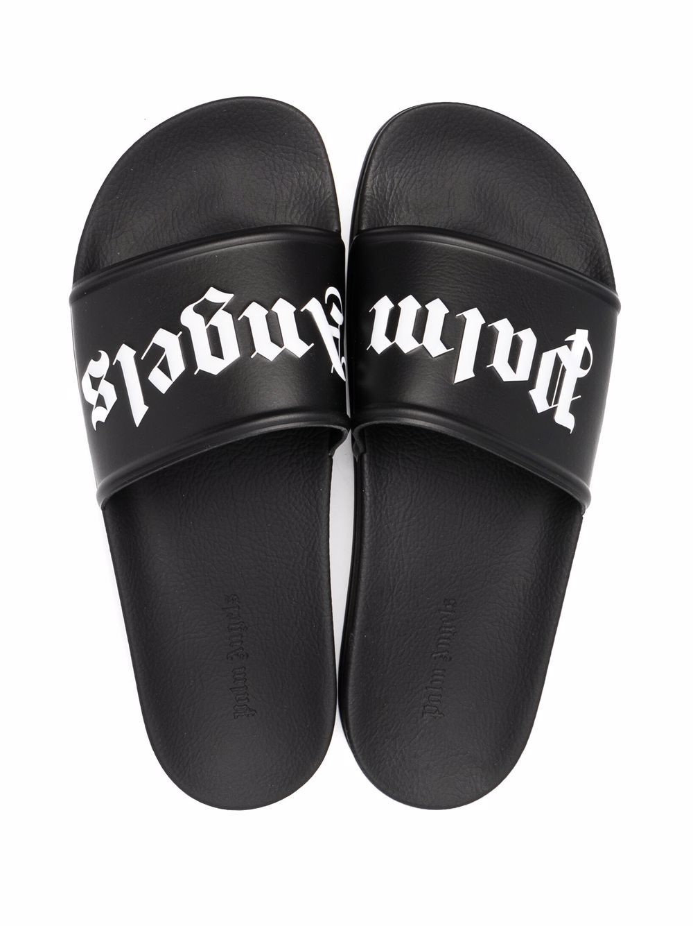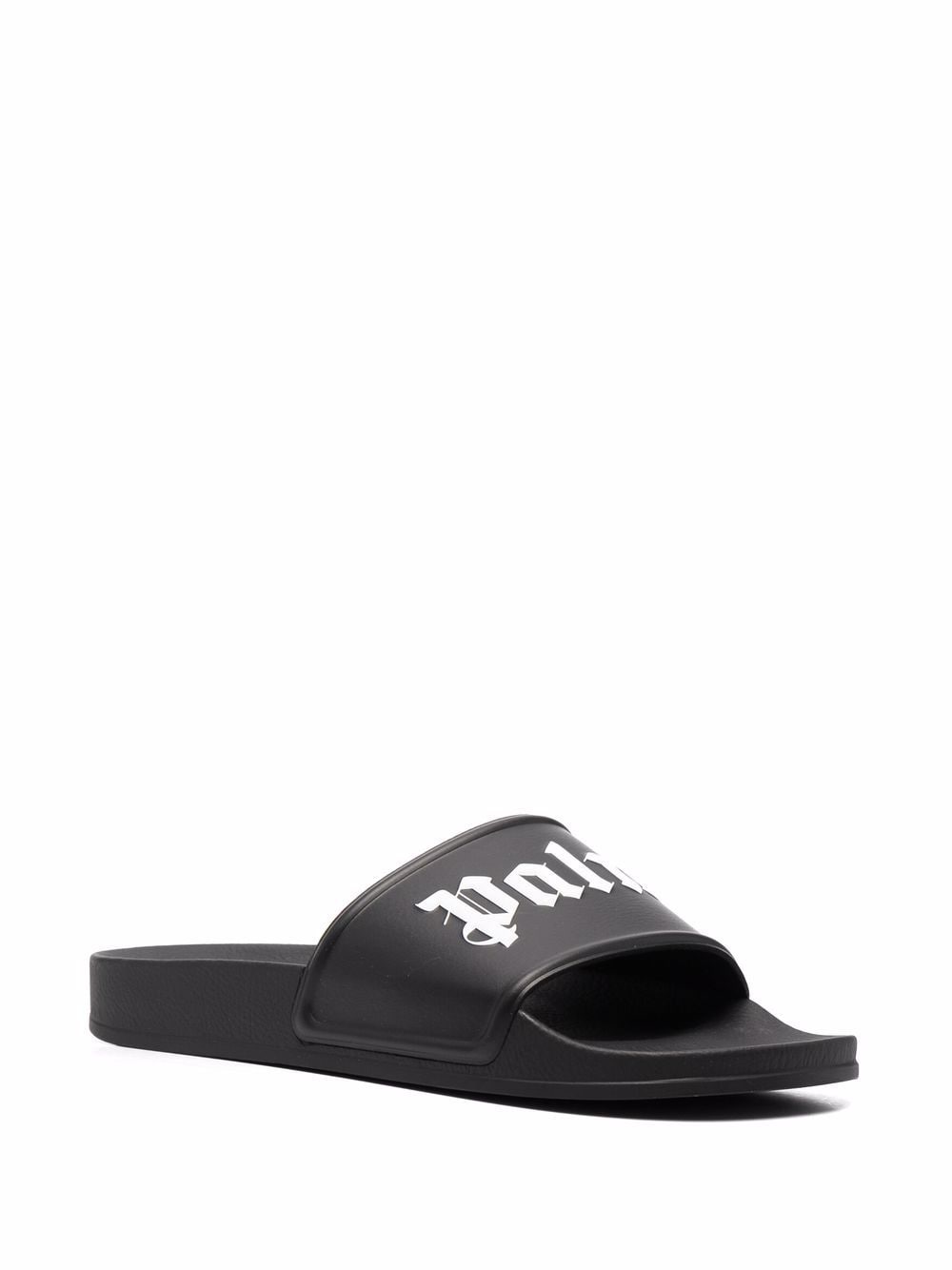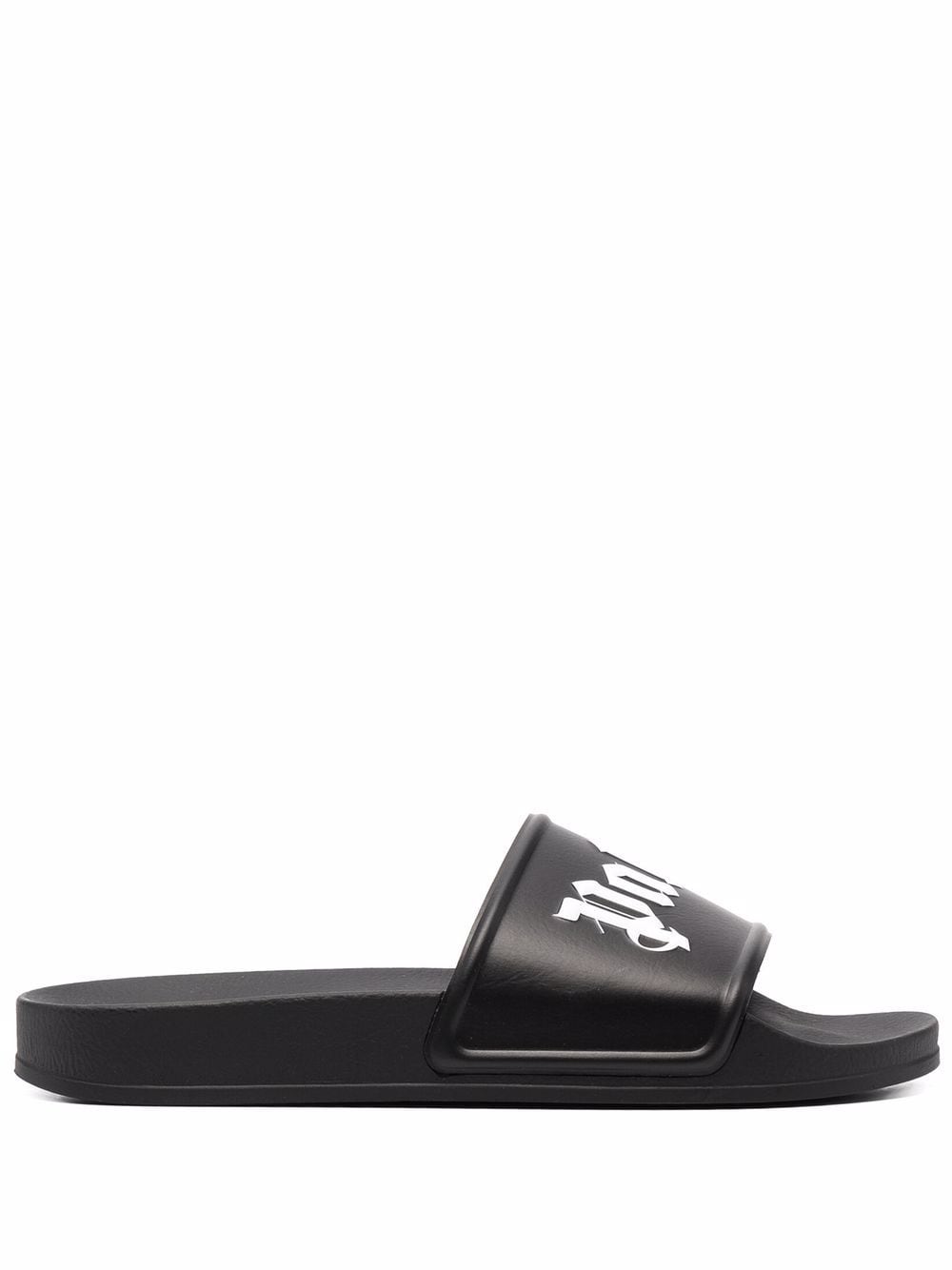 Inspired by the LA streetwear scene, Palm Angels casual wear is California beach-style with an edge. These slides embody that ethos with their classic open-toe, slip-on silhouette and gothic logo lettering in stark black and white.
