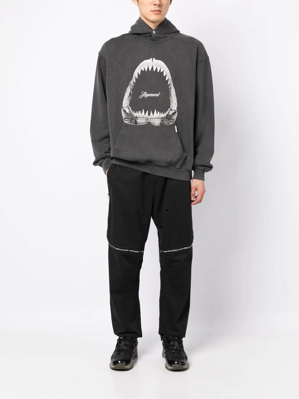 REPRESENT Shark Jaws Hoodie Vintage Grey