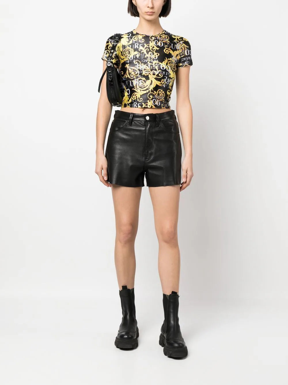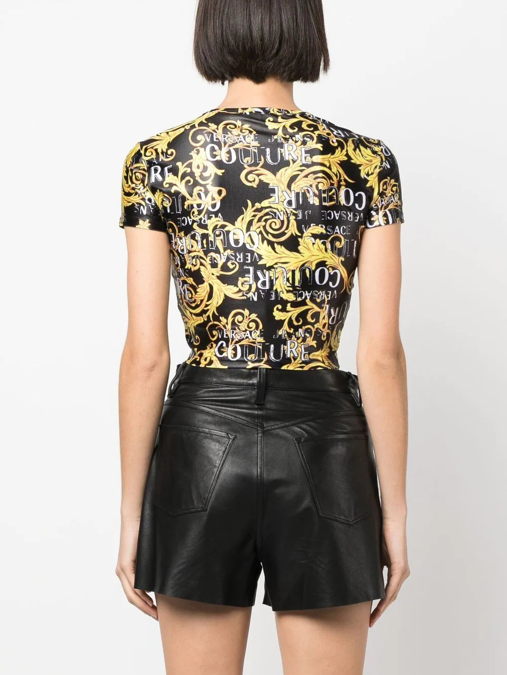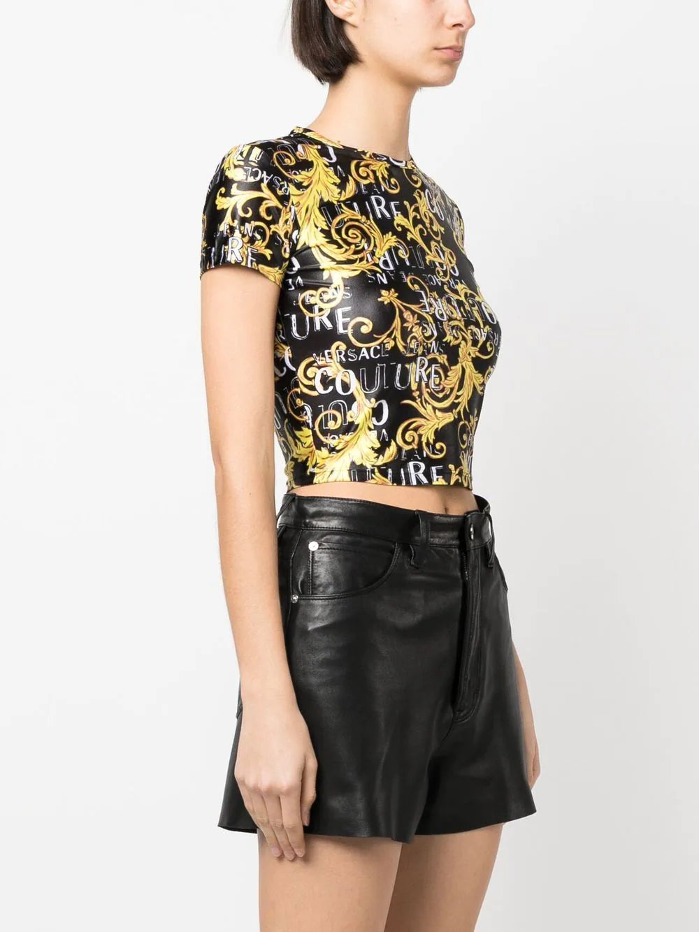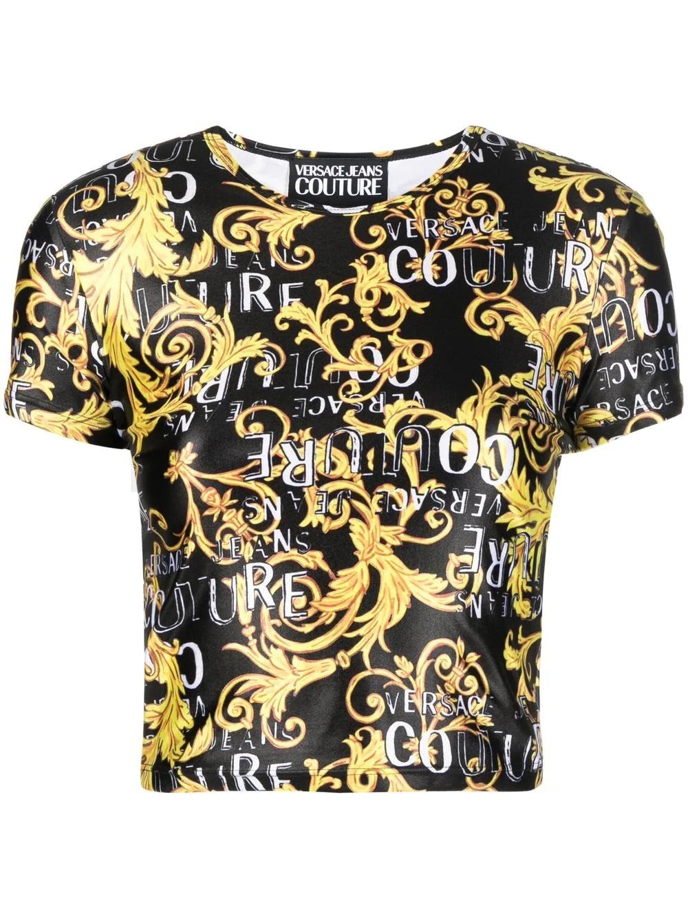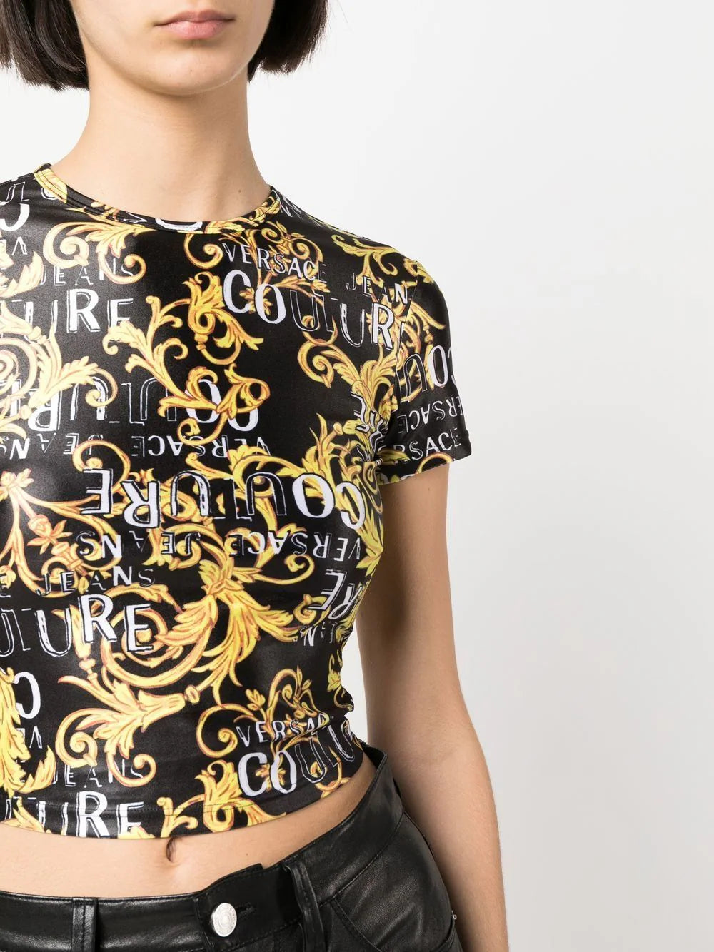 VERSACE WOMEN Baroque Print Cropped T-Shirt Black/Gold
