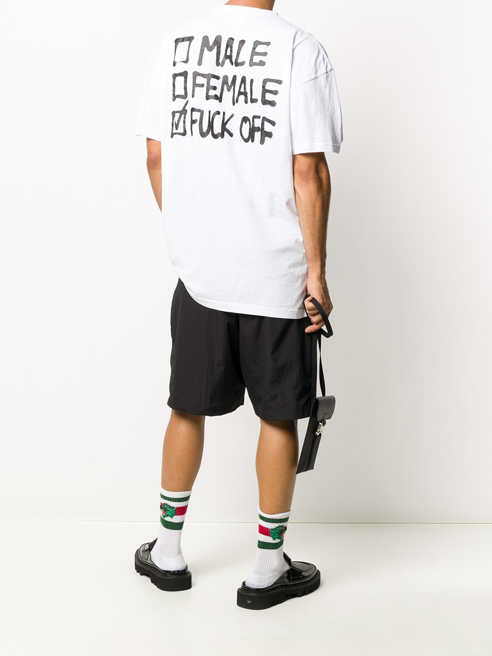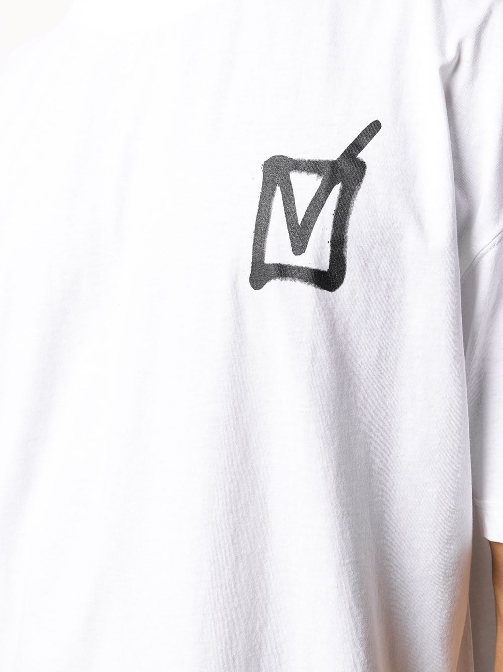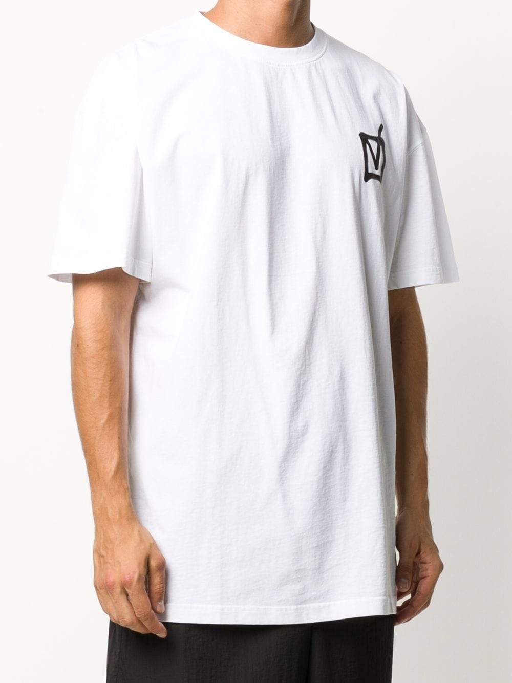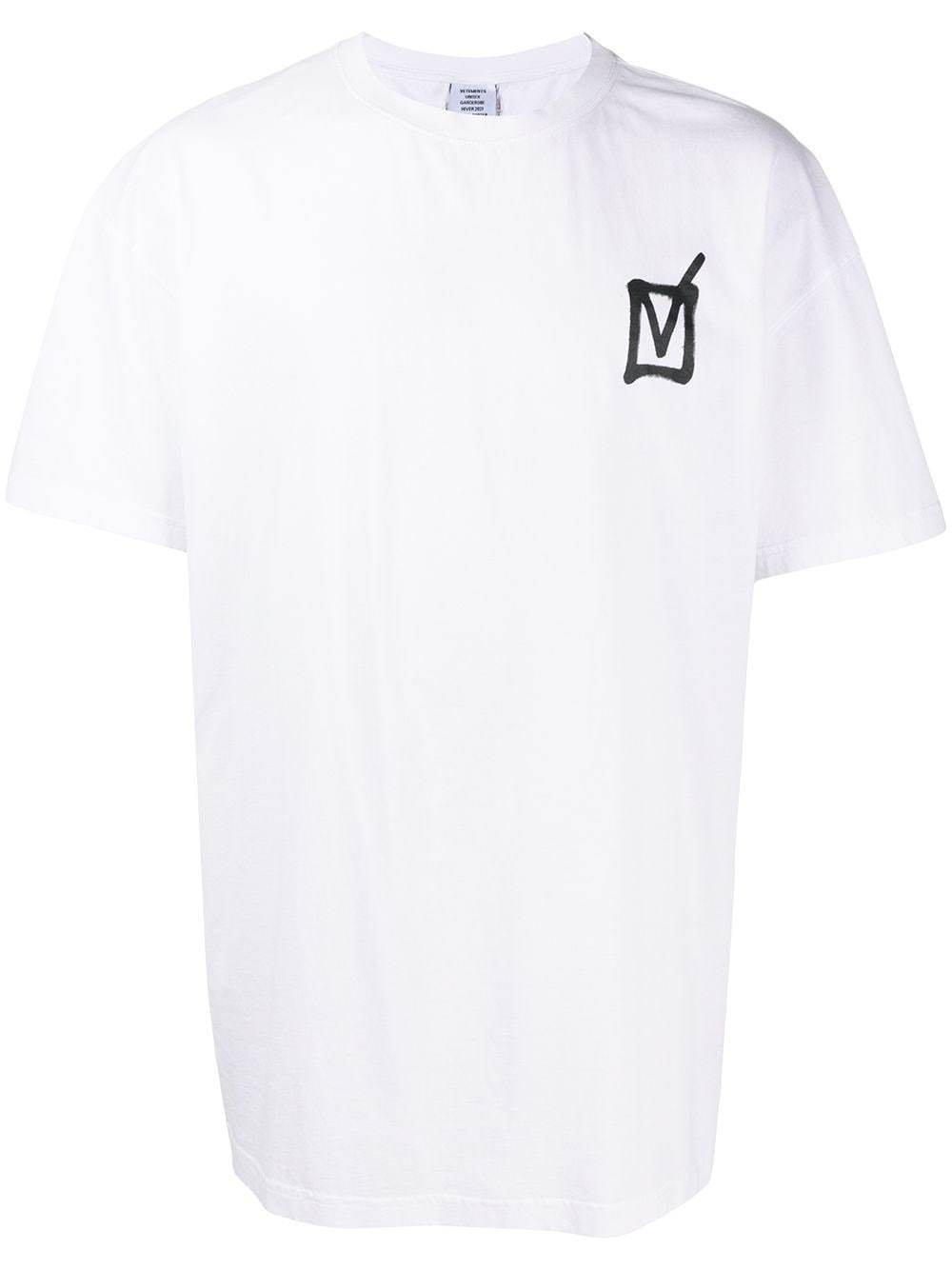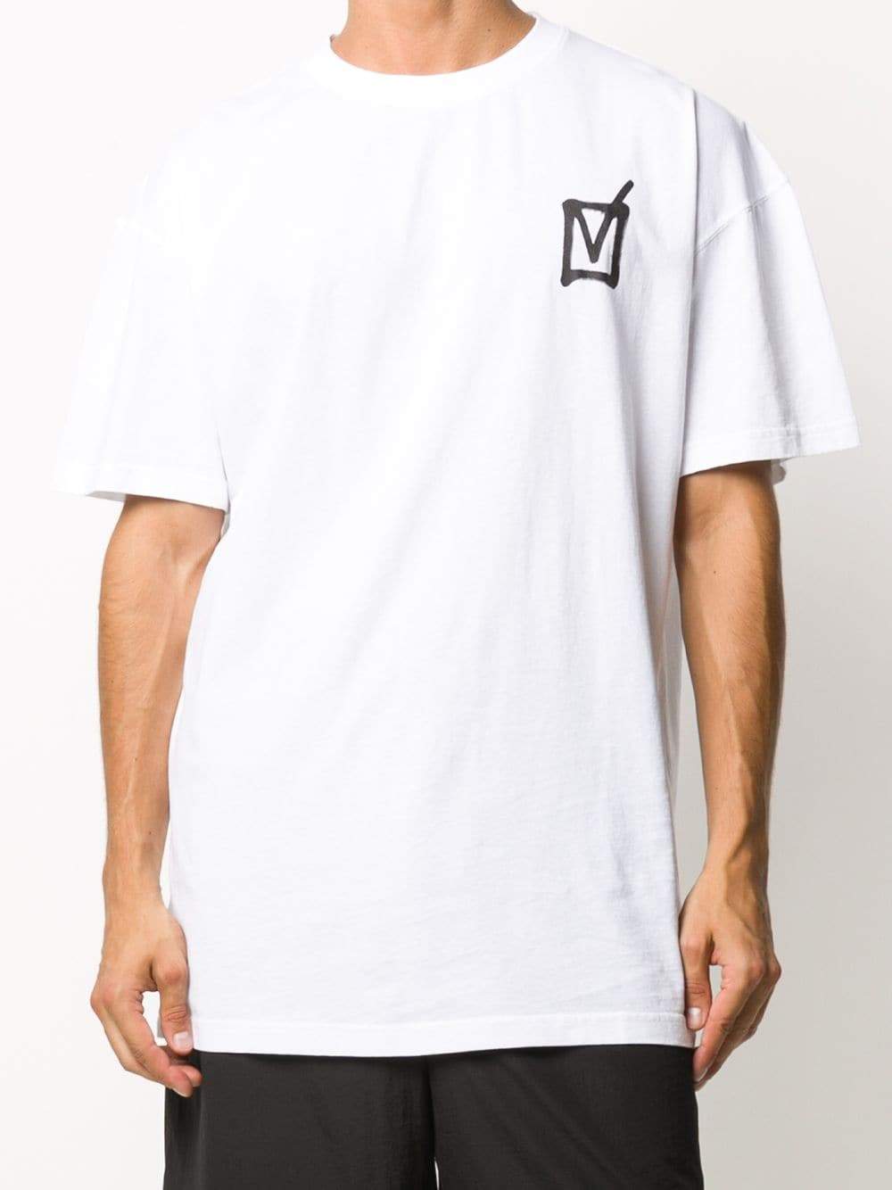 White cotton crew neck logo T-shirt from Vetements featuring a crew neck, short sleeves, a printed logo and a relaxed fit.