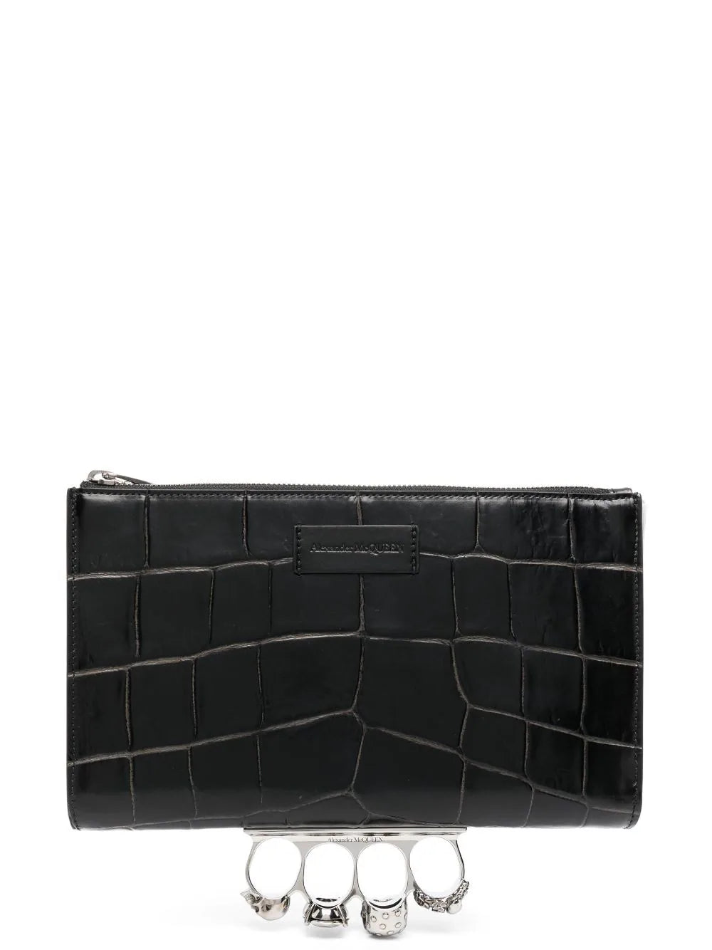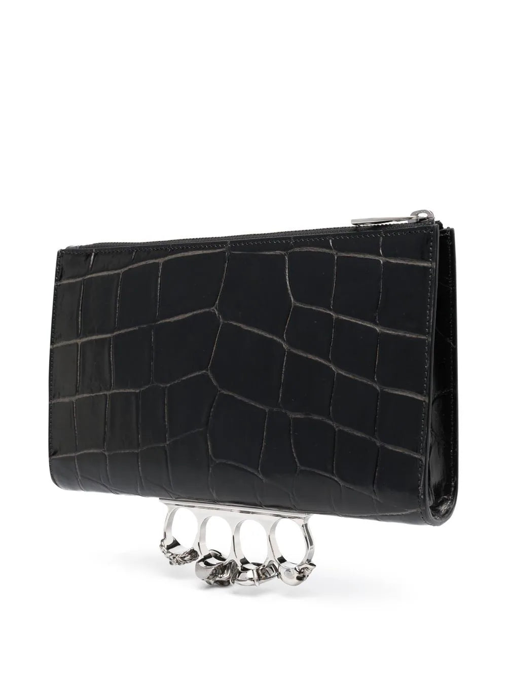 ALEXANDER MCQUEEN Four Ring Croc Effect Clutch Bag Black/Silver