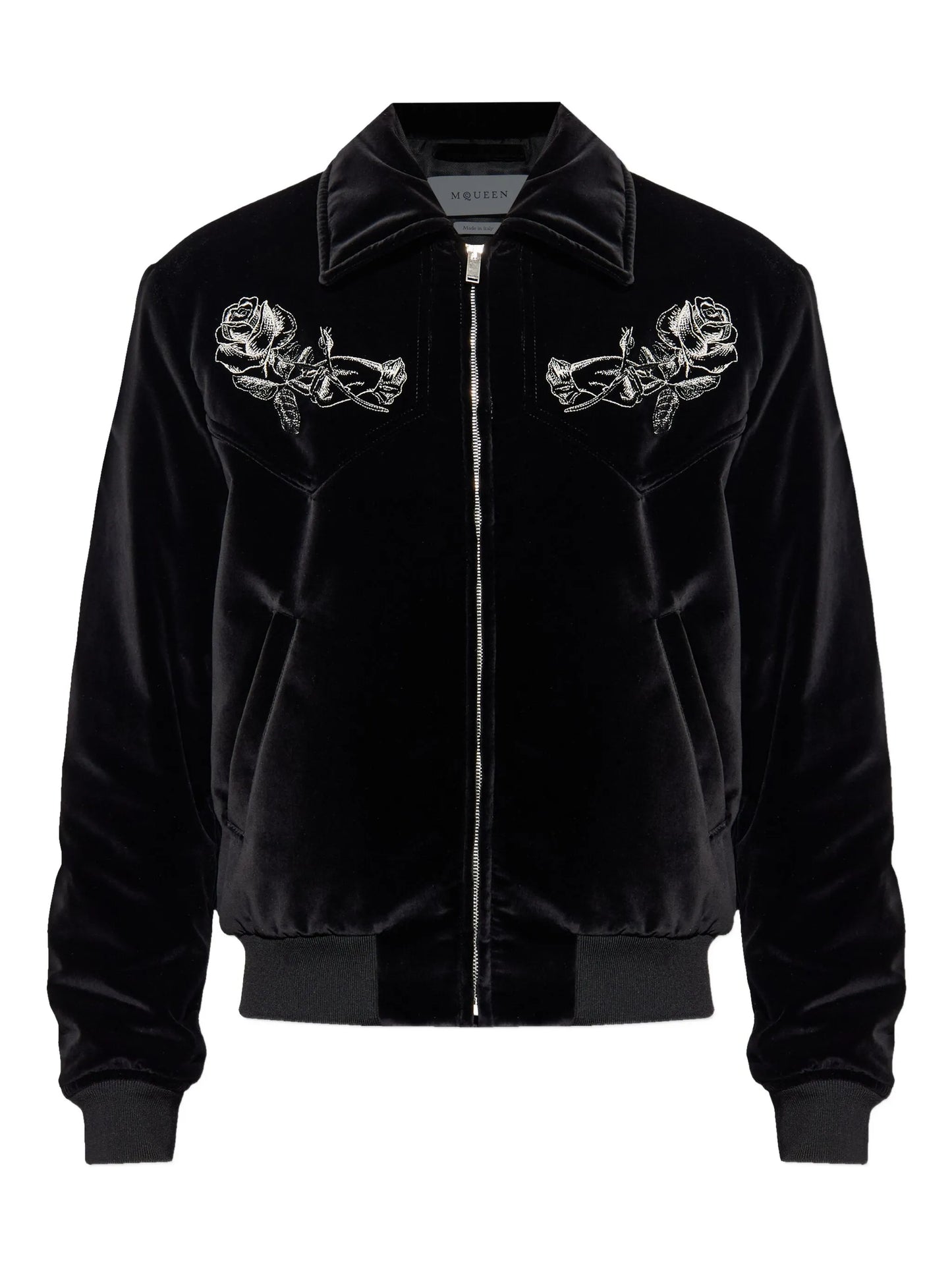 ALEXANDER MCQUEEN Rose-embroidered Velvet Jacket Black