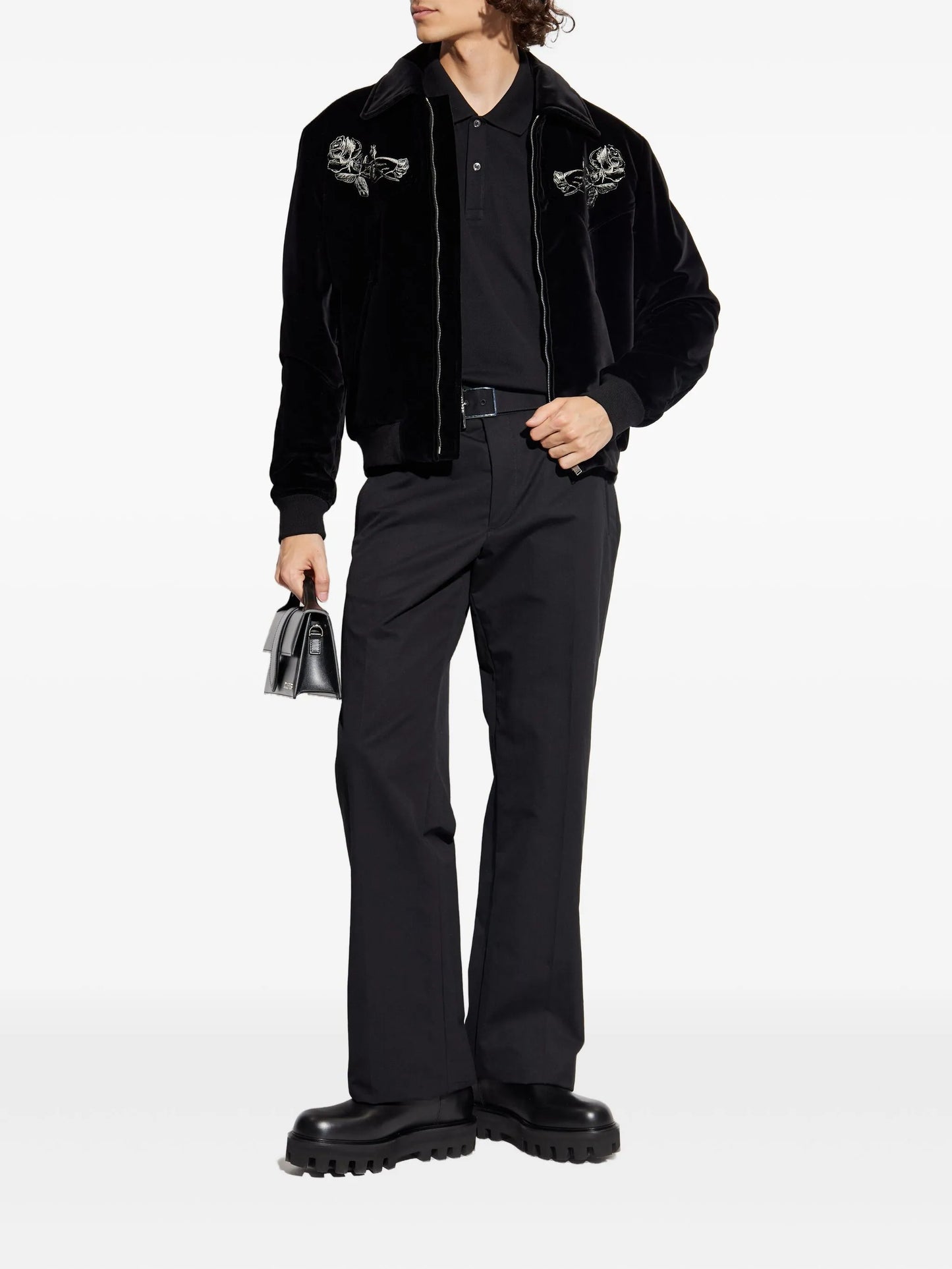 Rose-embroidered Velvet Jacket