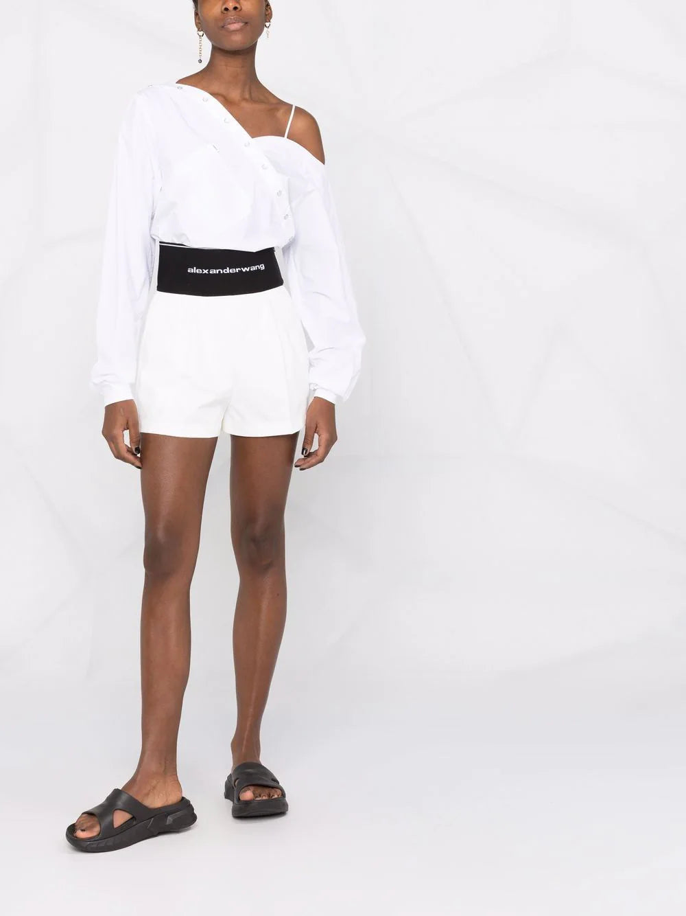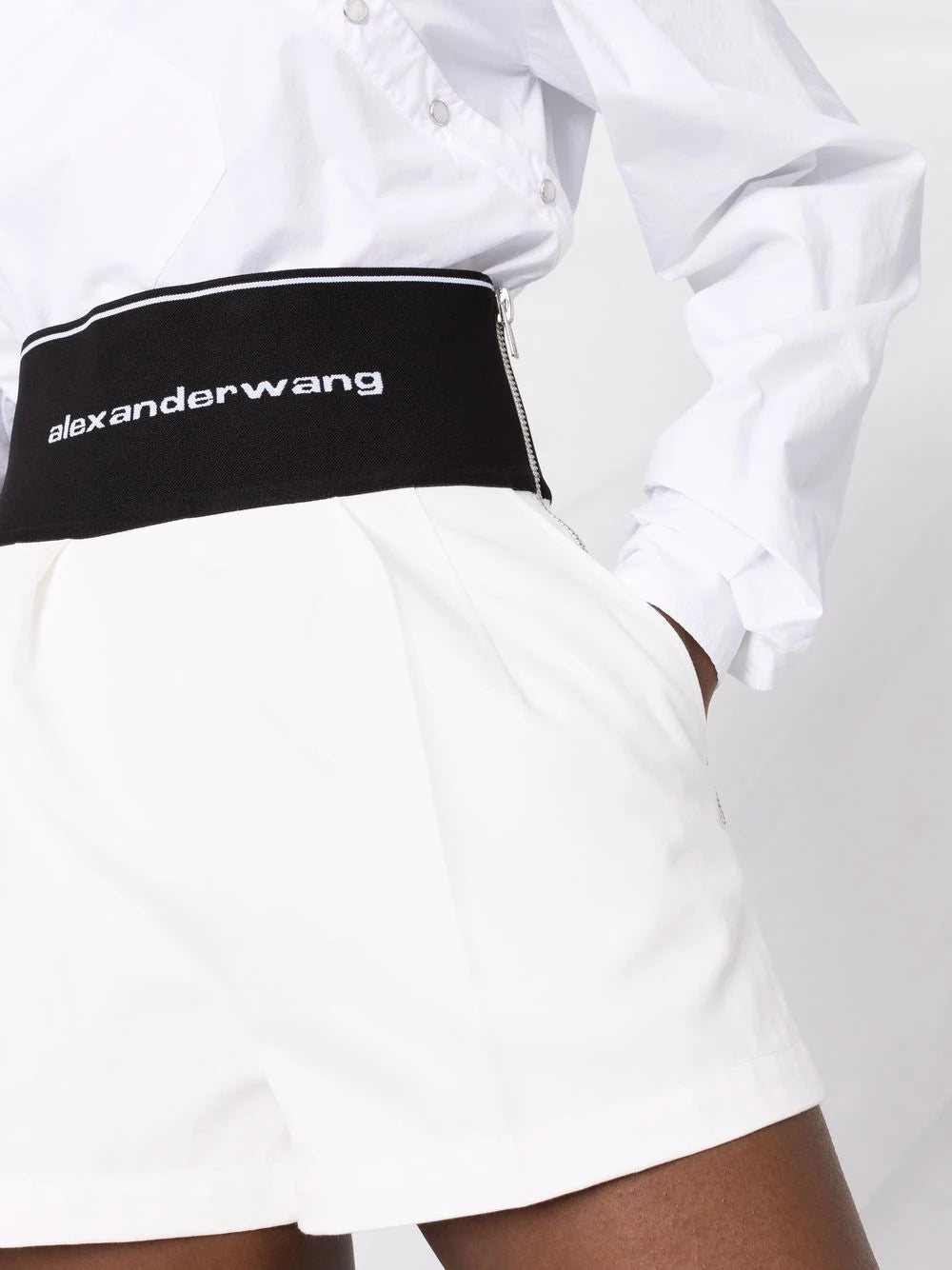 A bold logo waistband takes the focus on these shorts, adding a contemporary touch to the pleated pair, whilst speaking to Alexander Wang's signature effortless style.