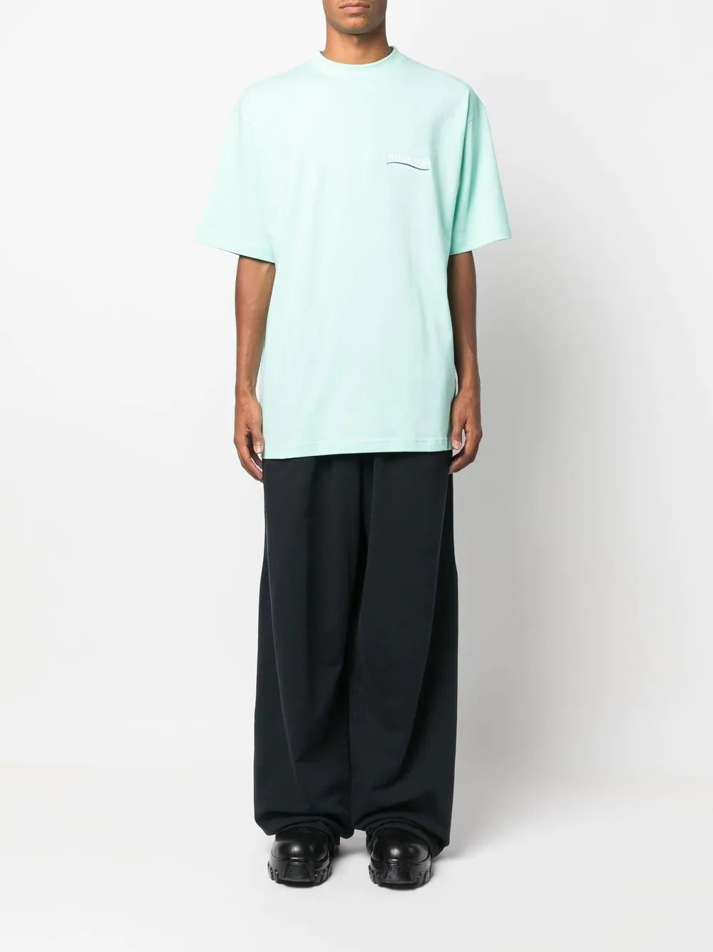 BALENCIAGA Political Logo Oversized T-Shirt Mint Blue