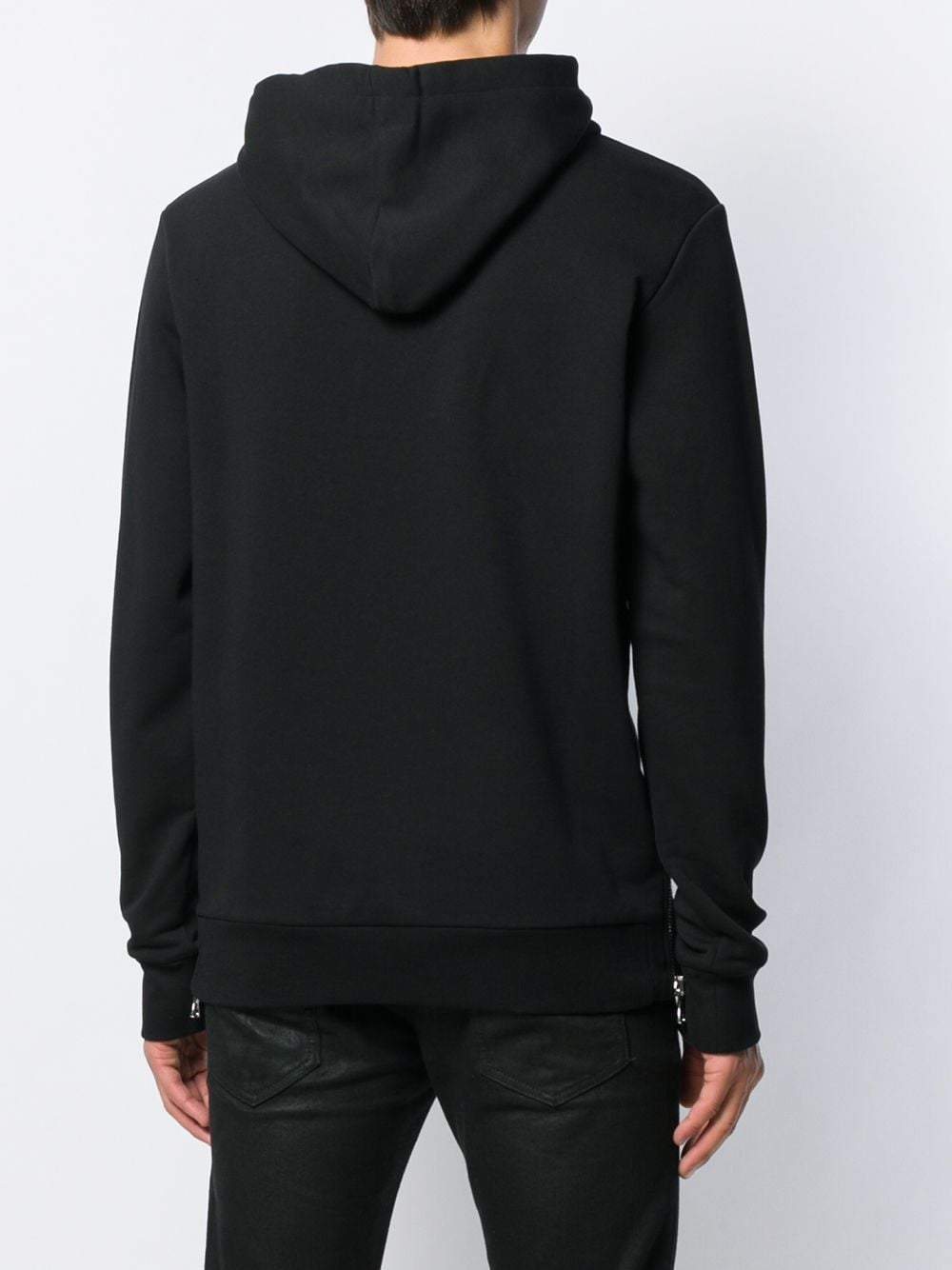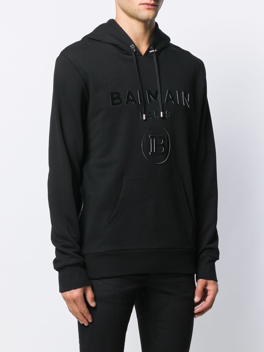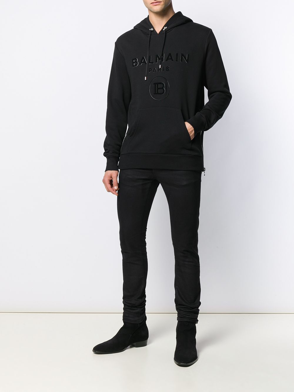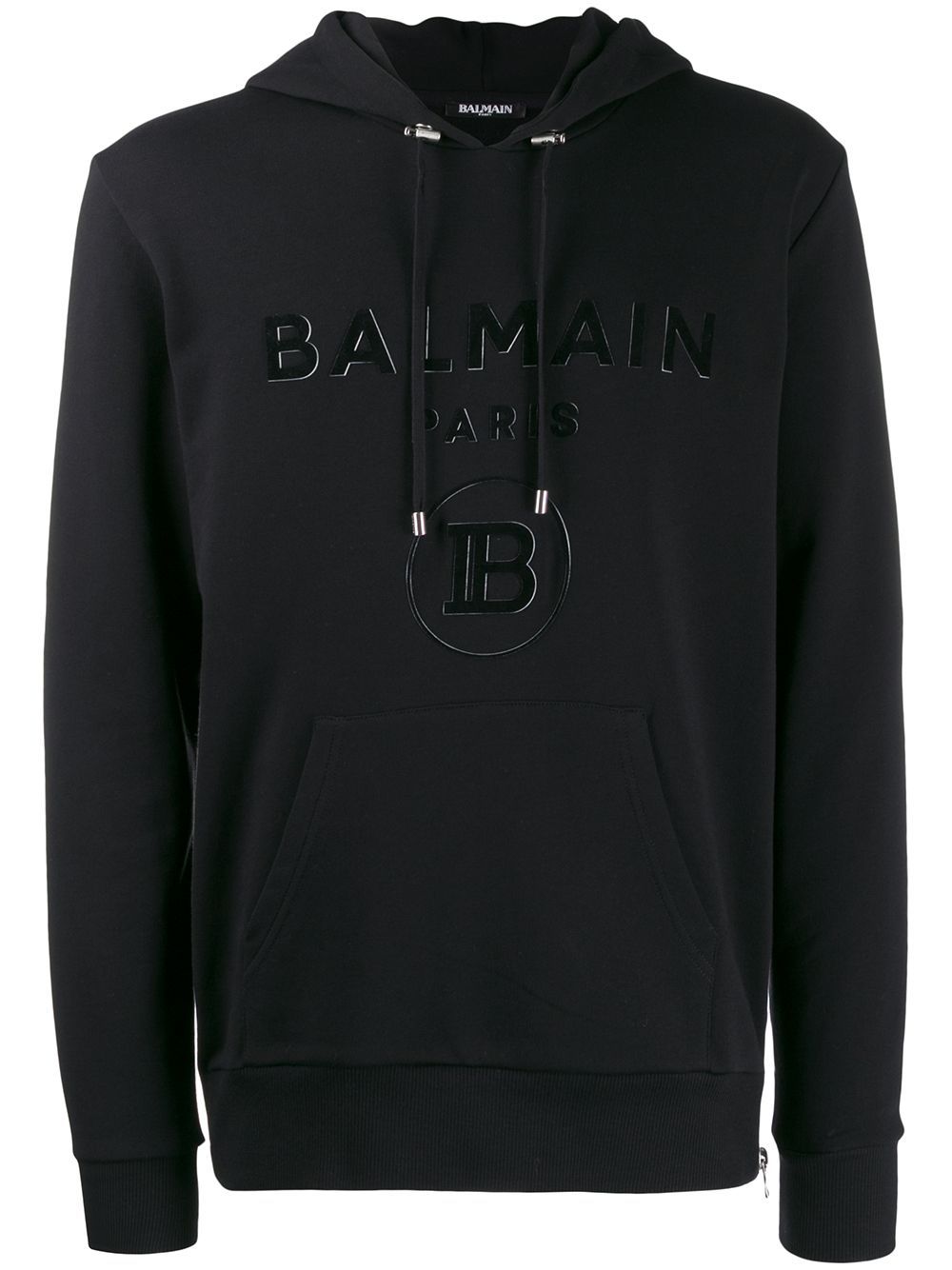 Premium materials, expert Parisian craftsmanship and wearable yet elegant colour schemes merge to form Balmain’s reputable luxurious aesthetic. Expect casual, sports-inspired silhouettes like this velvet logo hoodie. Crafted from black cotton, it features a hood with drawstring tie fastenings, long sleeves, a textured logo to the front, a side zip detail and a relaxed fit.