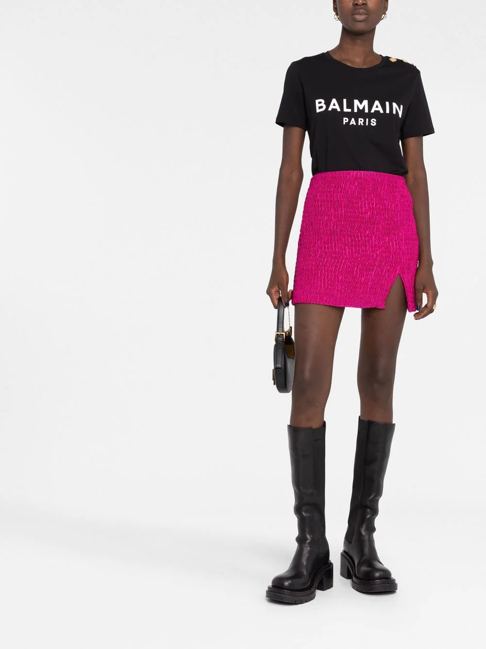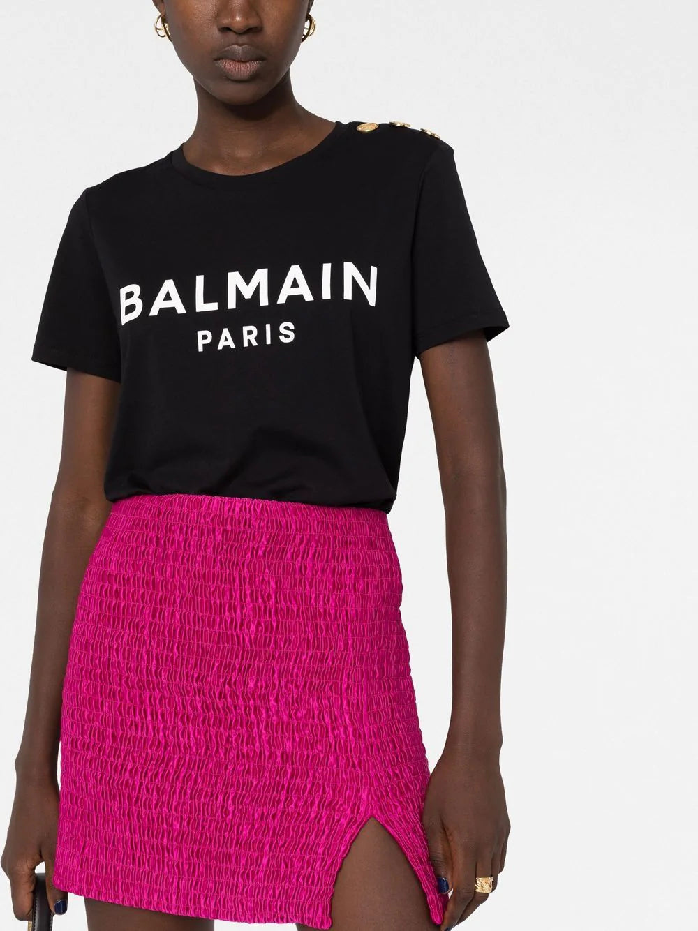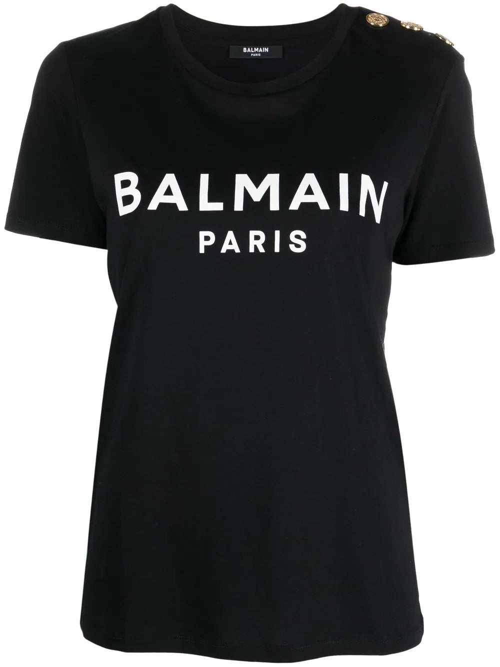 BALMAIN WOMEN Button-embellished Logo T-shirt Black