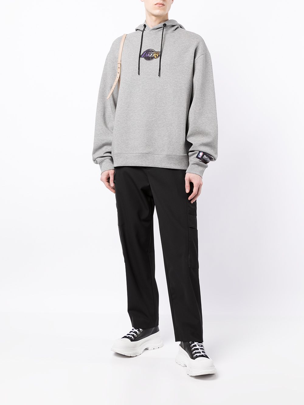 BOSS X NBA Lakers logo-print pullover hoodie Grey