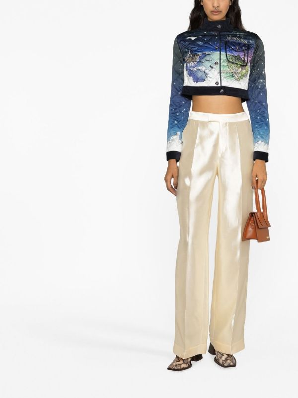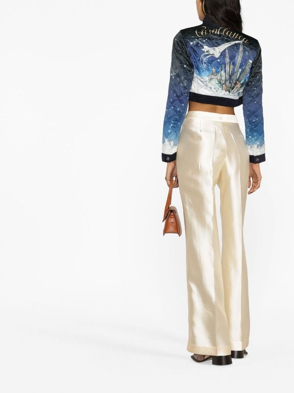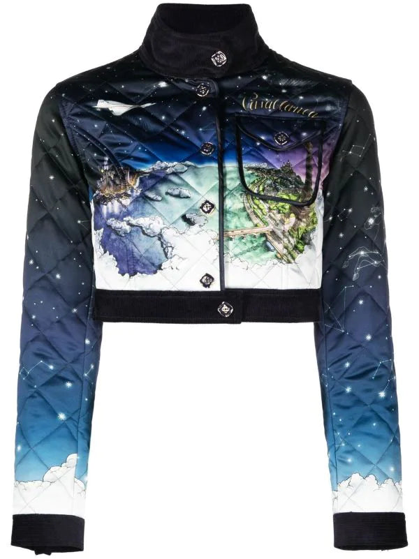 CASABLANCA WOMEN Illustration-print Quilted Cropped Jacket Blue Multicolour