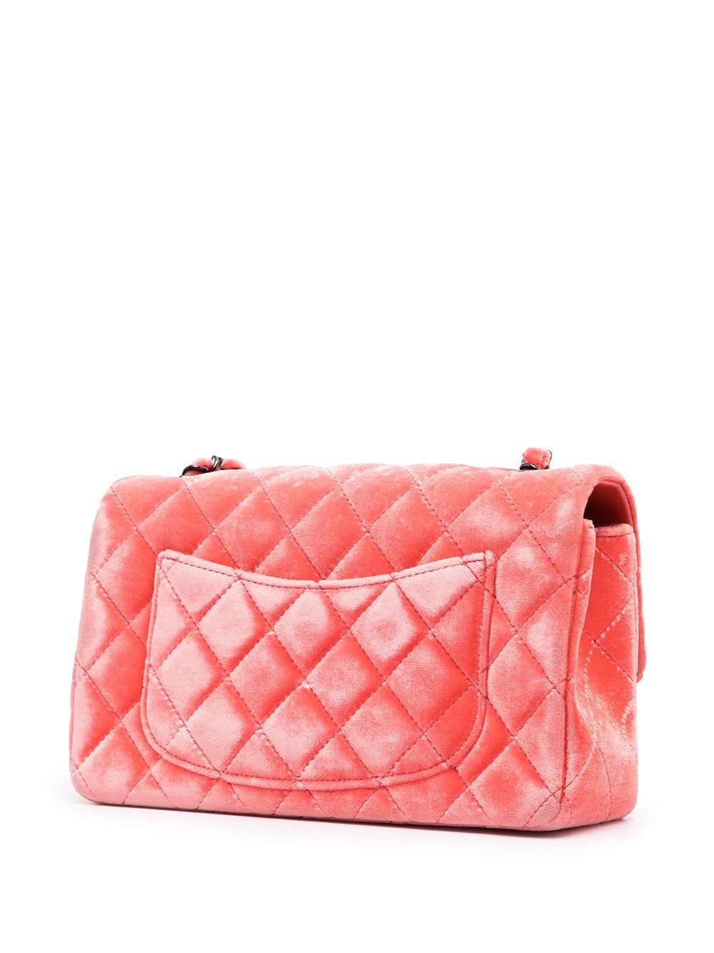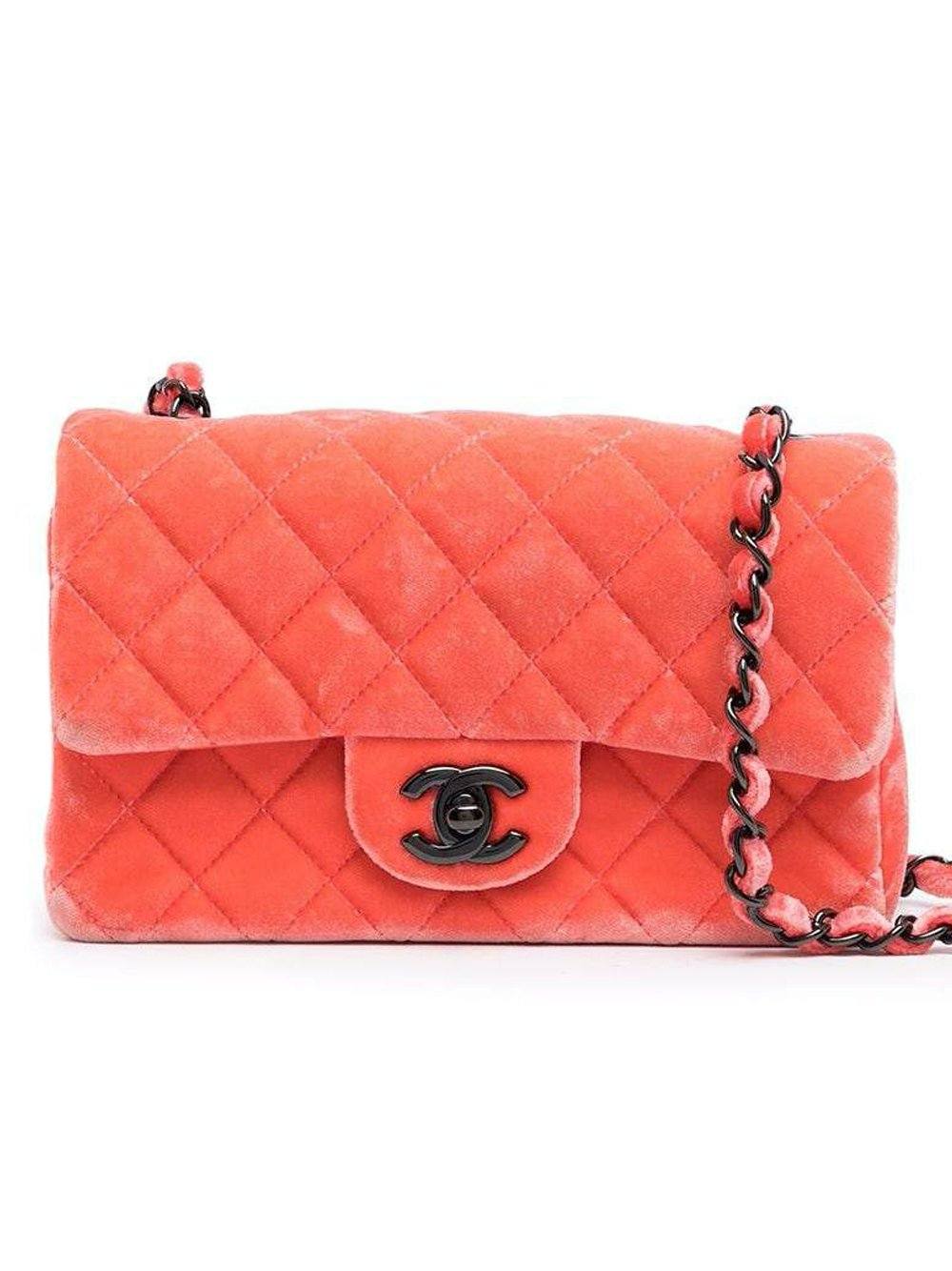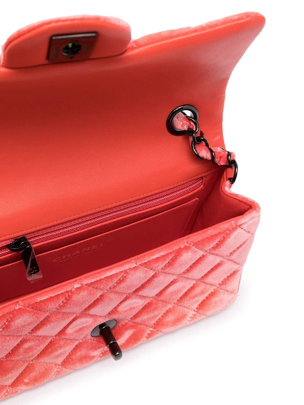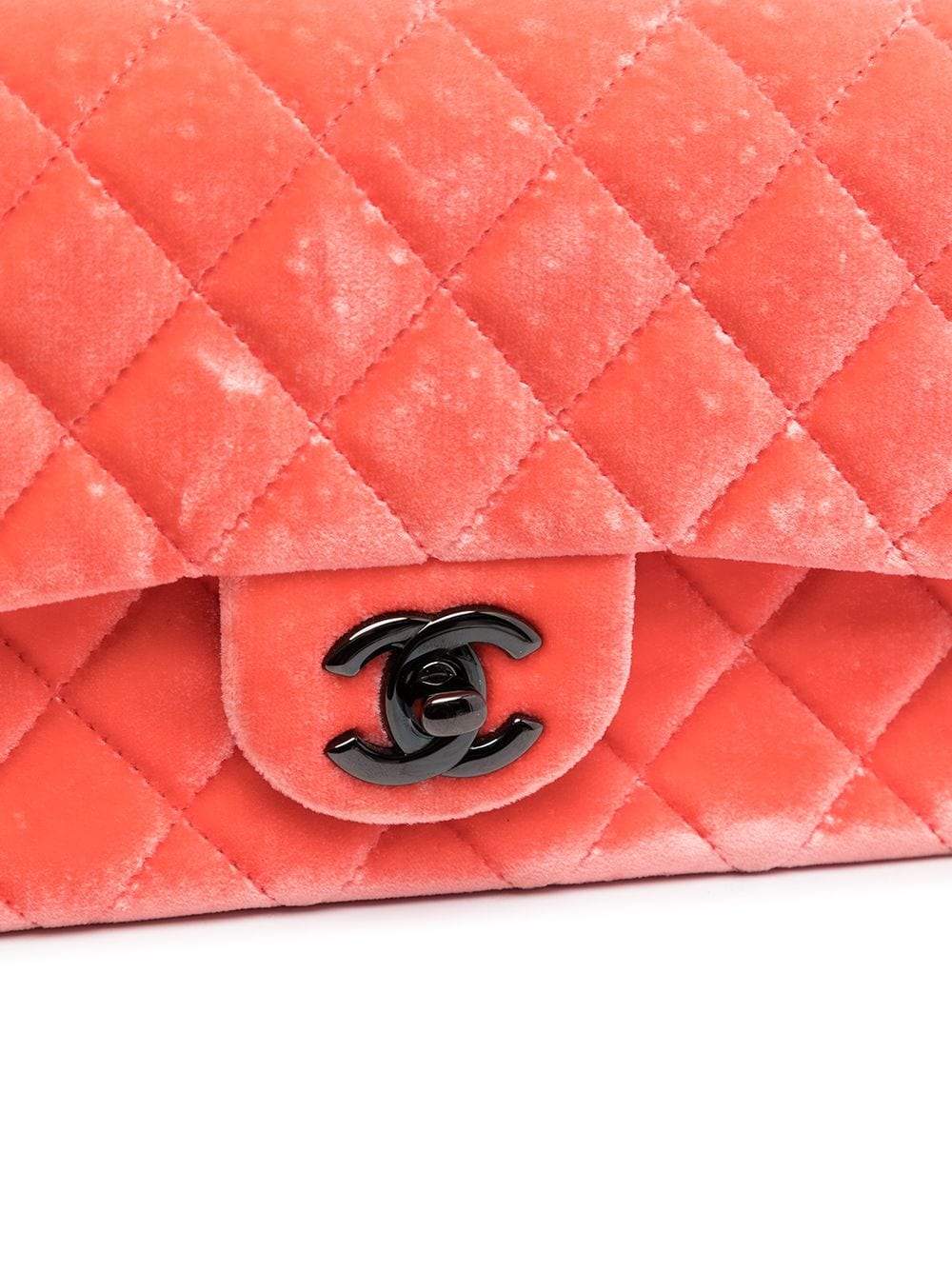 Chanel Pre-Loved 2015 Classic CC Velvet Flap Bag Orange
